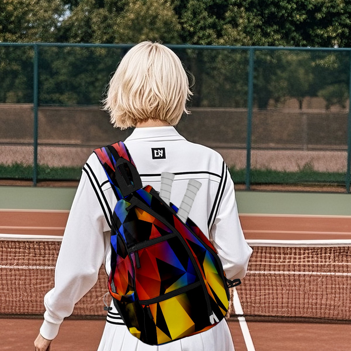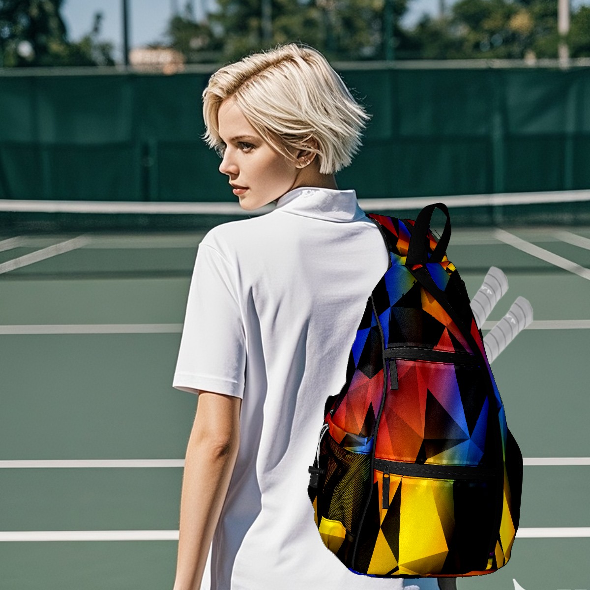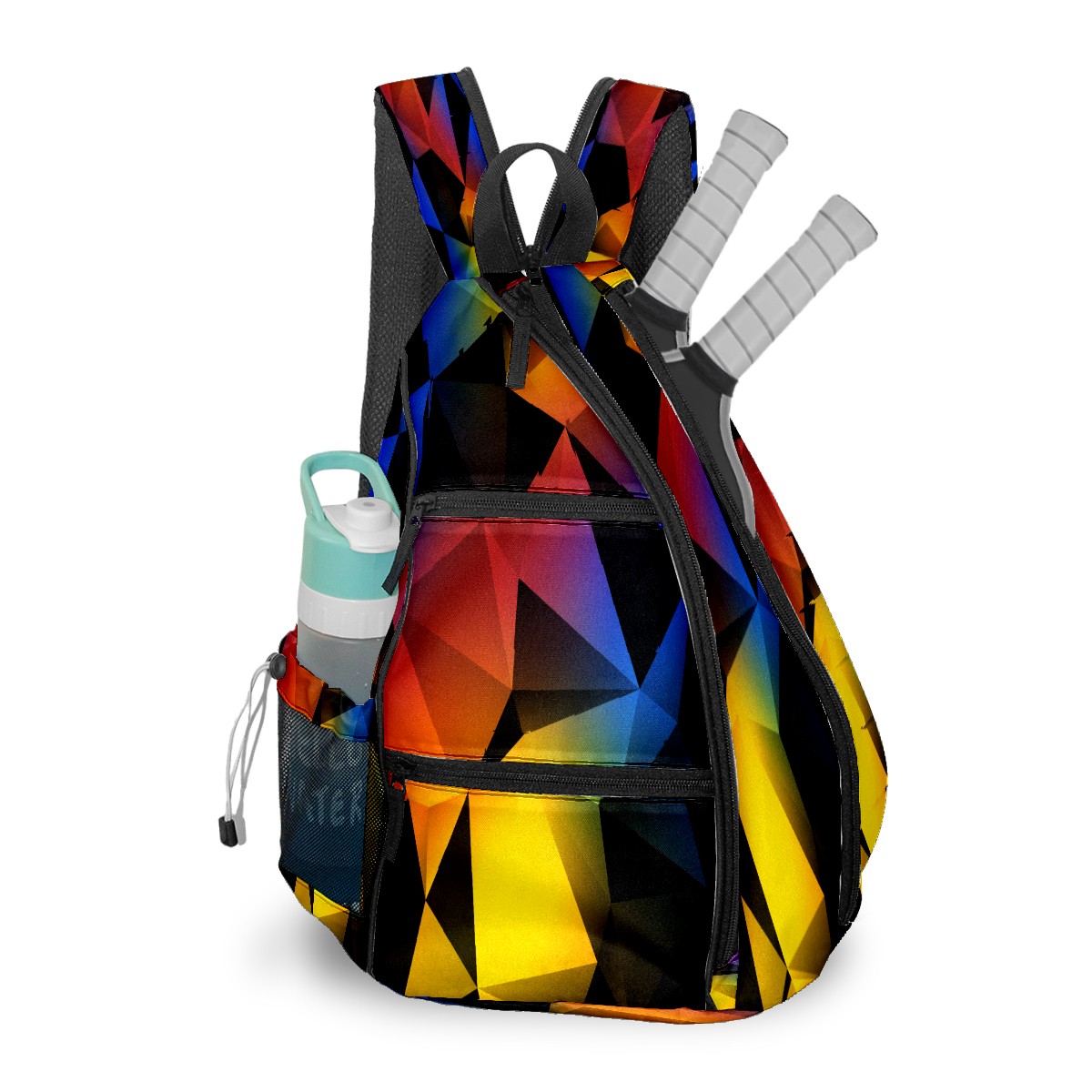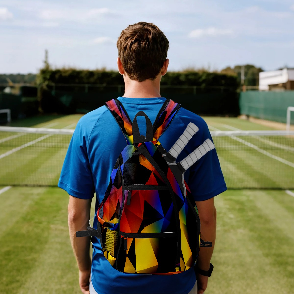 Multifunctional Pickleball Bag,Large Capacity Sports Pickleball Racket Bag, Water Bottle Holder and Fence Hook,Suitable for Both Men Women -Abstract Colorful Geometric Polygon