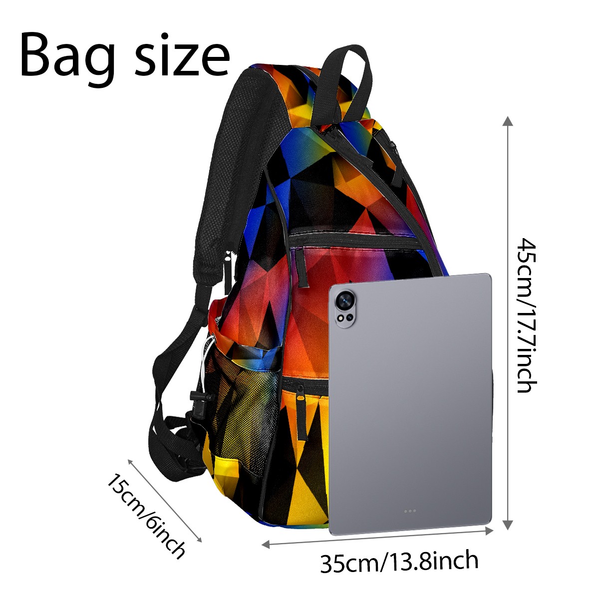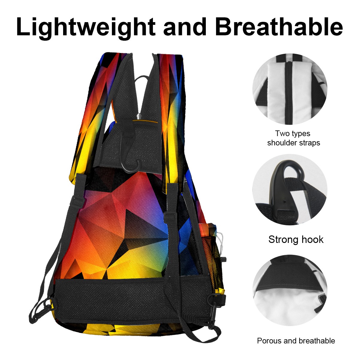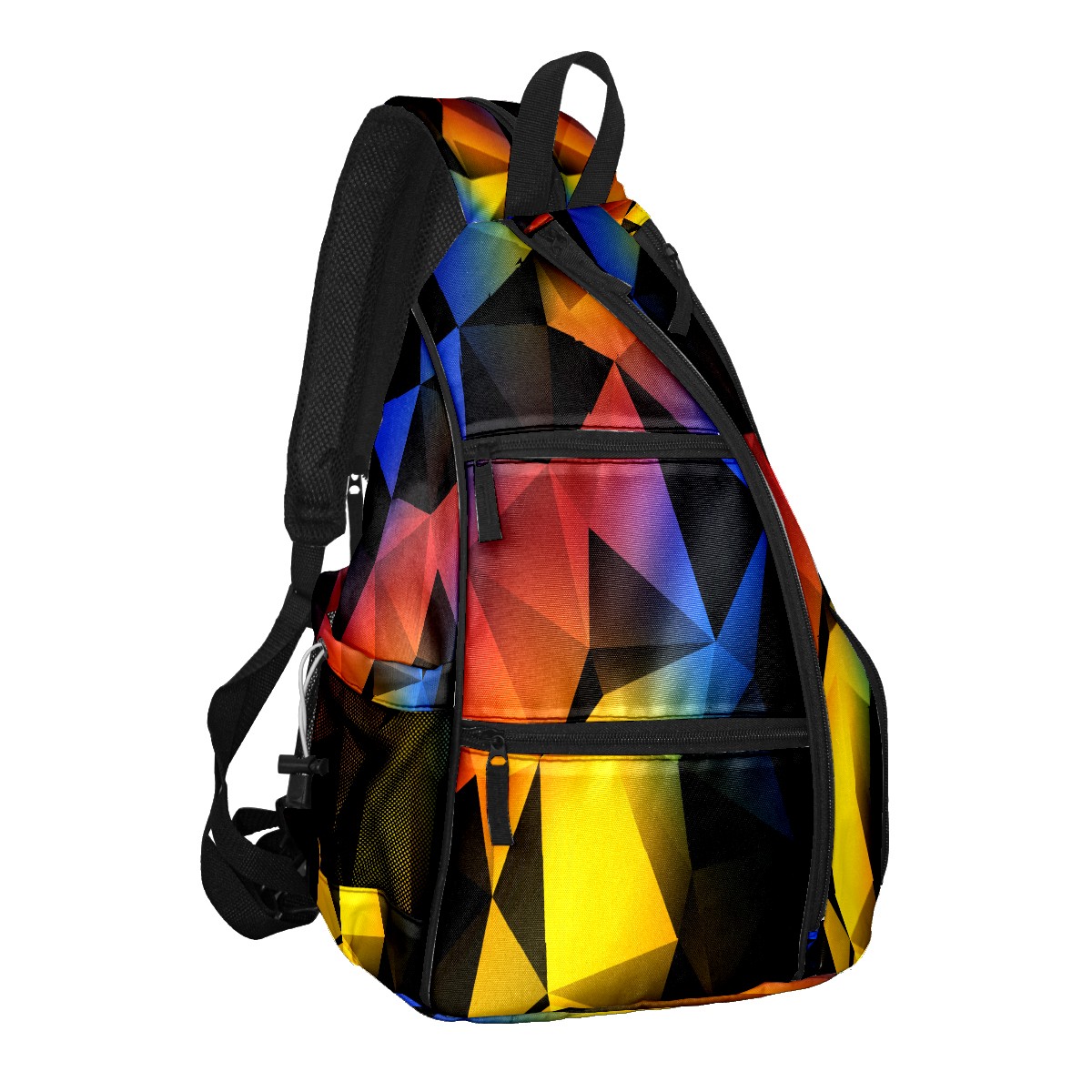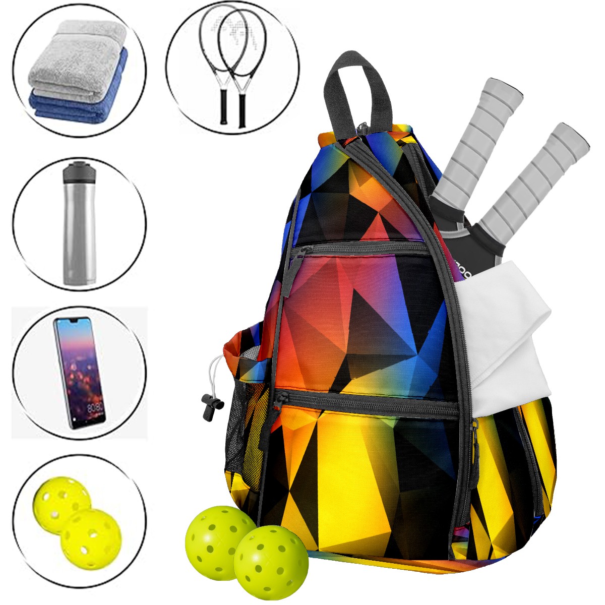 Multifunctional Pickleball Bag,Large Capacity Sports Pickleball Racket Bag, Water Bottle Holder and Fence Hook,Suitable for Both Men Women -Abstract Colorful Geometric Polygon
