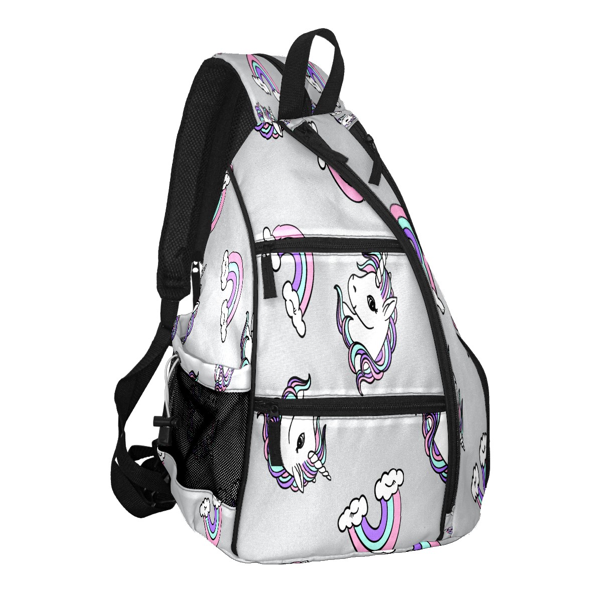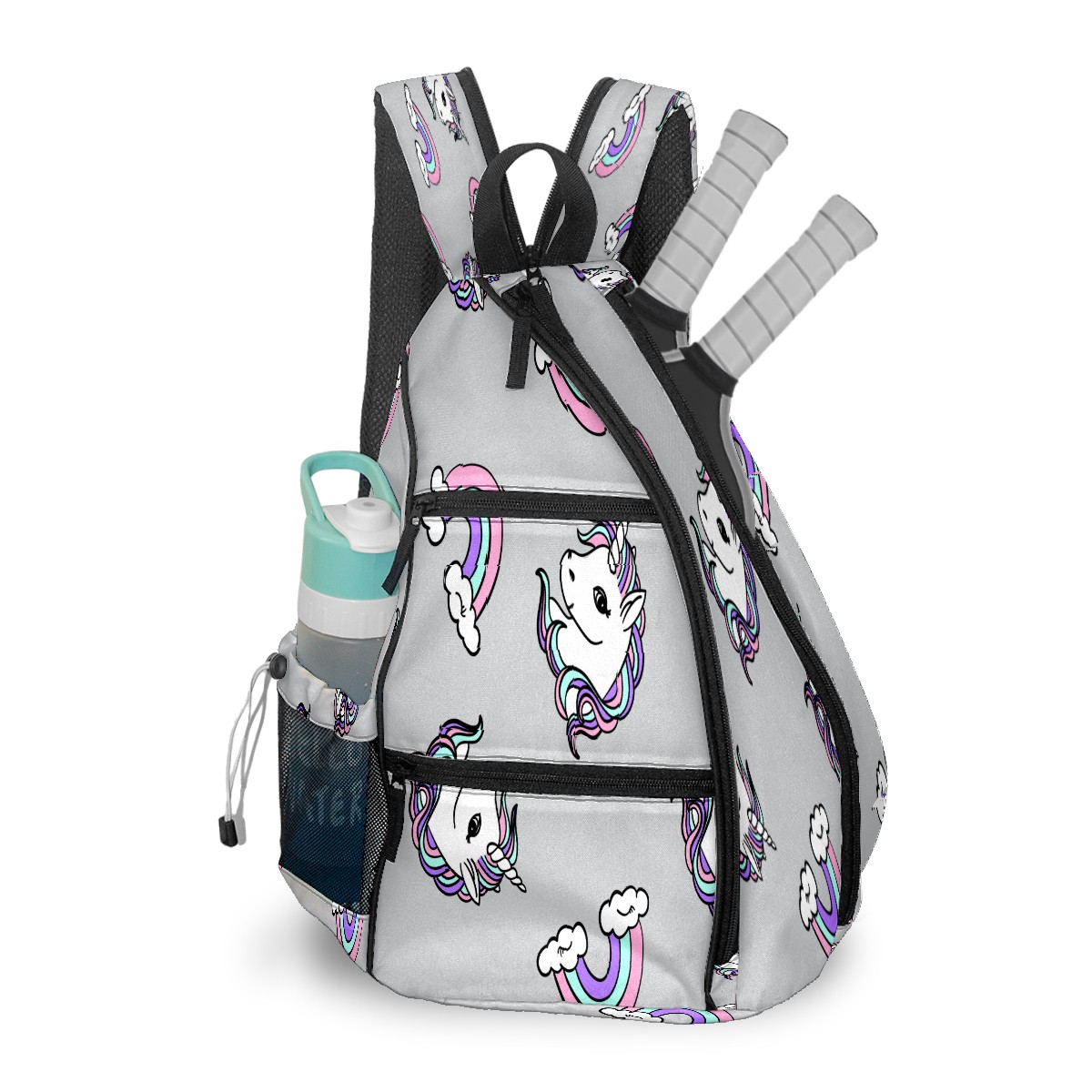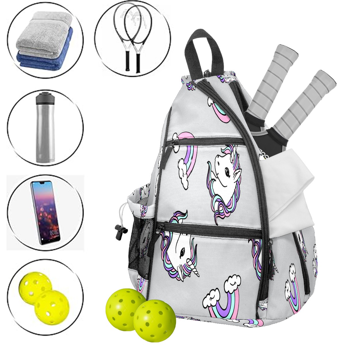 Multifunctional Pickleball Bag,Large Capacity Sports Pickleball Racket Bag, Water Bottle Holder and Fence Hook,Suitable for Both Men Women -Unicorn And Rainbow