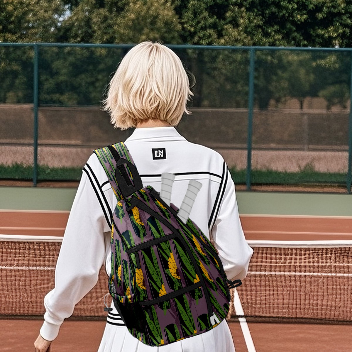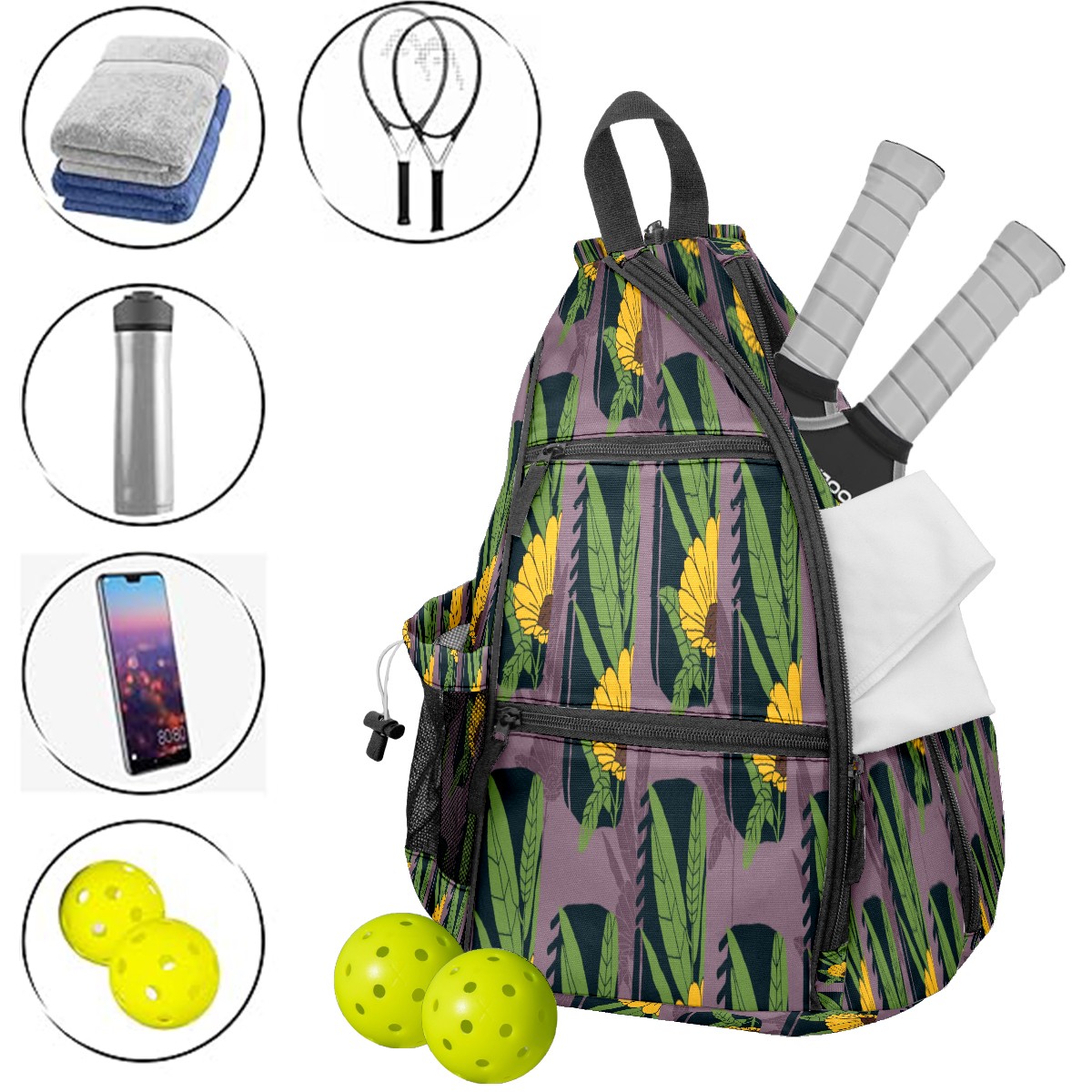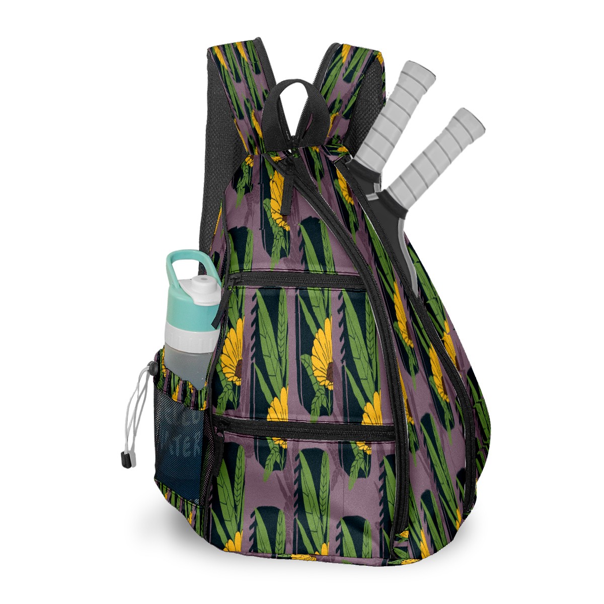 Multifunctional Pickleball Bag,Large Capacity Sports Pickleball Racket Bag, Water Bottle Holder and Fence Hook,Suitable for Both Men Women -Sunflower