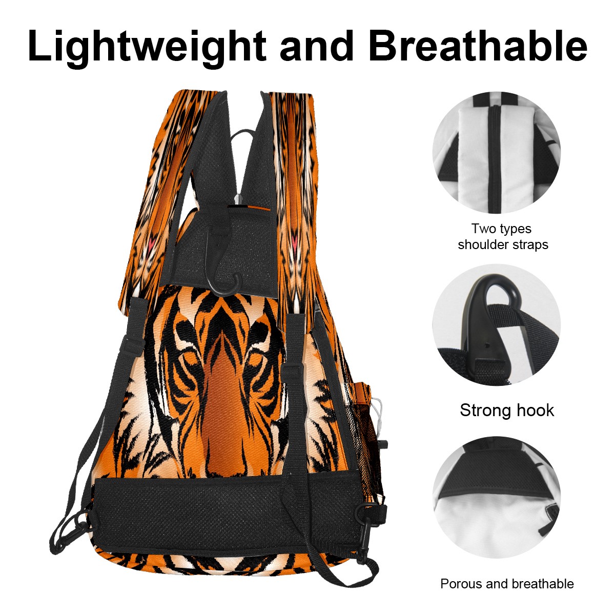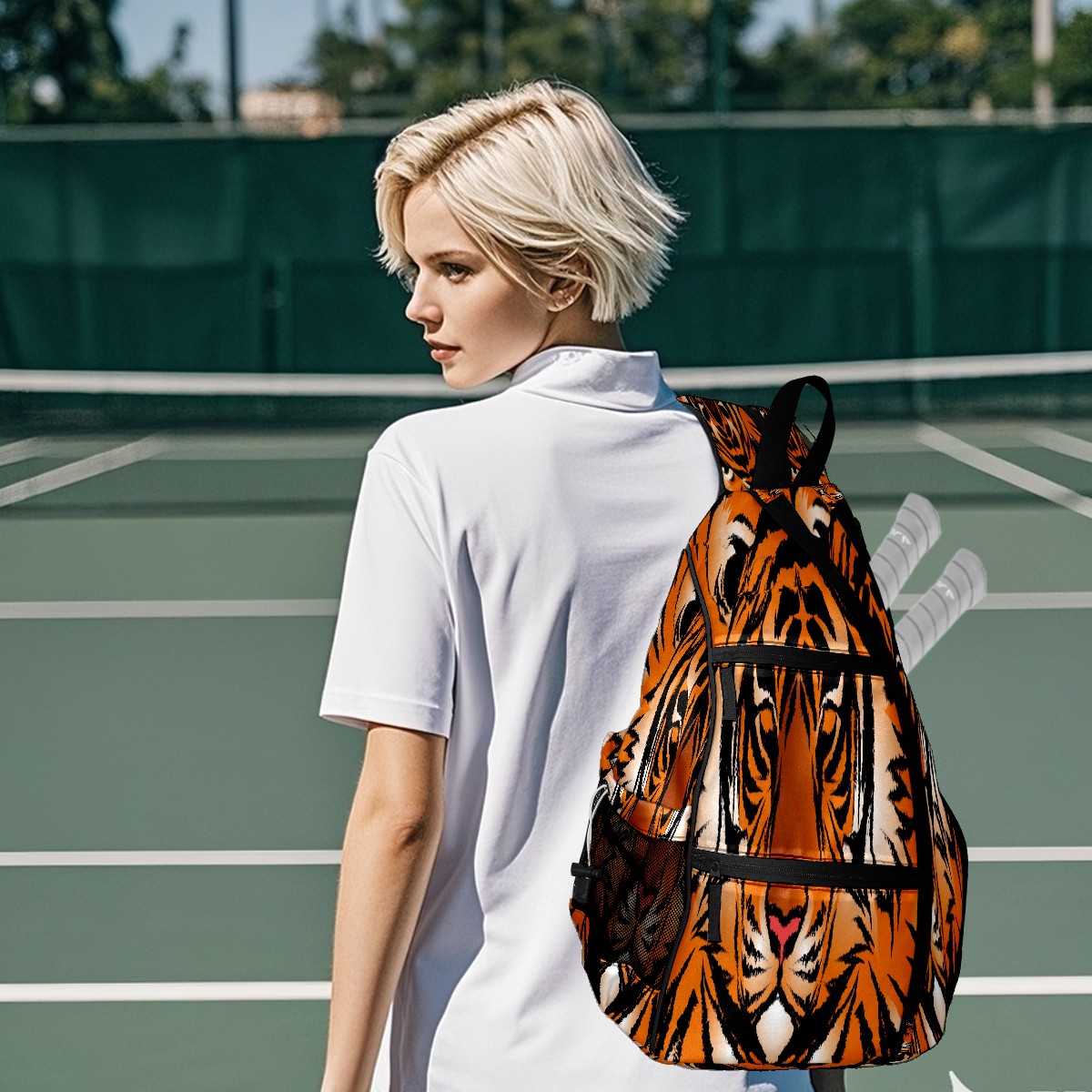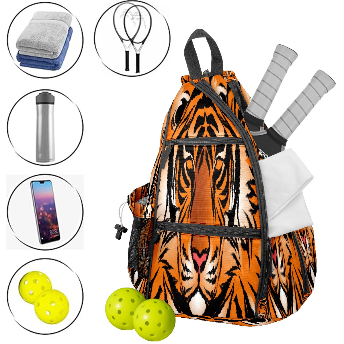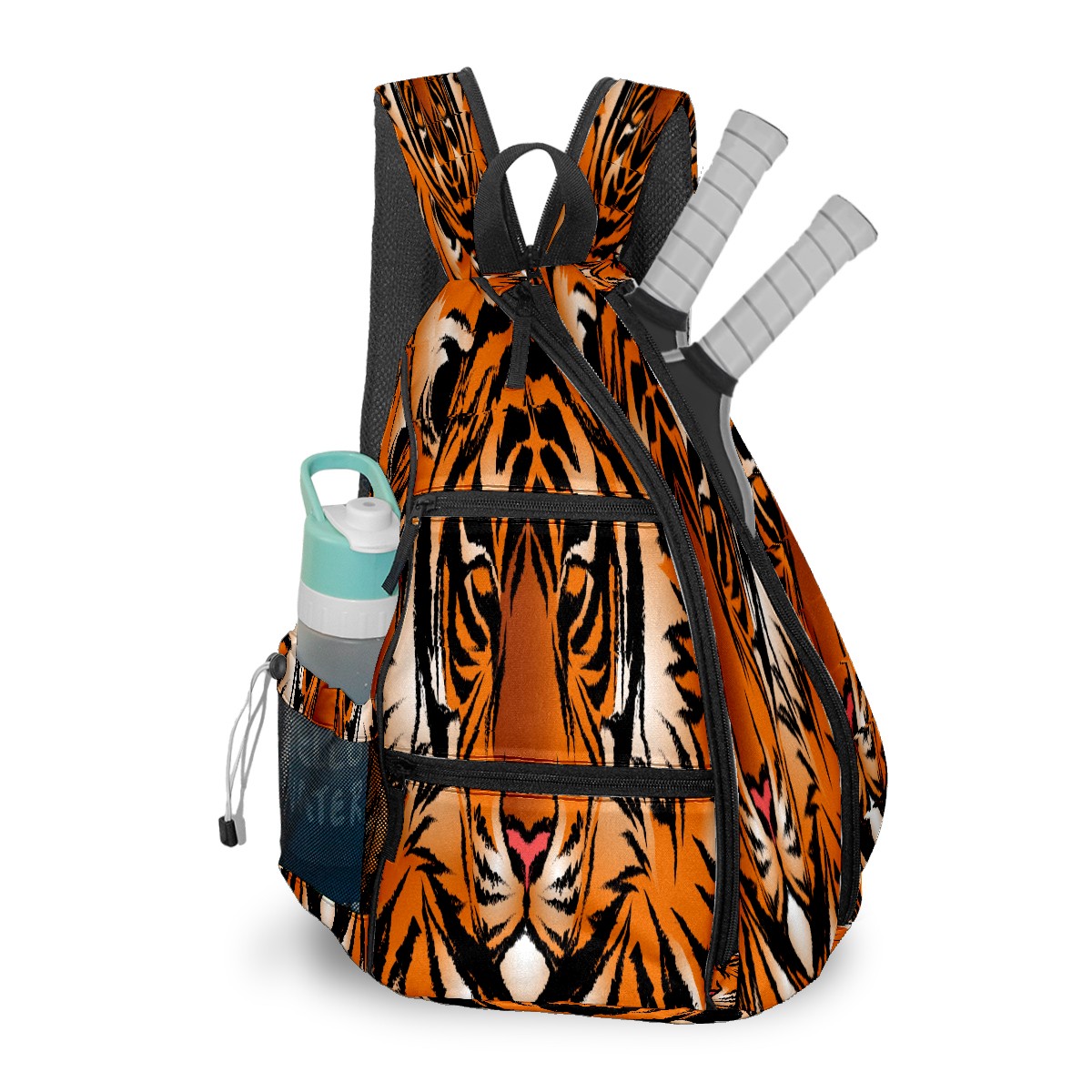 Multifunctional Pickleball Bag,Large Capacity Sports Pickleball Racket Bag, Water Bottle Holder and Fence Hook,Suitable for Both Men Women -Striped Bengal Tiger