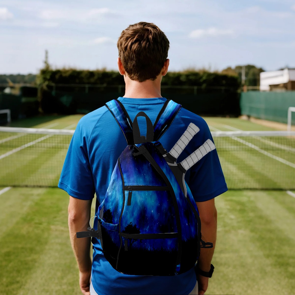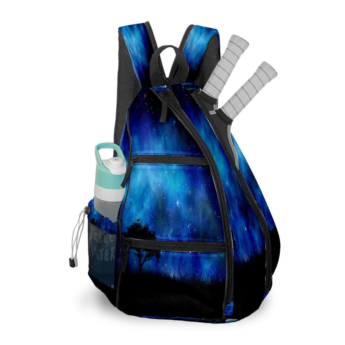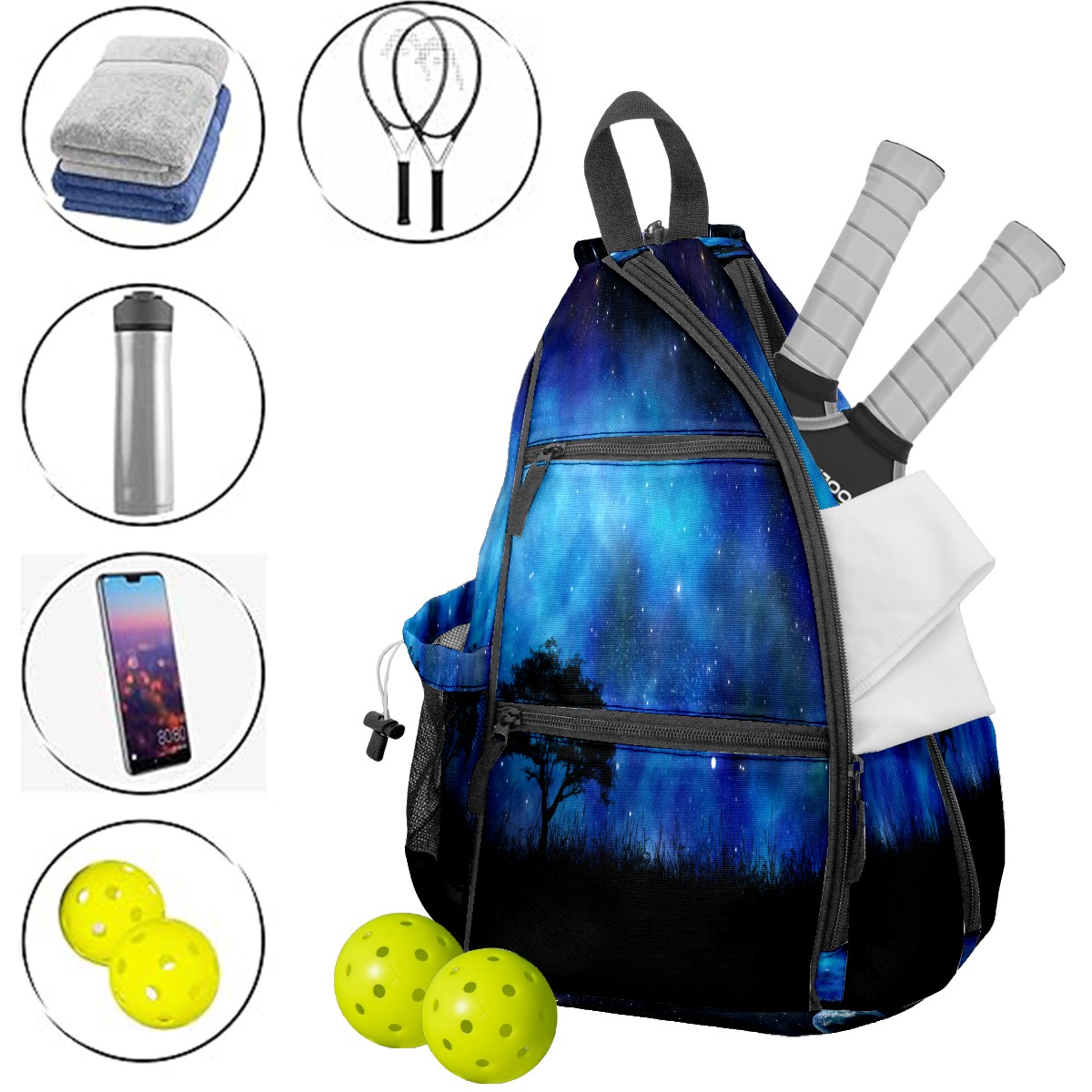 Multifunctional Pickleball Bag,Large Capacity Sports Pickleball Racket Bag, Water Bottle Holder and Fence Hook,Suitable for Both Men Women -Night Landscape Space Sky