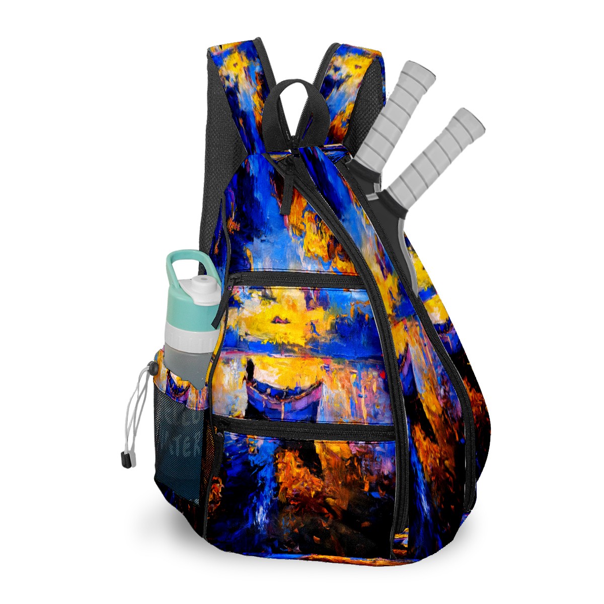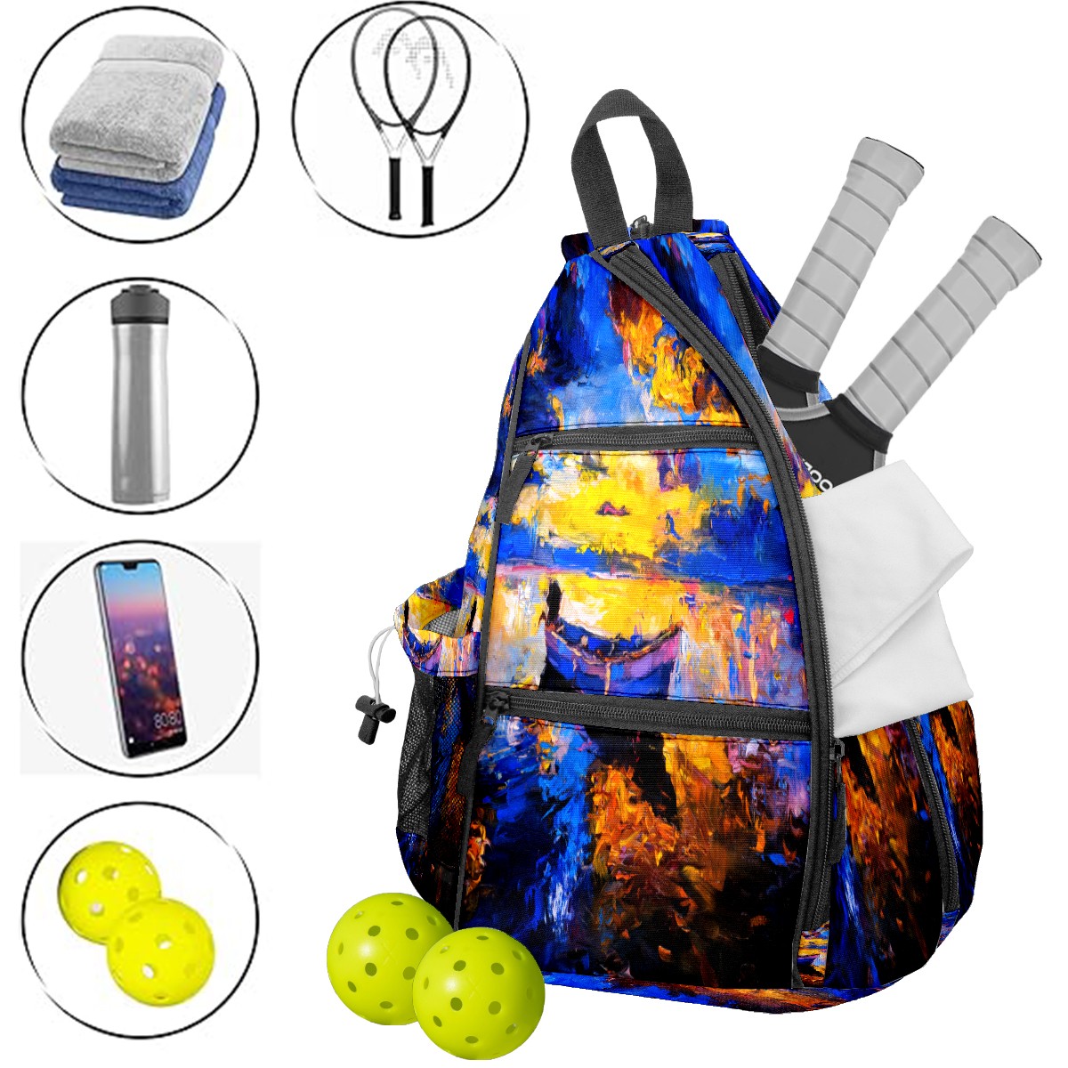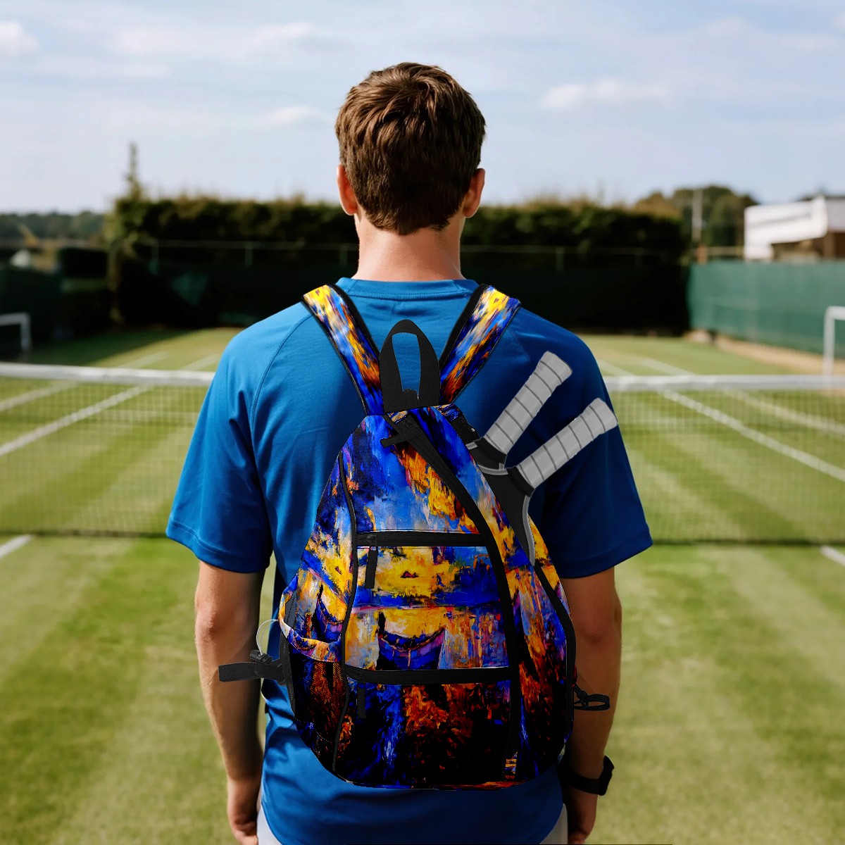 Multifunctional Pickleball Bag,Large Capacity Sports Pickleball Racket Bag, Water Bottle Holder and Fence Hook,Suitable for Both Men Women -Oil Painting Scenery
