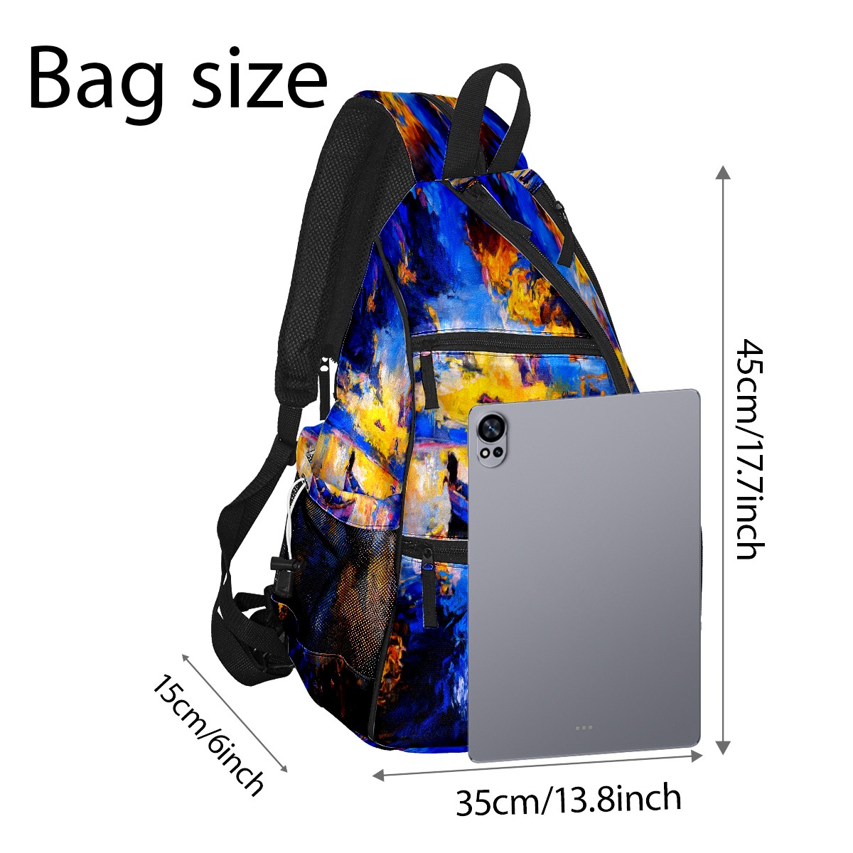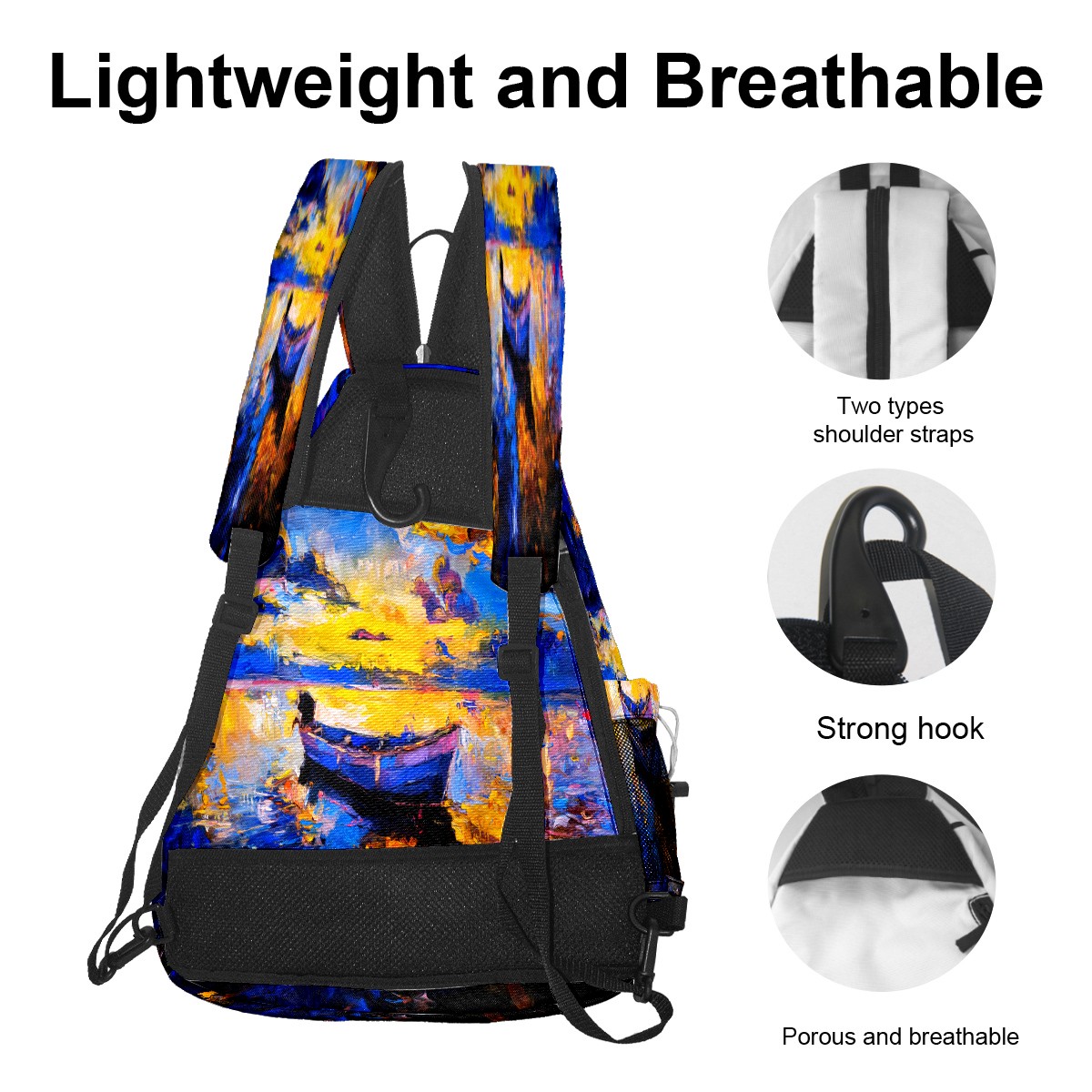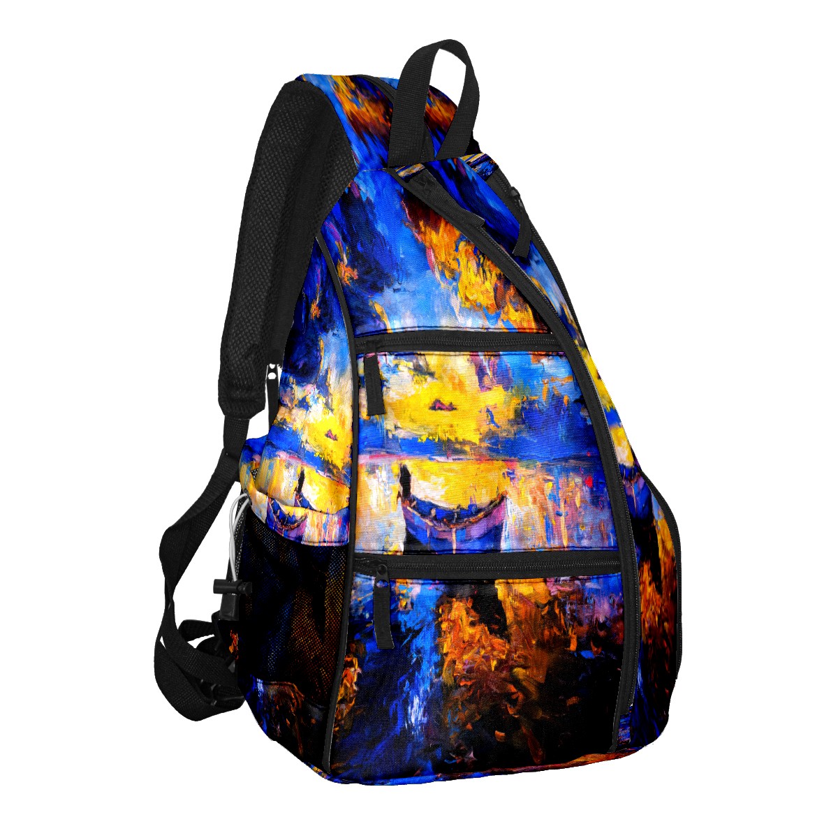 Multifunctional Pickleball Bag,Large Capacity Sports Pickleball Racket Bag, Water Bottle Holder and Fence Hook,Suitable for Both Men Women -Oil Painting Scenery
