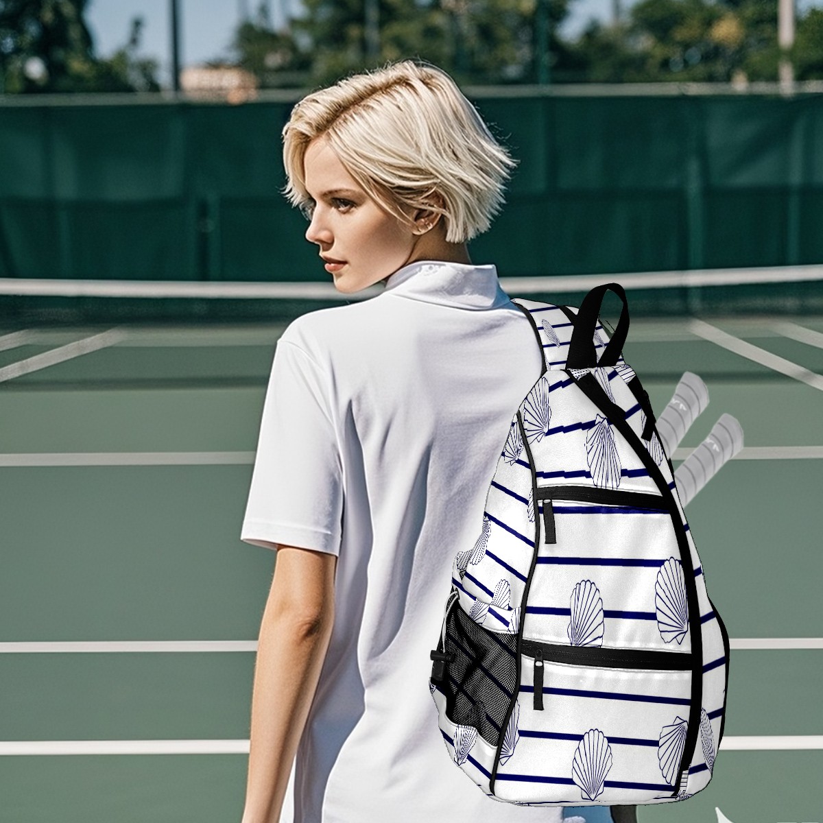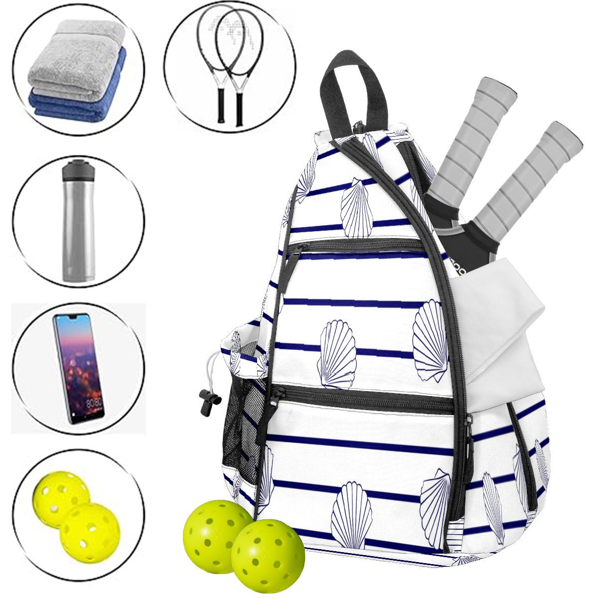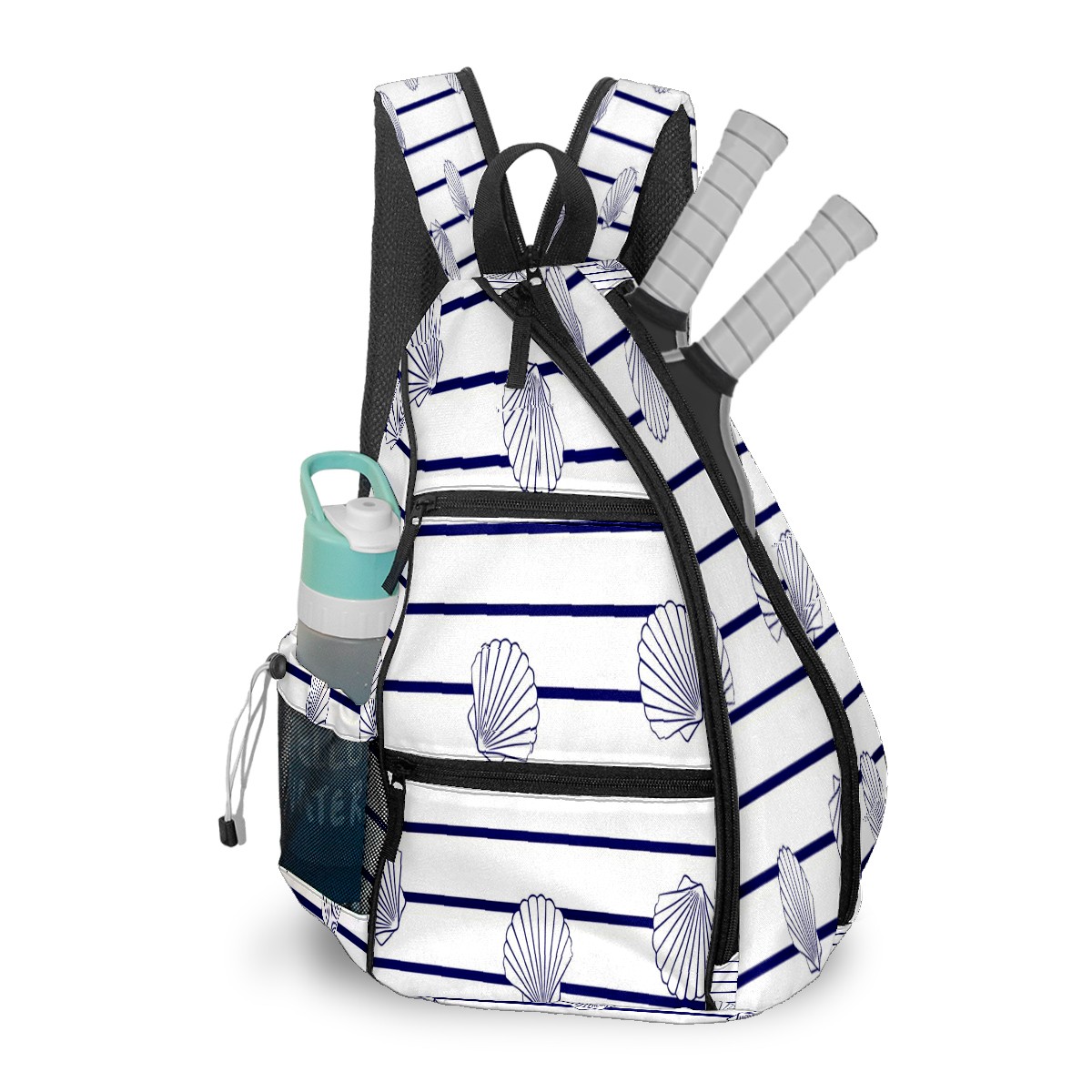 Multifunctional Pickleball Bag,Large Capacity Sports Pickleball Racket Bag, Water Bottle Holder and Fence Hook,Suitable for Both Men Women -Marine Stripes