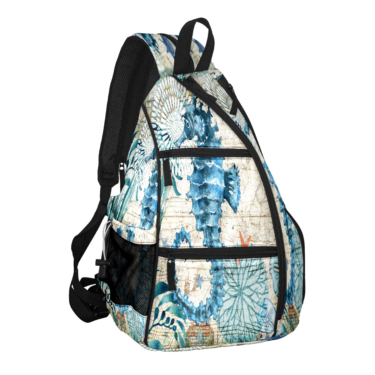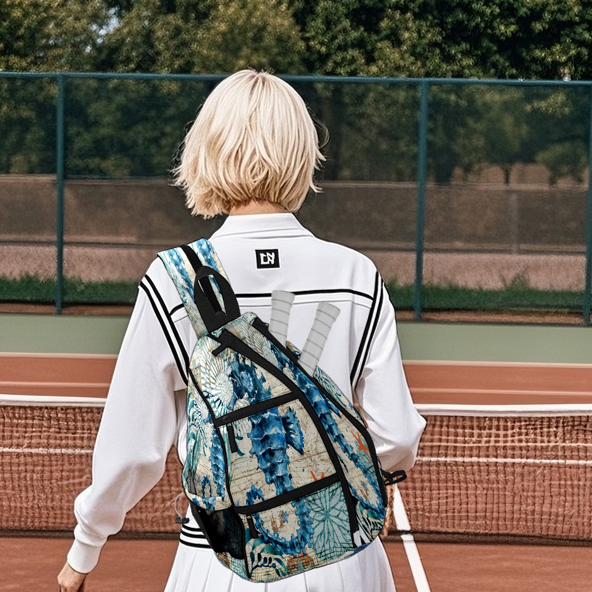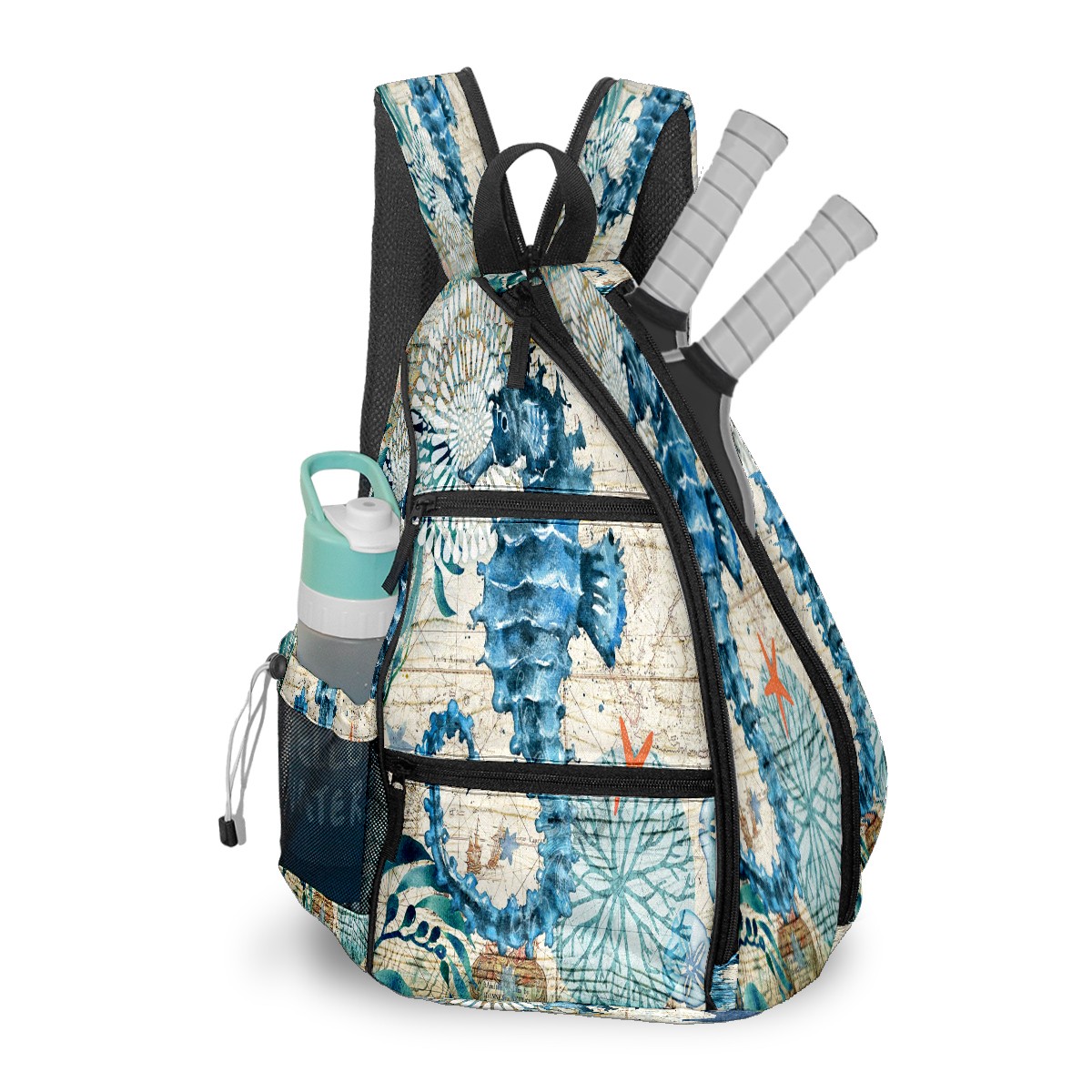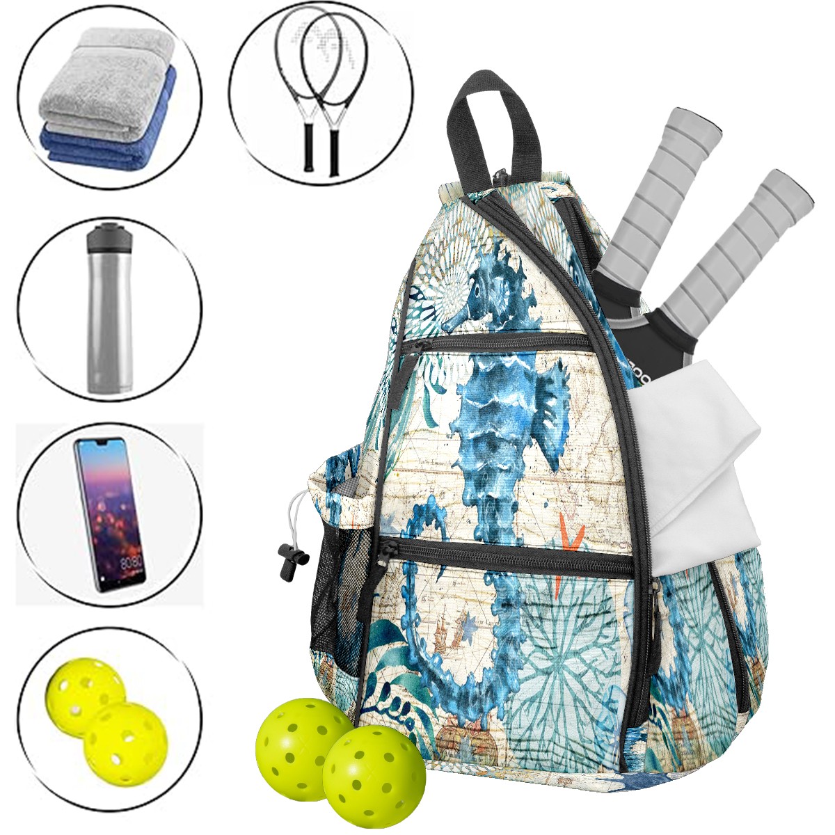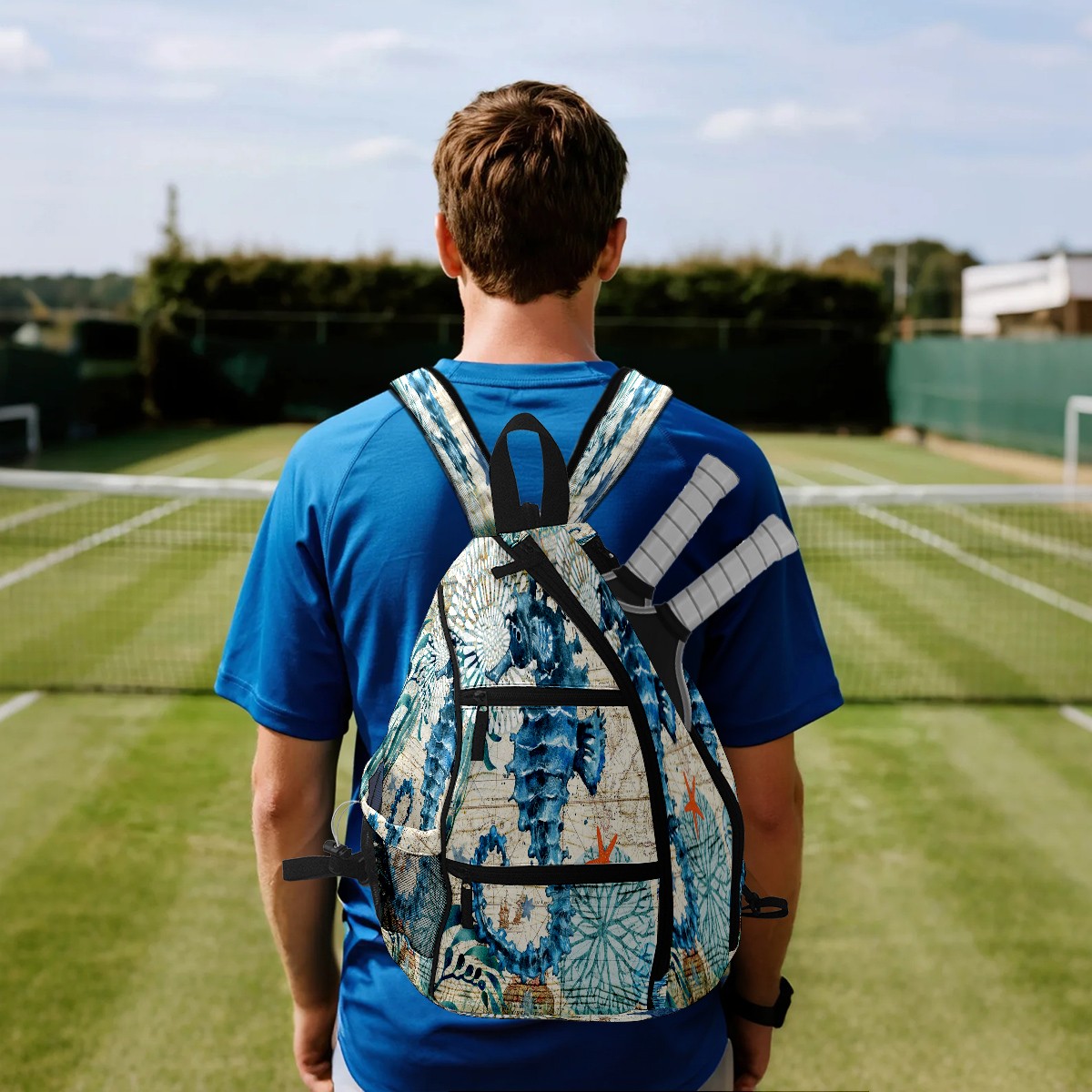 Multifunctional Pickleball Bag,Large Capacity Sports Pickleball Racket Bag, Water Bottle Holder and Fence Hook,Suitable for Both Men Women -Marine
