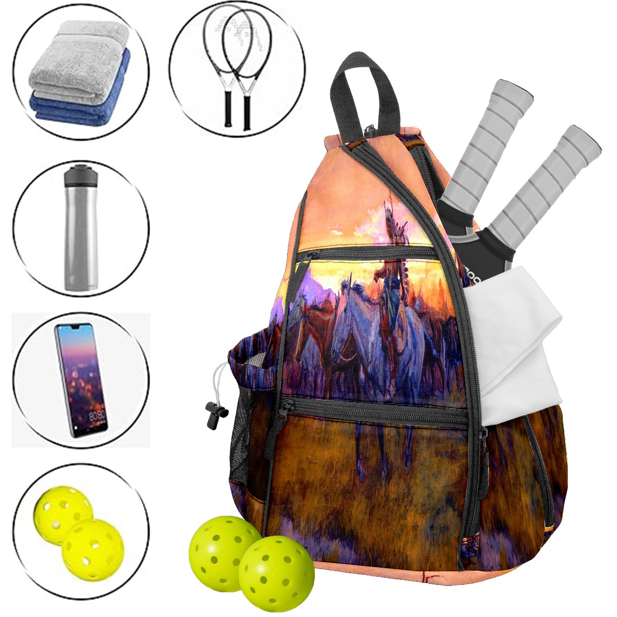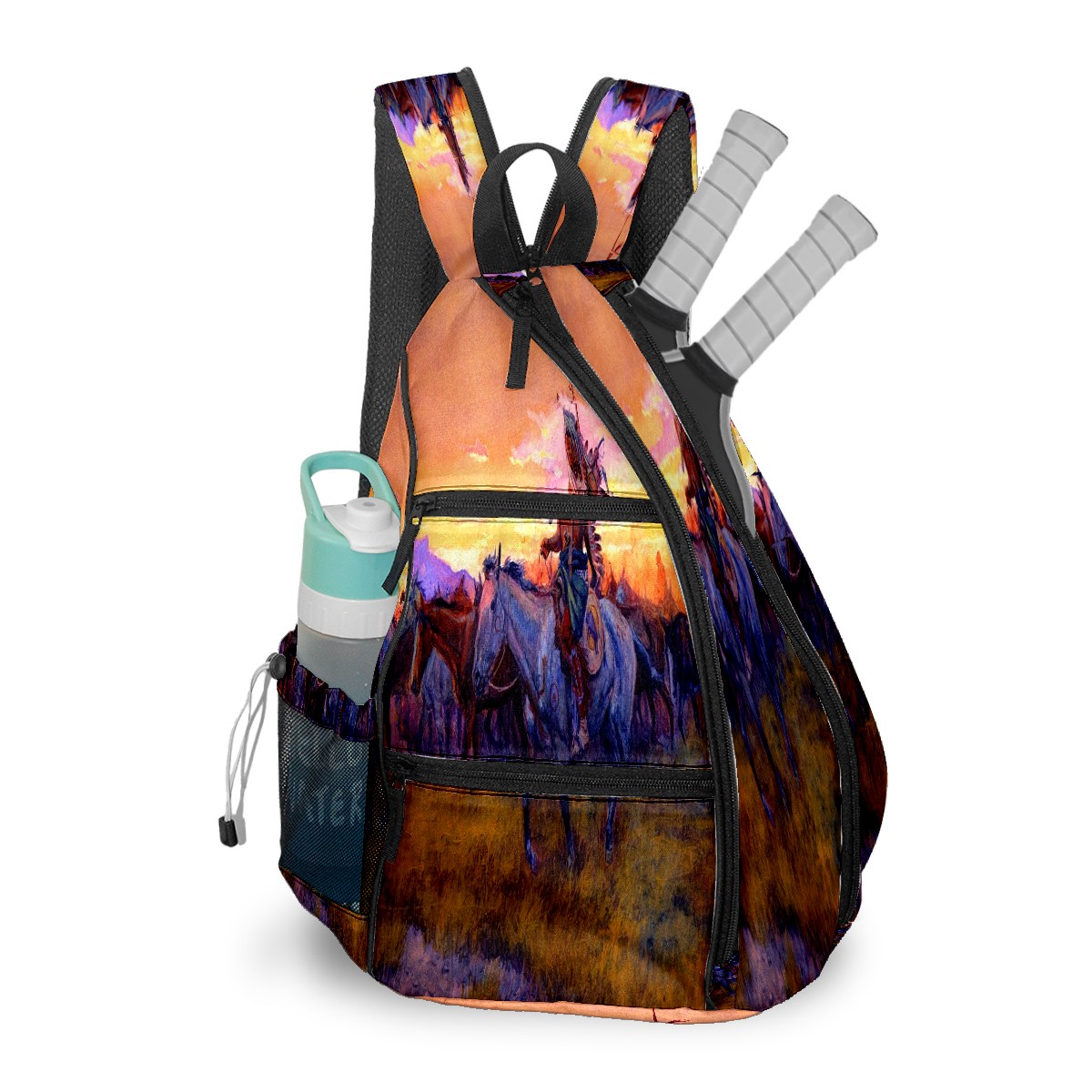 Multifunctional Pickleball Bag,Large Capacity Sports Pickleball Racket Bag, Water Bottle Holder and Fence Hook,Suitable for Both Men Women -Native American Indian Man