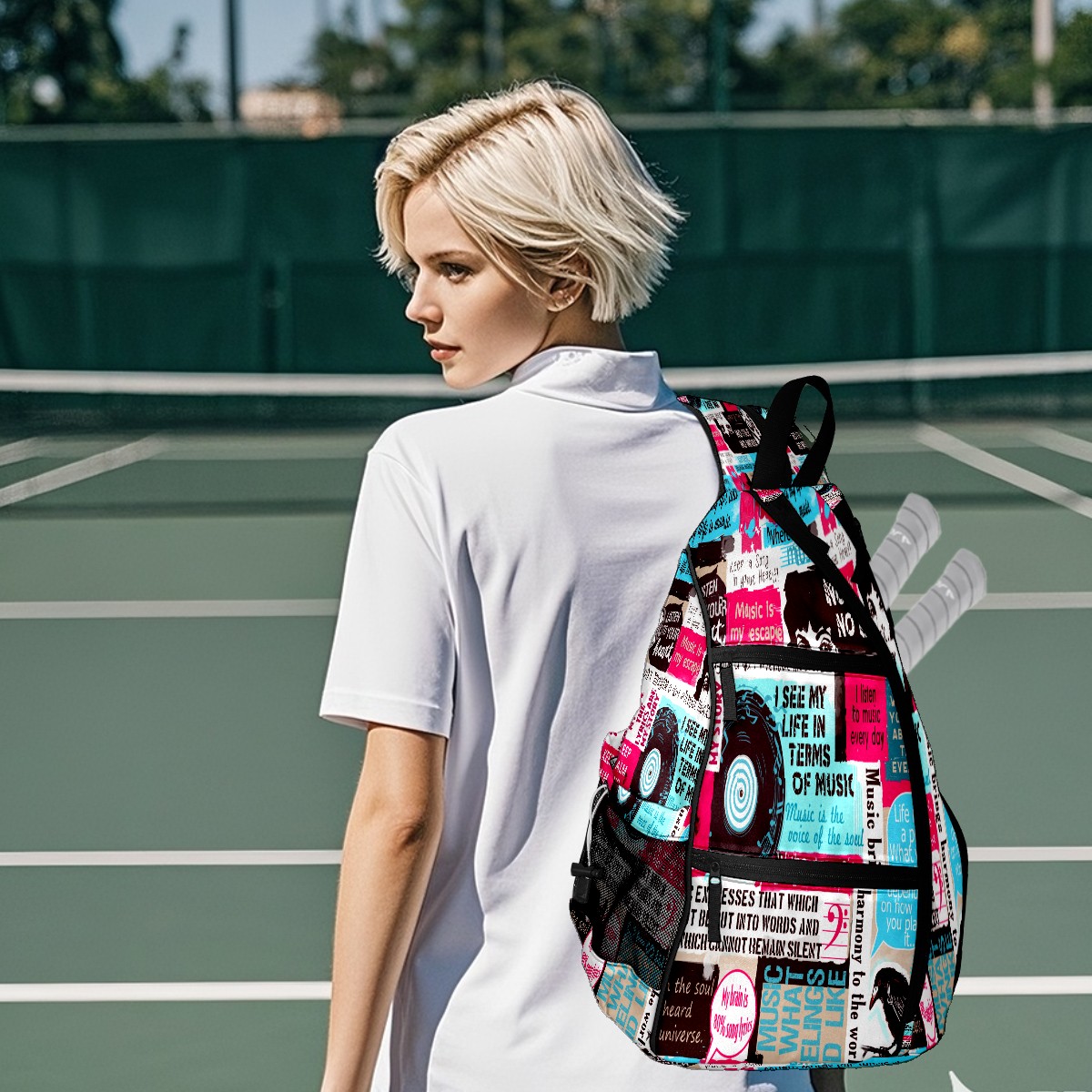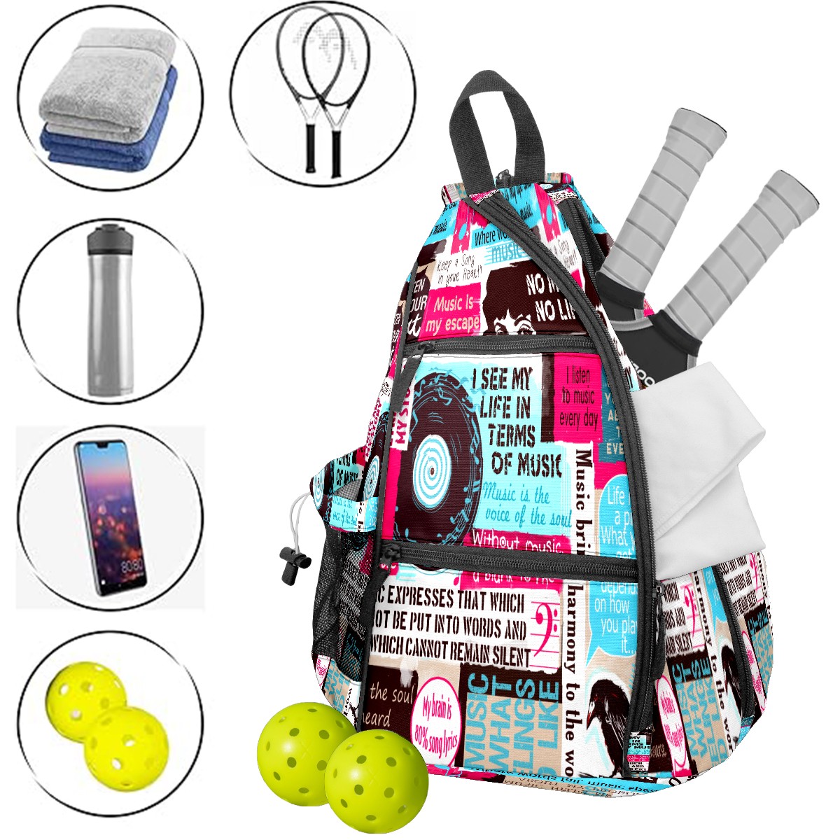 Multifunctional Pickleball Bag,Large Capacity Sports Pickleball Racket Bag, Water Bottle Holder and Fence Hook,Suitable for Both Men Women -Letter