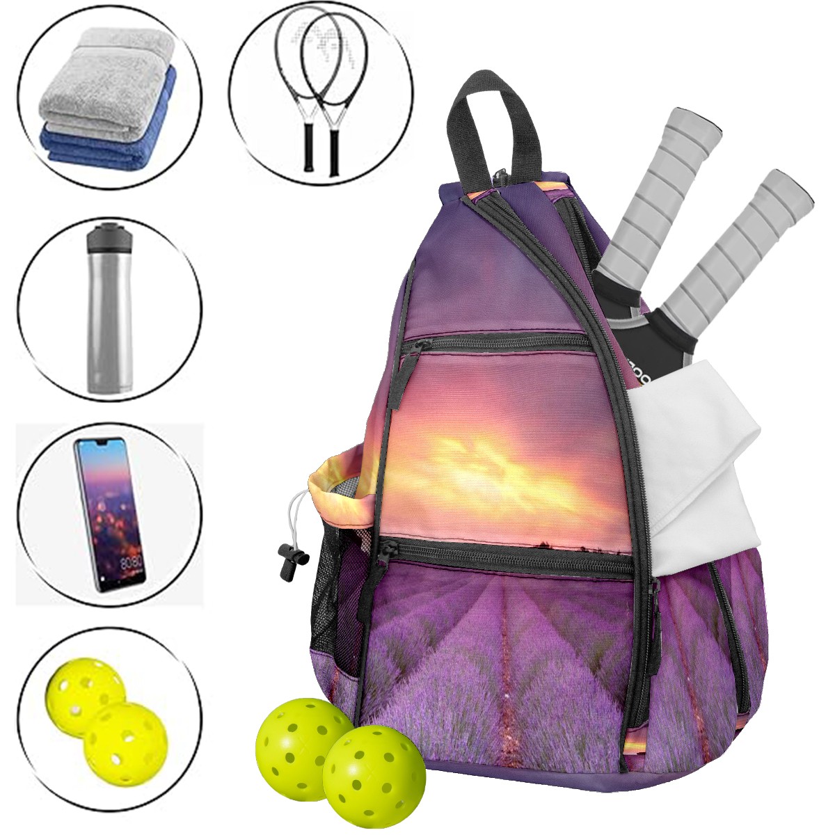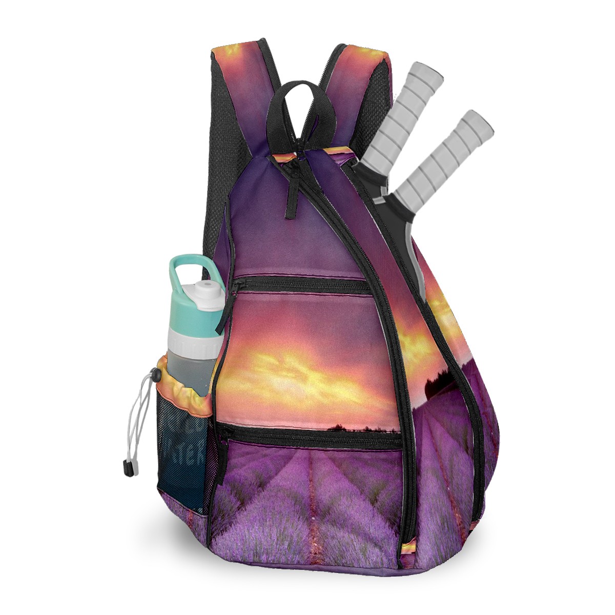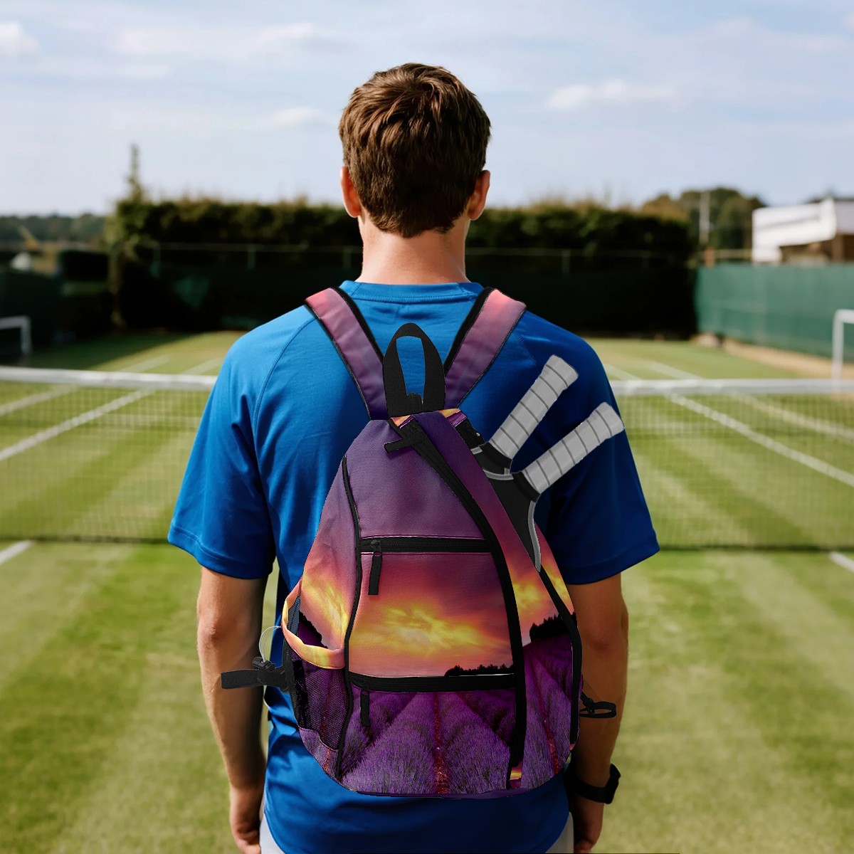 Multifunctional Pickleball Bag,Large Capacity Sports Pickleball Racket Bag, Water Bottle Holder and Fence Hook,Suitable for Both Men Women -Lavender Flowers