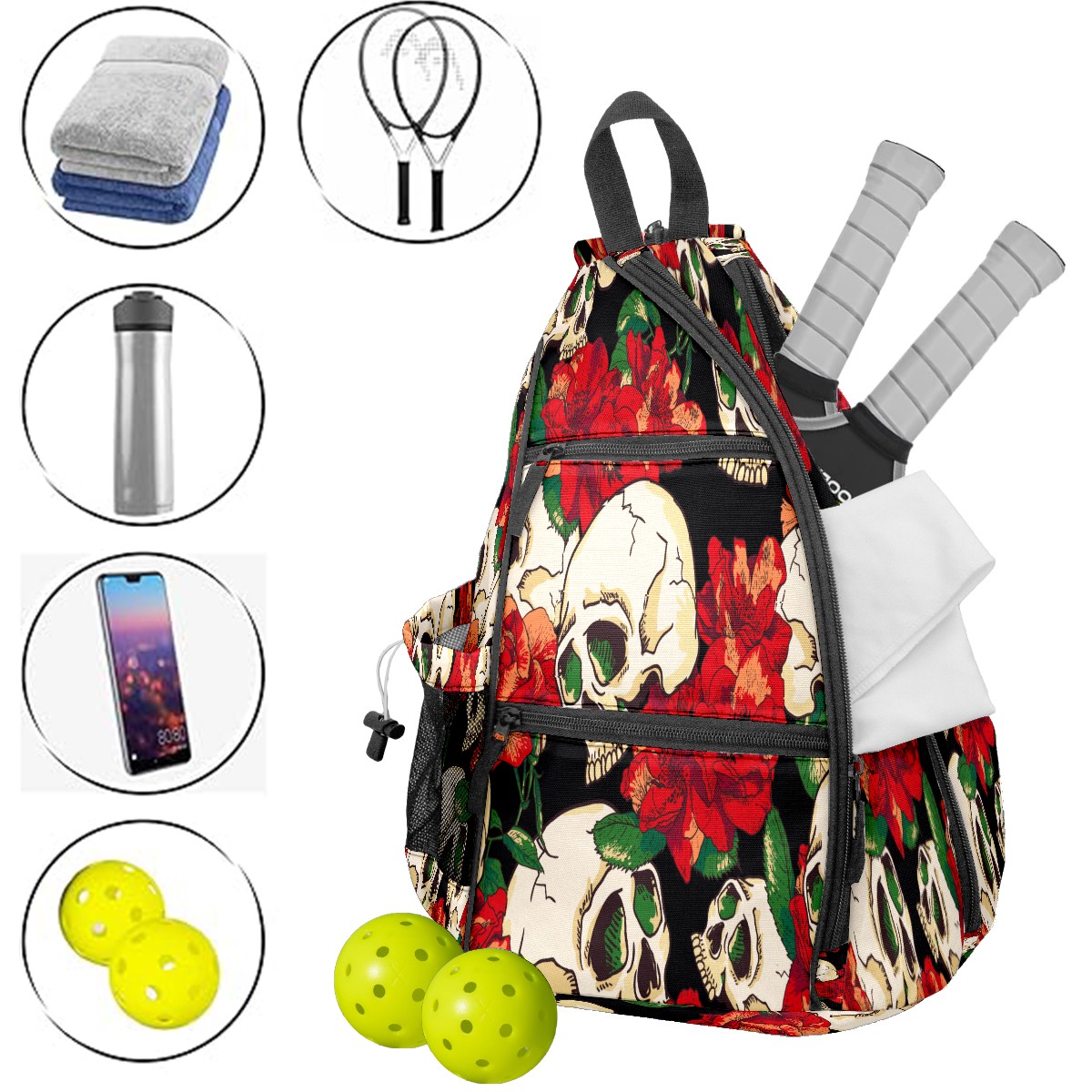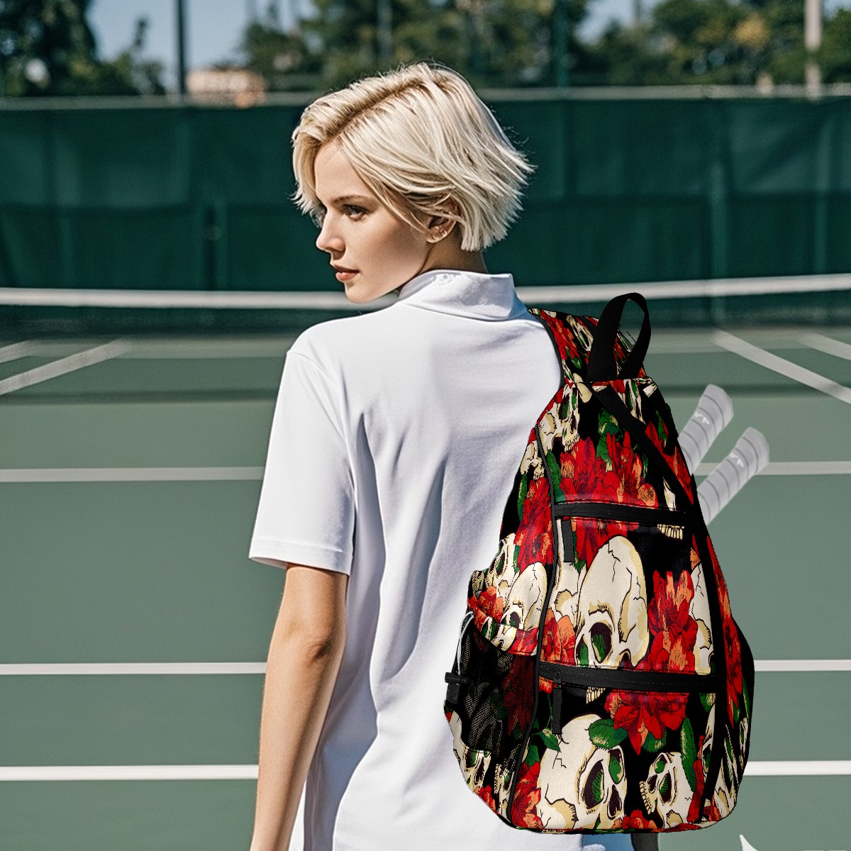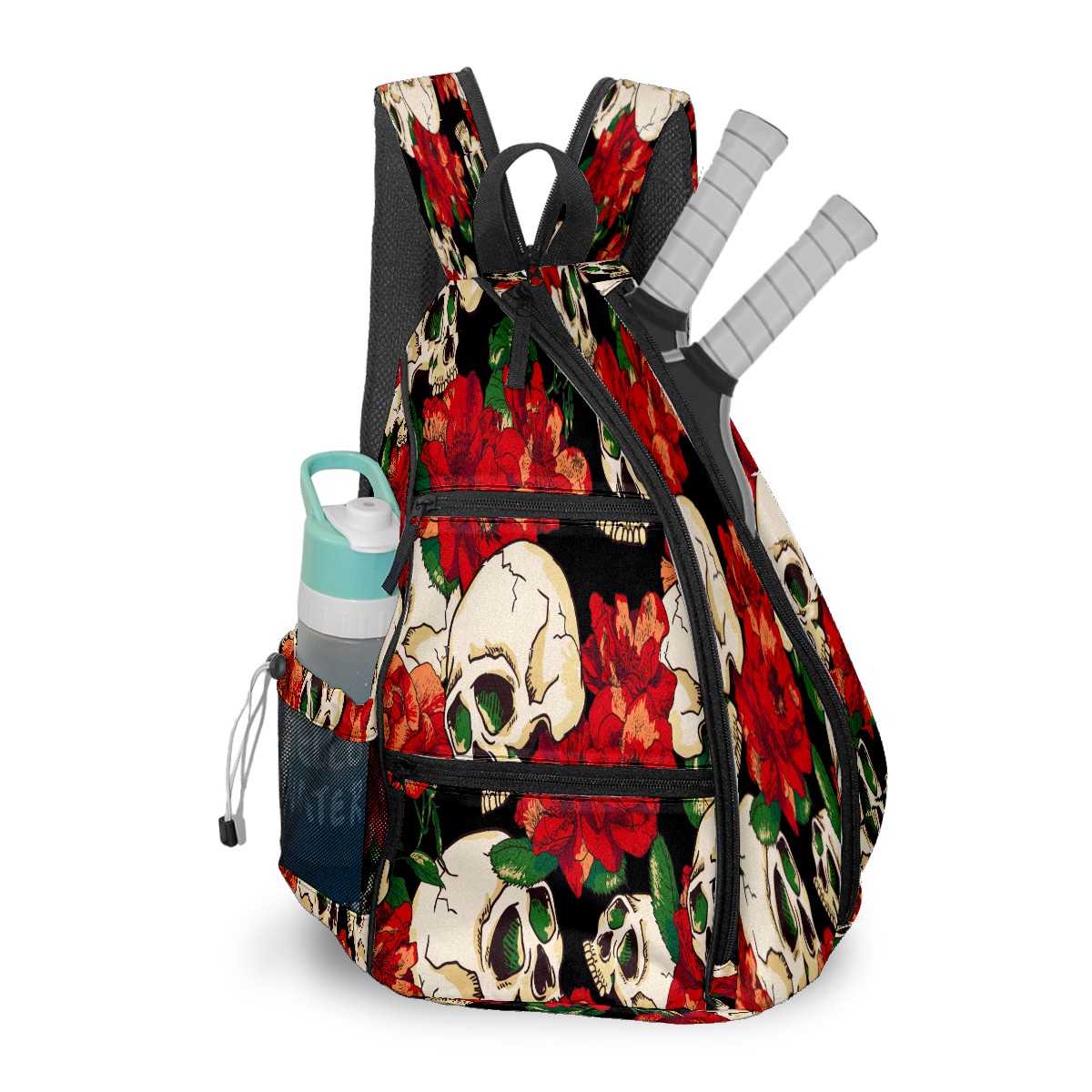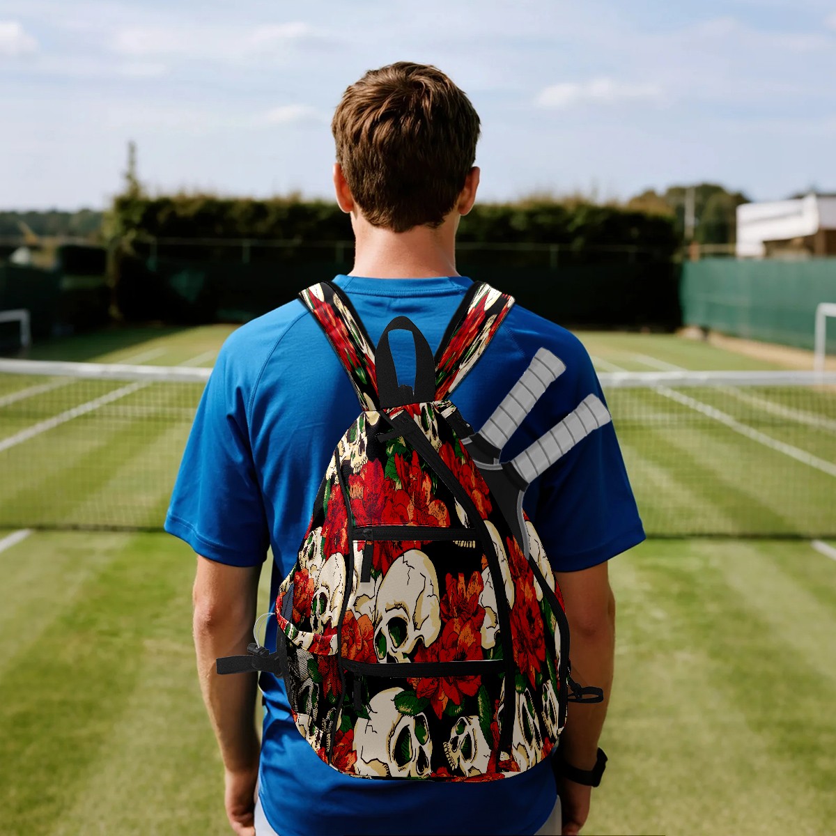 Multifunctional Pickleball Bag,Large Capacity Sports Pickleball Racket Bag, Water Bottle Holder and Fence Hook,Suitable for Both Men Women -Human Skull Pattern