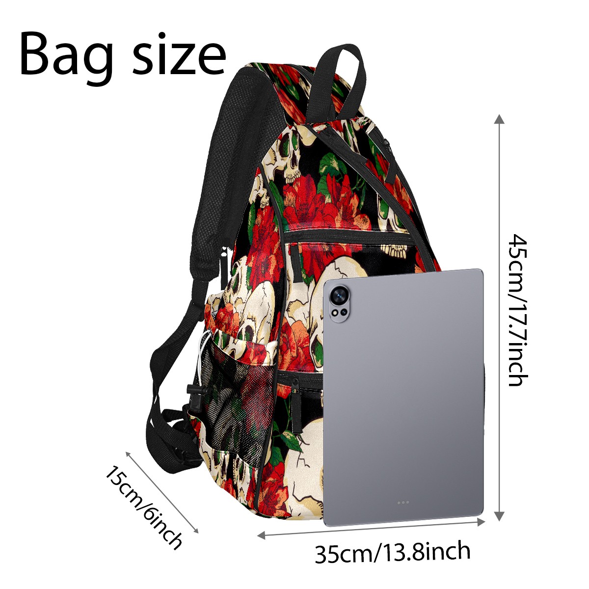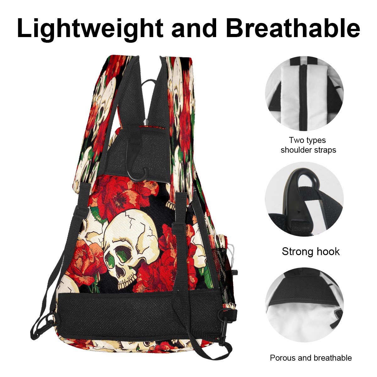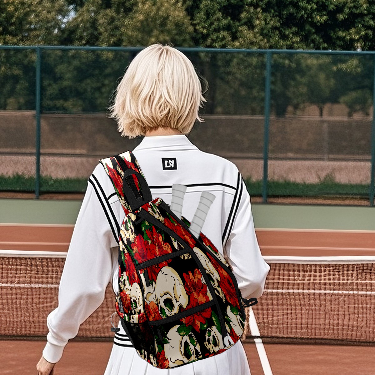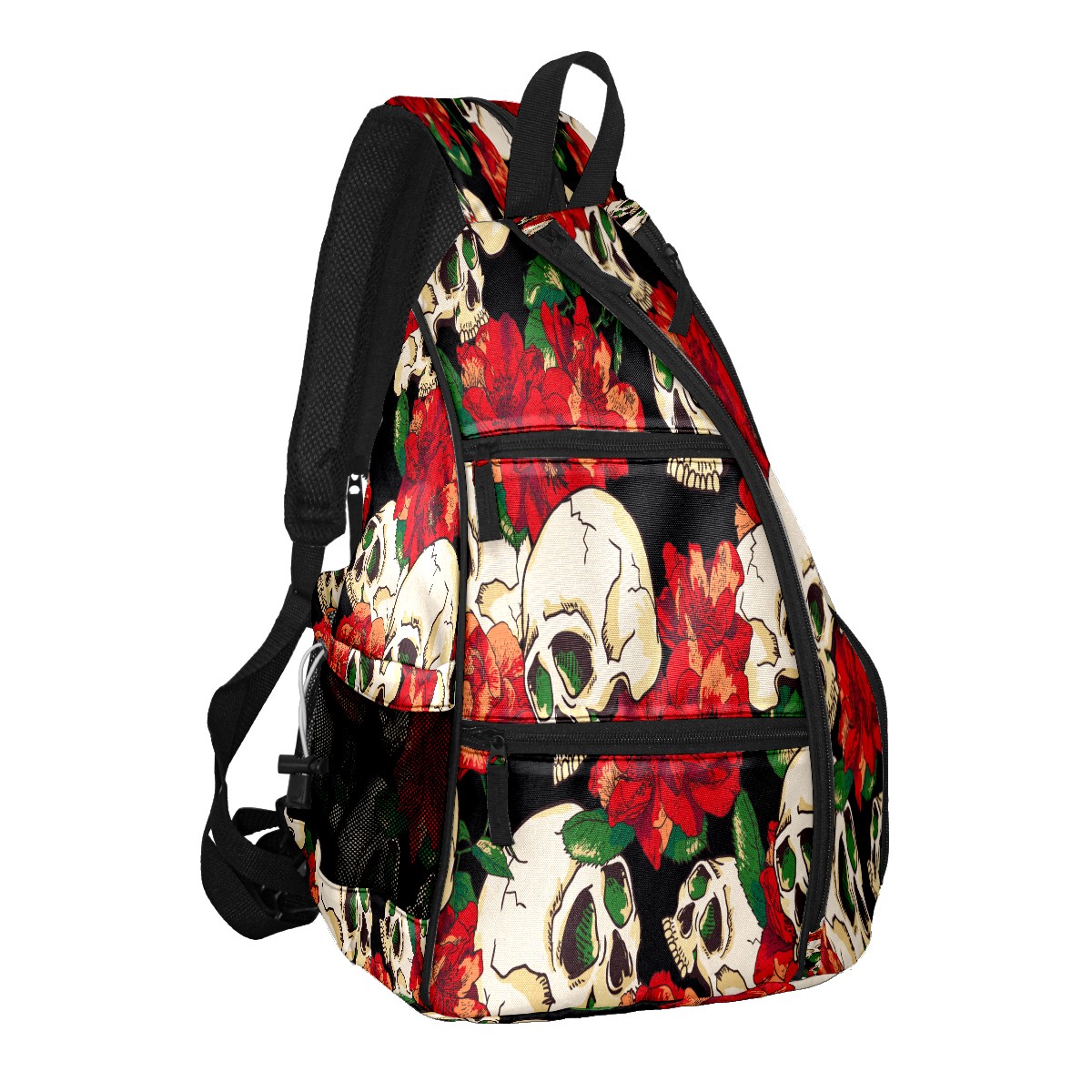 Multifunctional Pickleball Bag,Large Capacity Sports Pickleball Racket Bag, Water Bottle Holder and Fence Hook,Suitable for Both Men Women -Human Skull Pattern