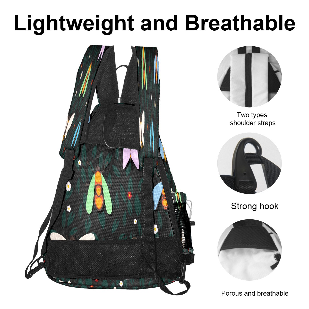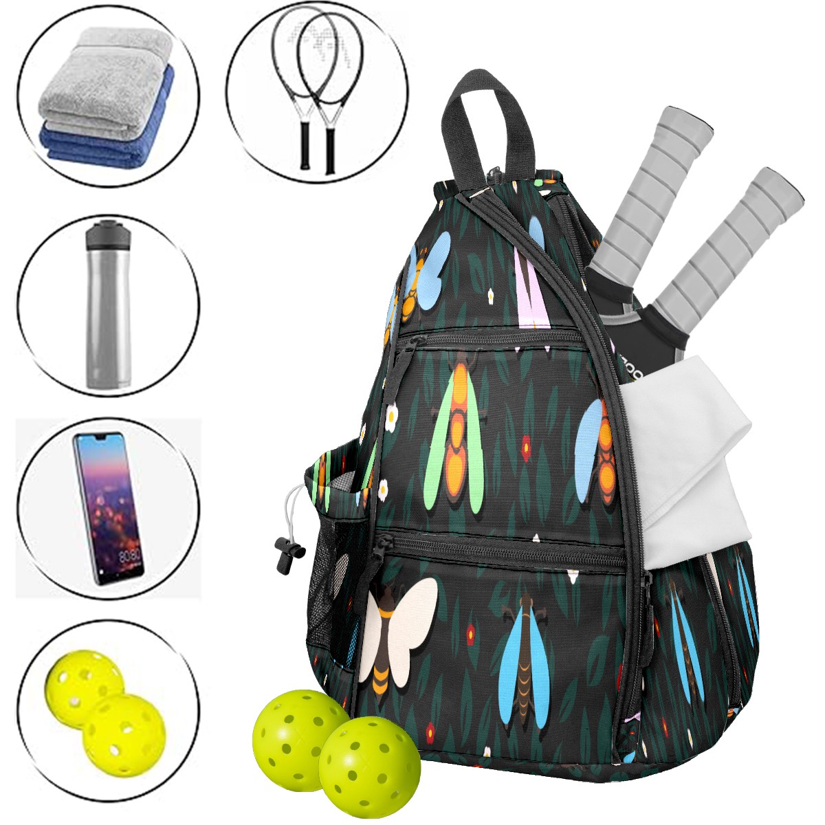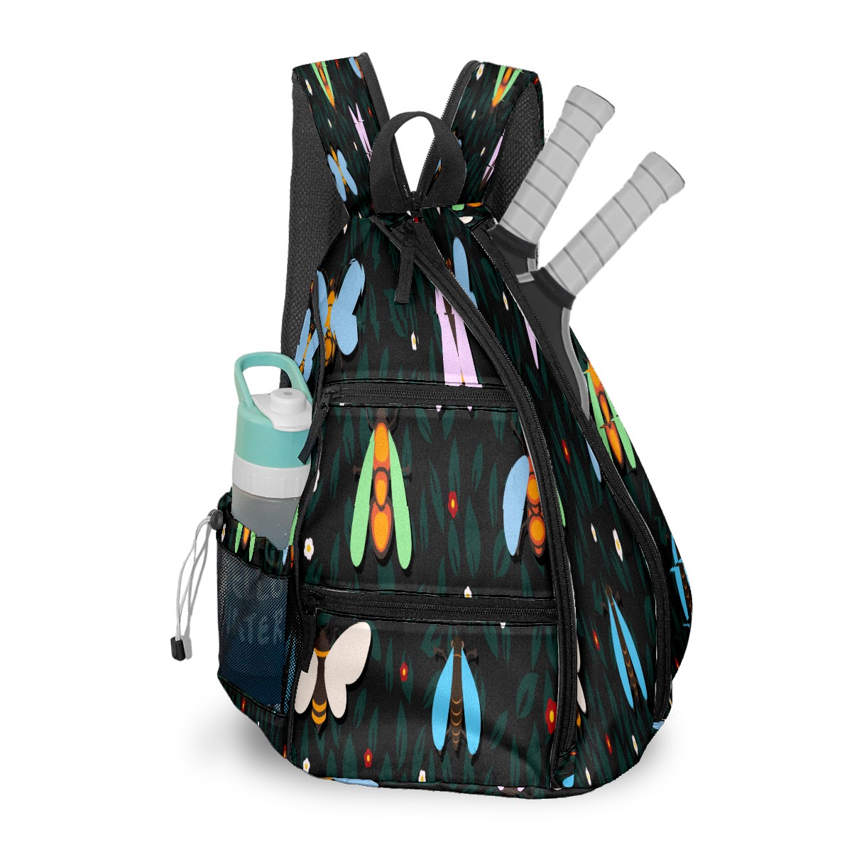 Multifunctional Pickleball Bag,Large Capacity Sports Pickleball Racket Bag, Water Bottle Holder and Fence Hook,Suitable for Both Men Women -Insect Dark Color