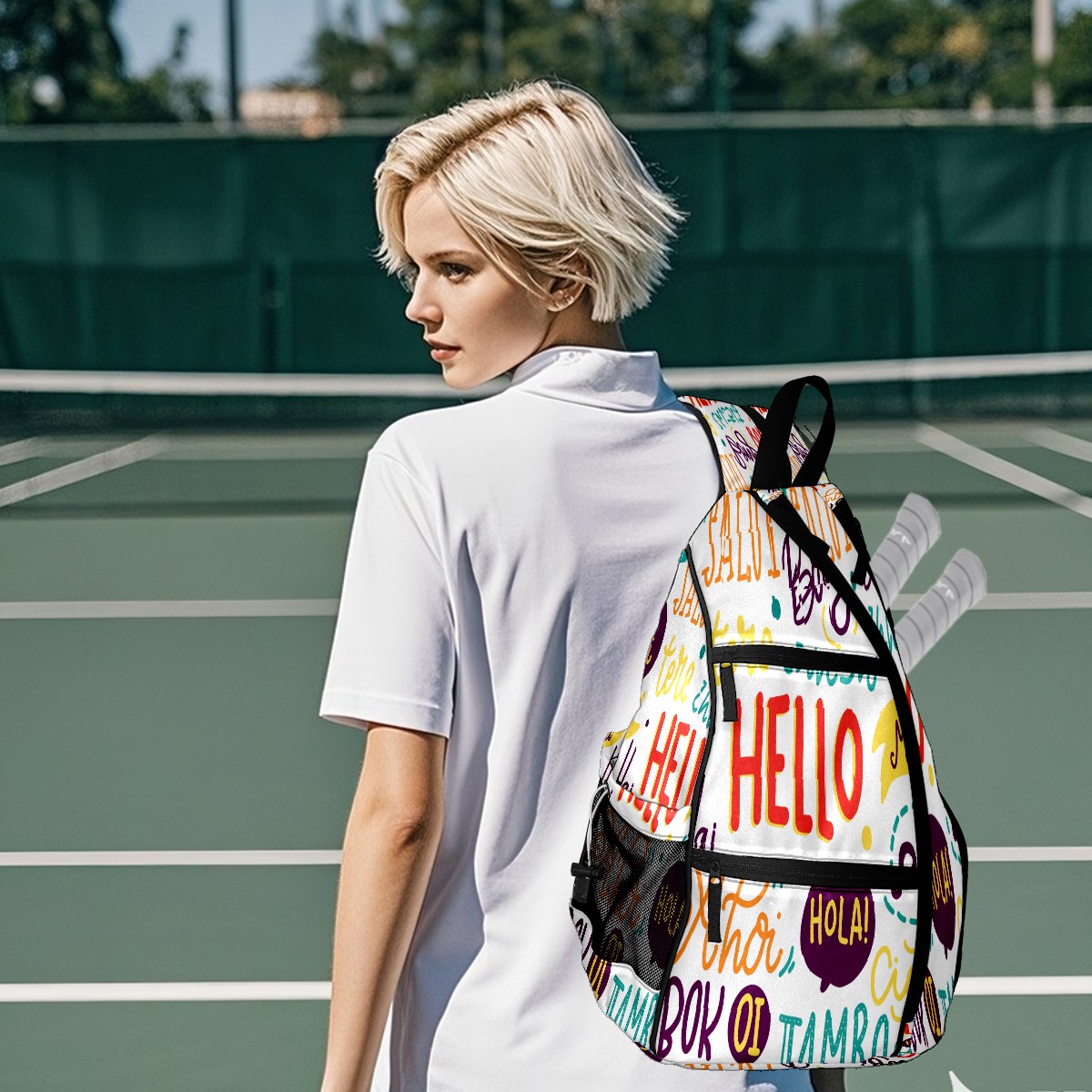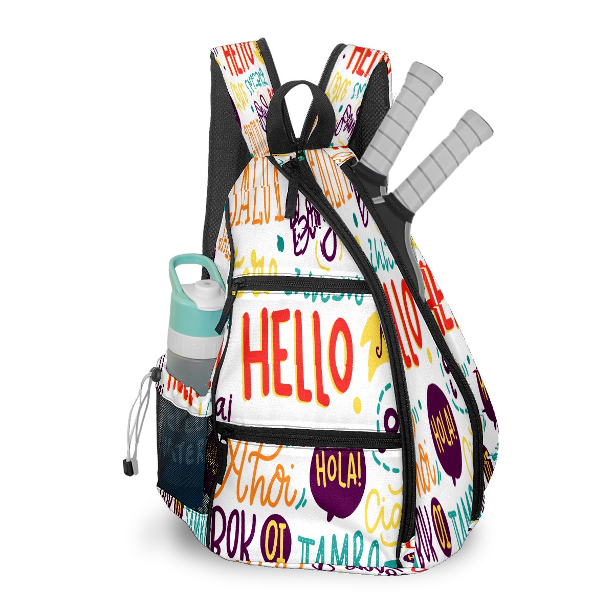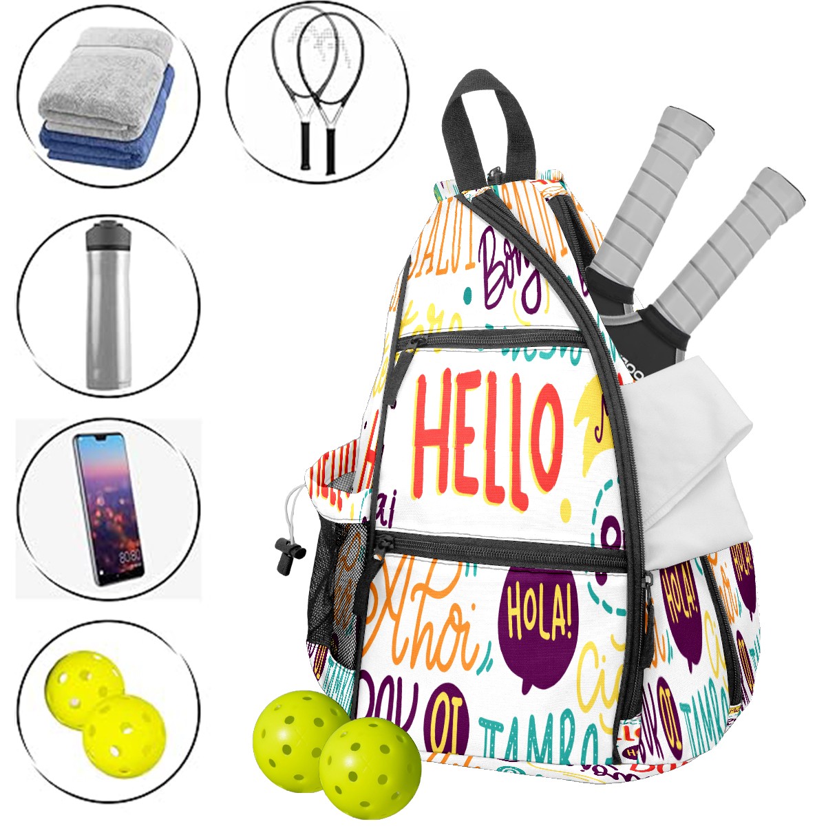 Multifunctional Pickleball Bag,Large Capacity Sports Pickleball Racket Bag, Water Bottle Holder and Fence Hook,Suitable for Both Men Women -Hello Words In Different Languages