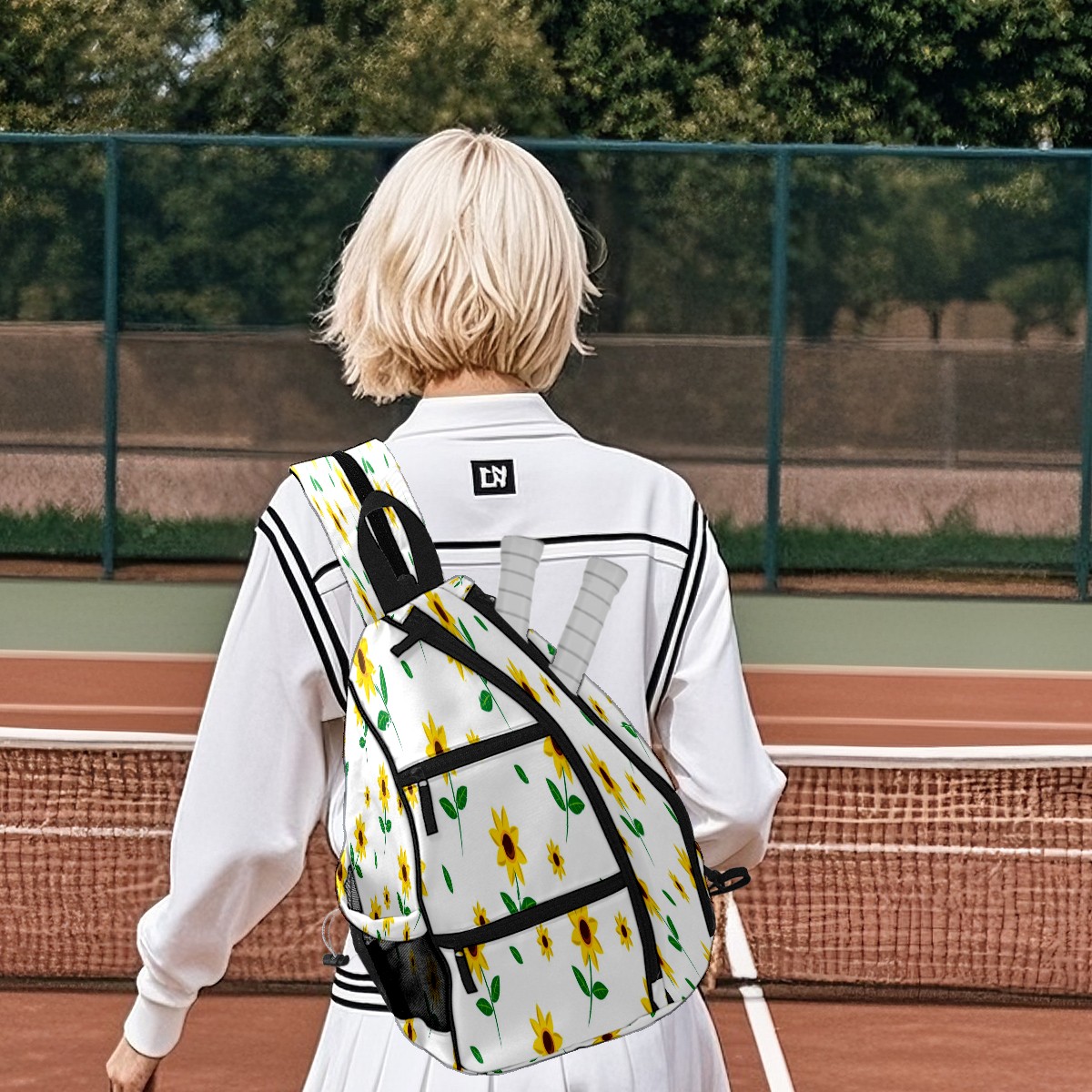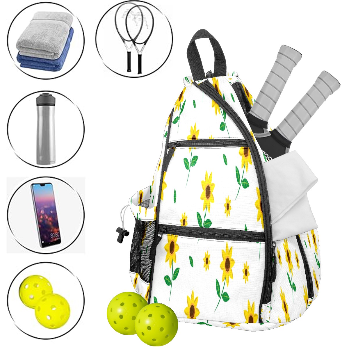 Multifunctional Pickleball Bag,Large Capacity Sports Pickleball Racket Bag, Water Bottle Holder and Fence Hook,Suitable for Both Men Women -Flower Floral