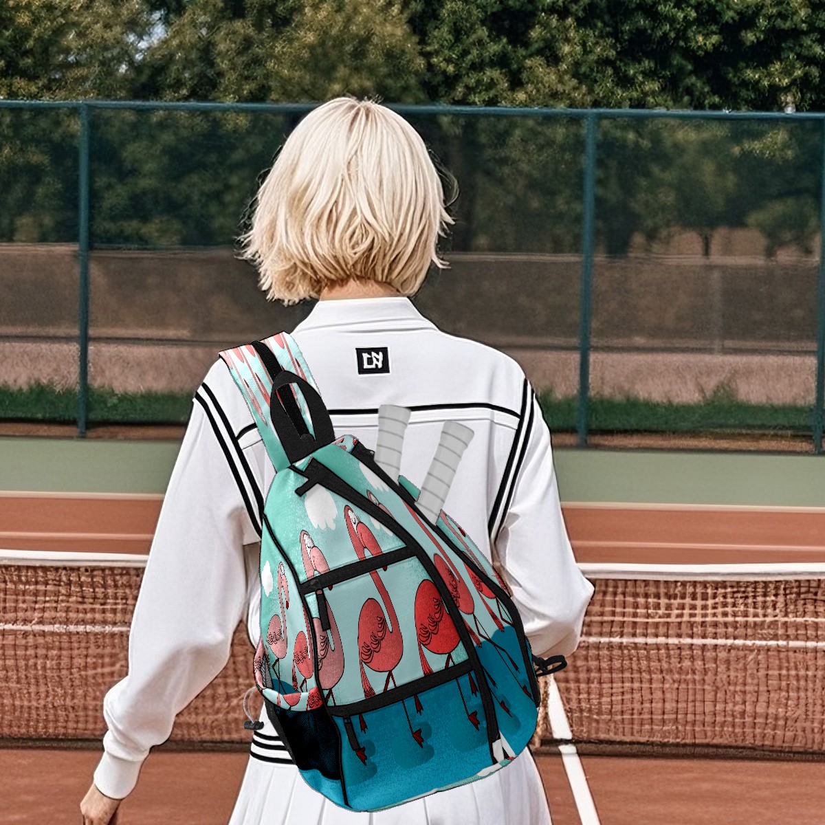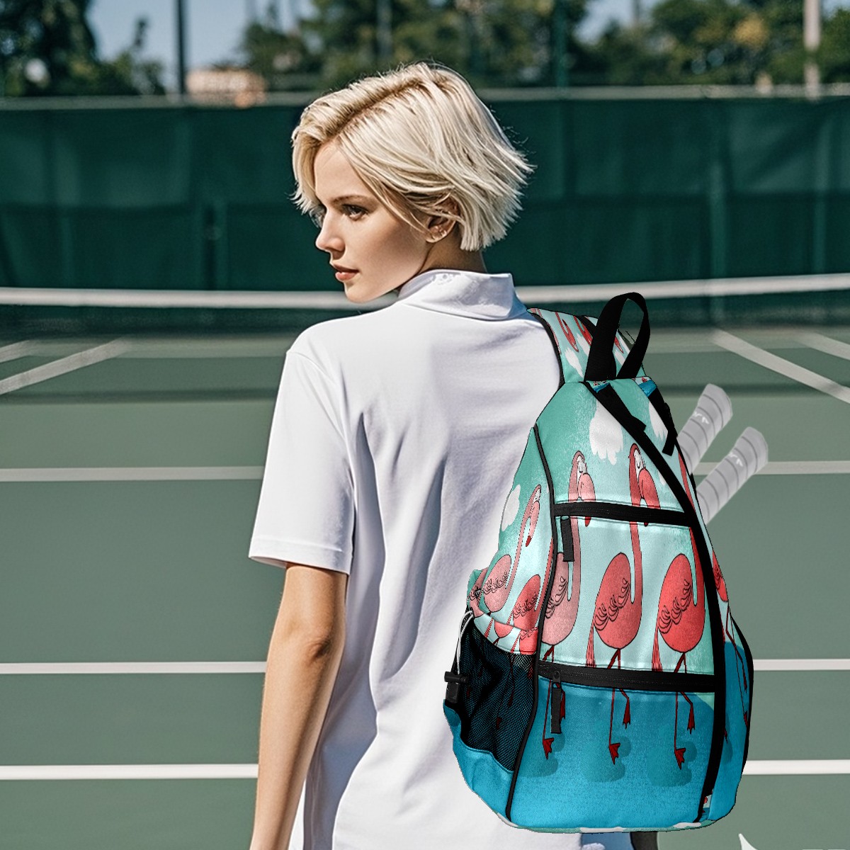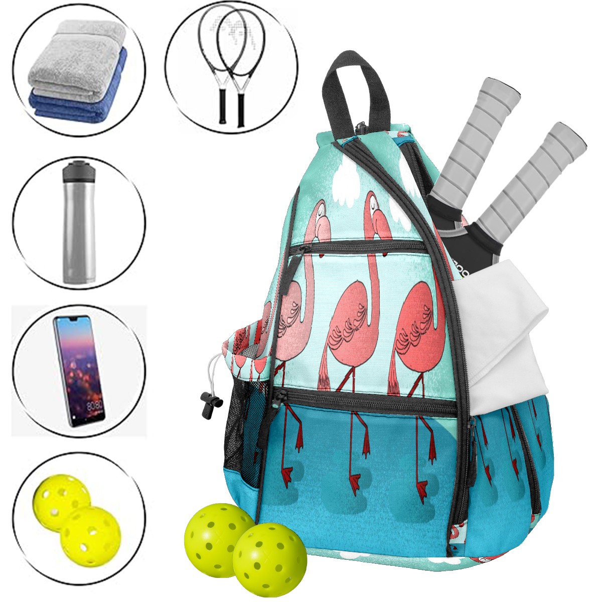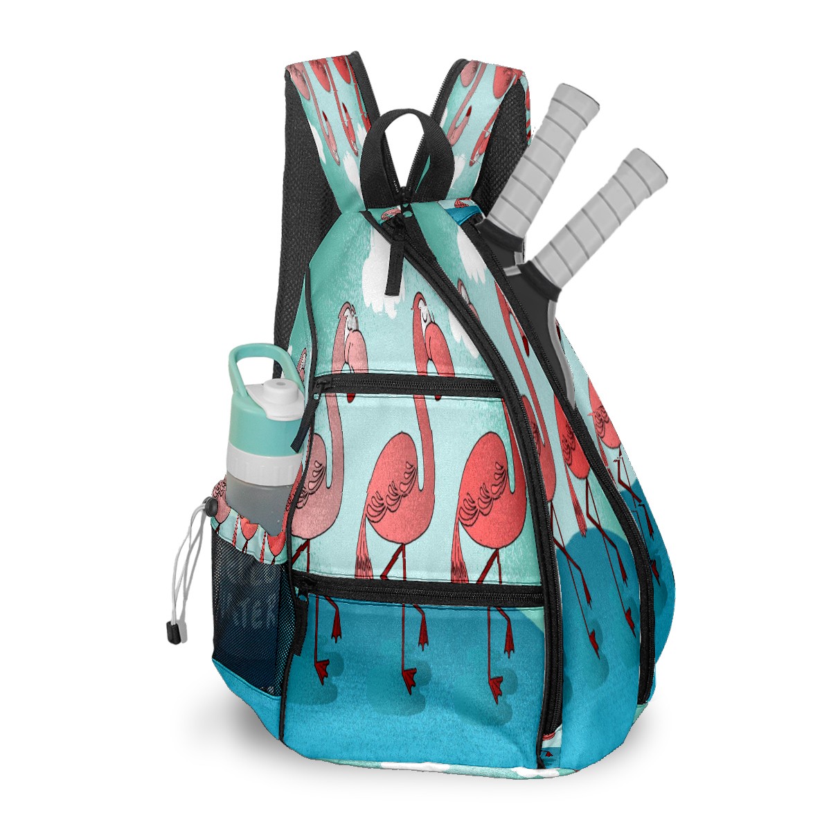 Multifunctional Pickleball Bag,Large Capacity Sports Pickleball Racket Bag, Water Bottle Holder and Fence Hook,Suitable for Both Men Women -Flamingo Animal
