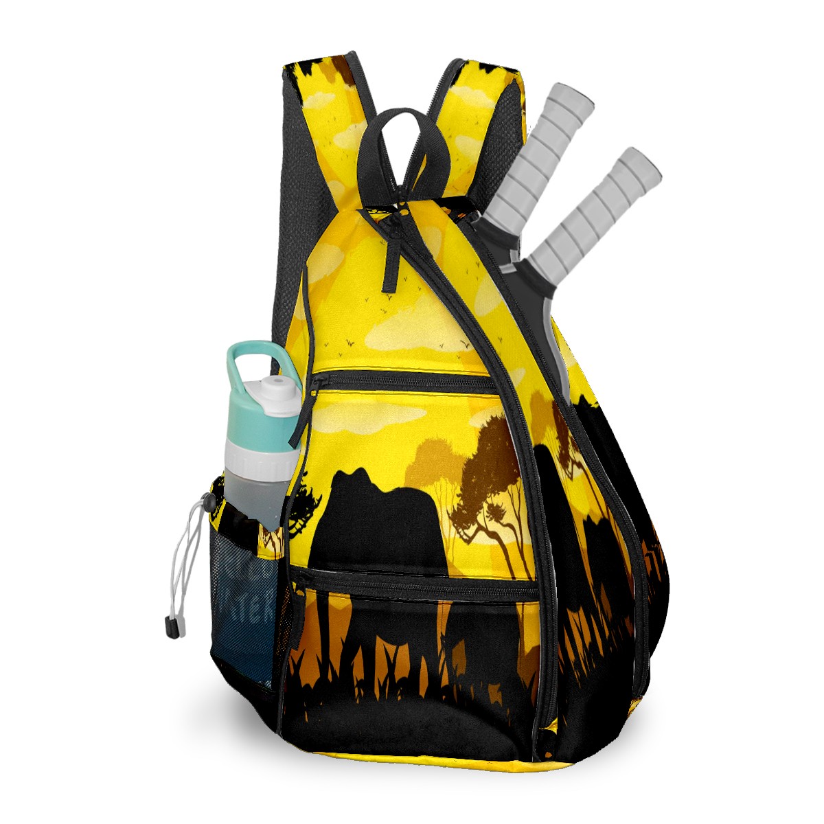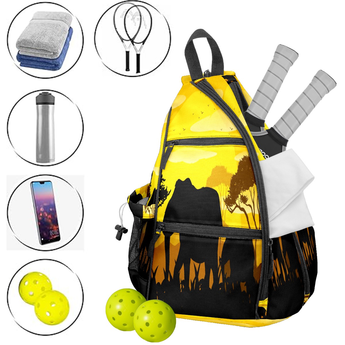 Multifunctional Pickleball Bag,Large Capacity Sports Pickleball Racket Bag, Water Bottle Holder and Fence Hook,Suitable for Both Men Women -Elephants