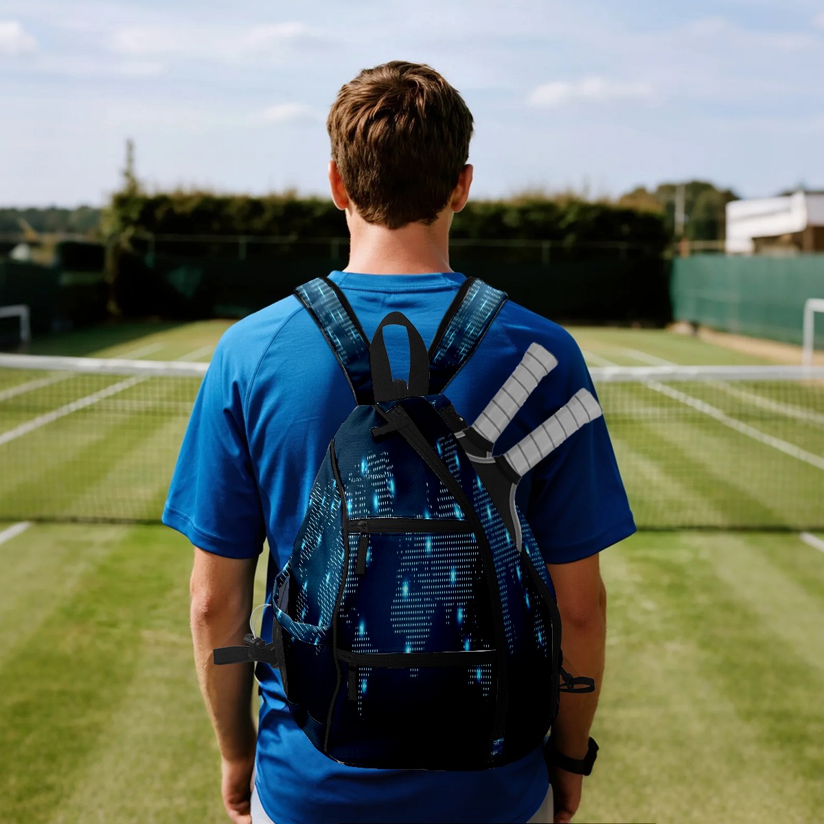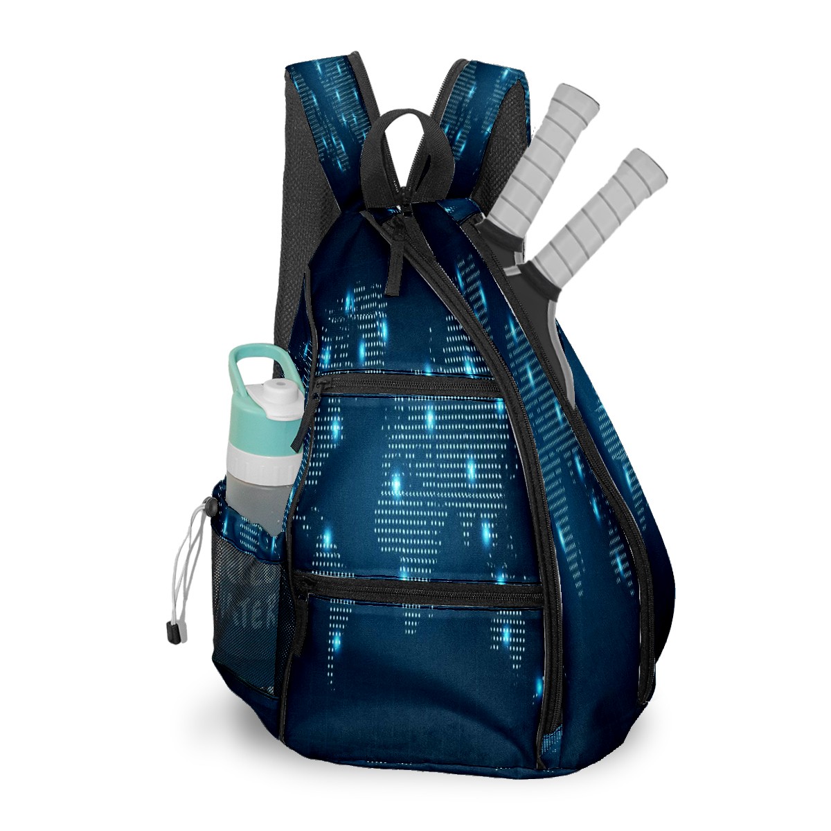Multifunctional Pickleball Bag,Large Capacity Sports Pickleball Racket Bag, Water Bottle Holder and Fence Hook,Suitable for Both Men Women -Dotted World Map
