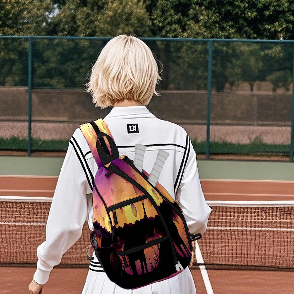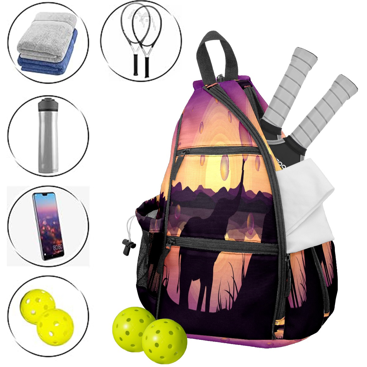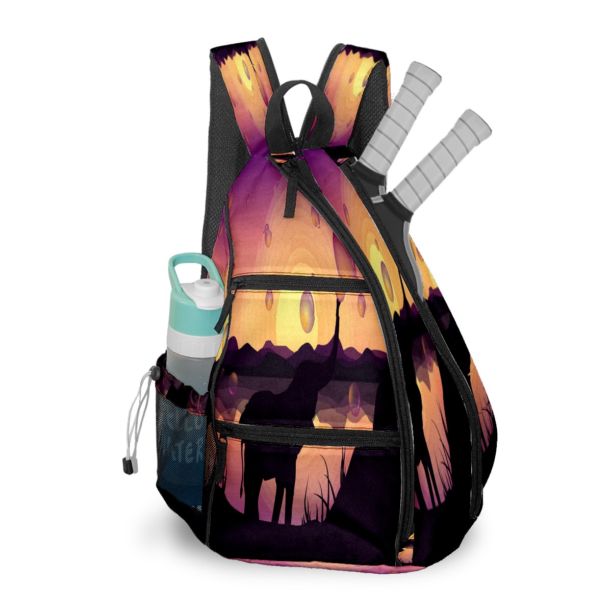 Multifunctional Pickleball Bag,Large Capacity Sports Pickleball Racket Bag, Water Bottle Holder and Fence Hook,Suitable for Both Men Women -Cute Elephant Blowing Bubbles