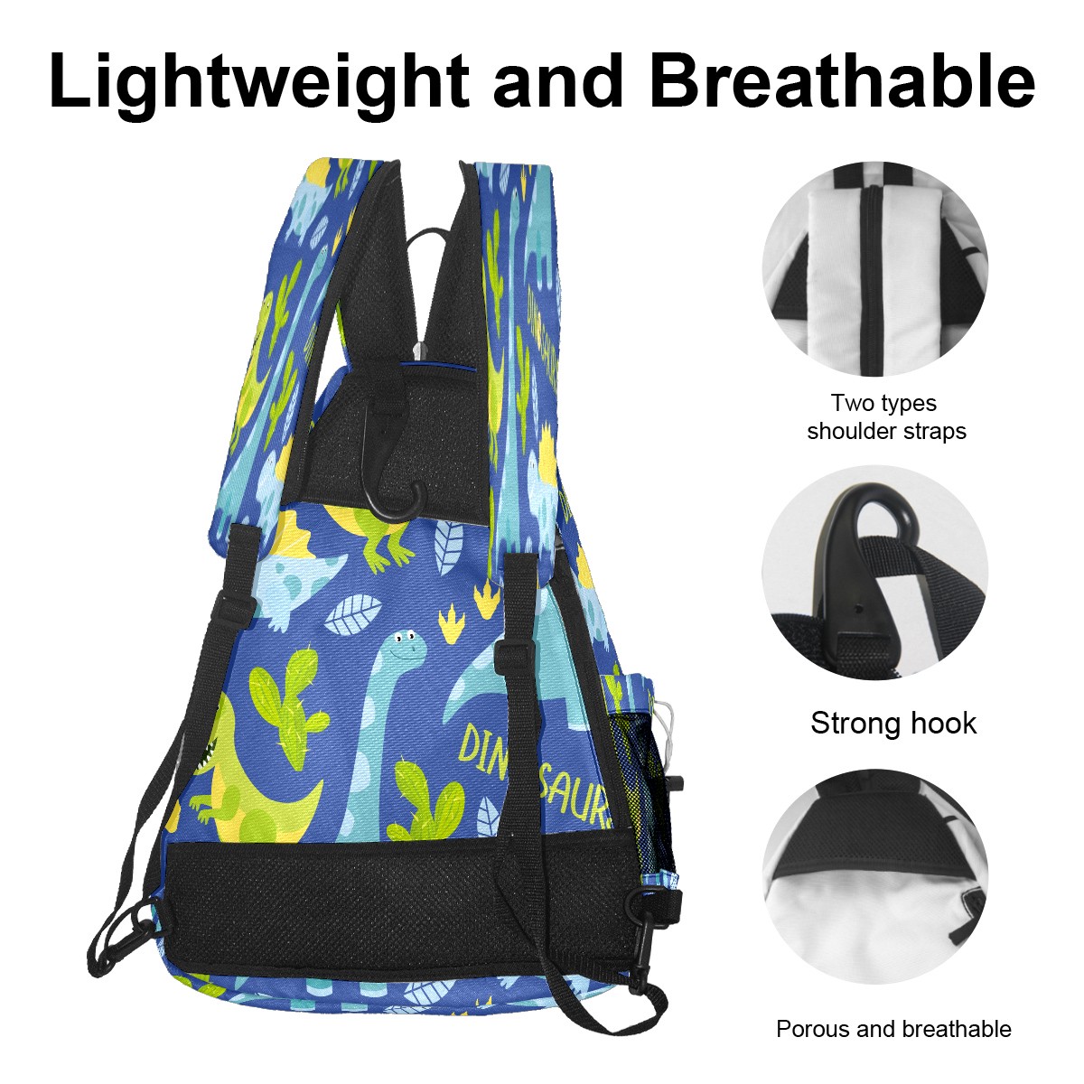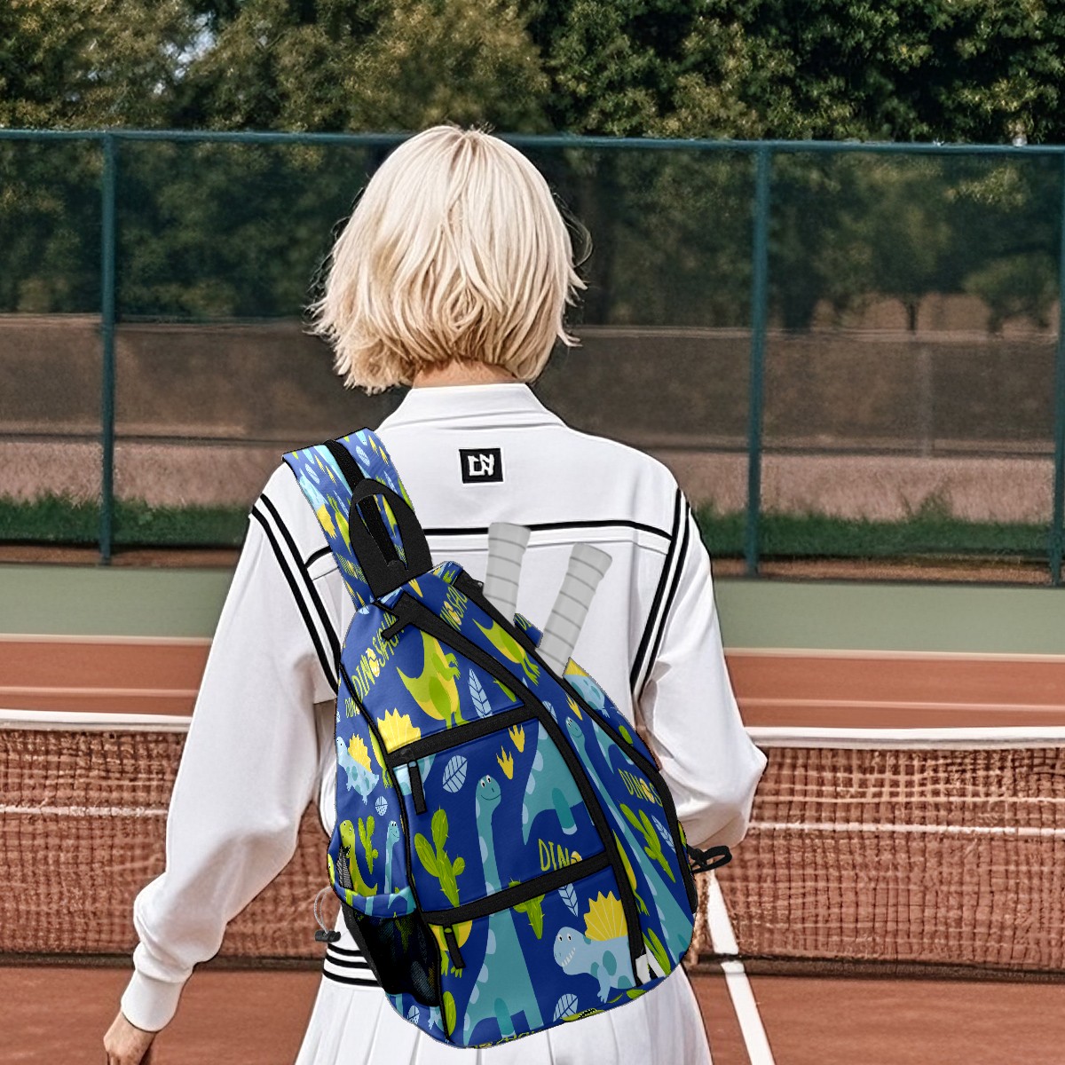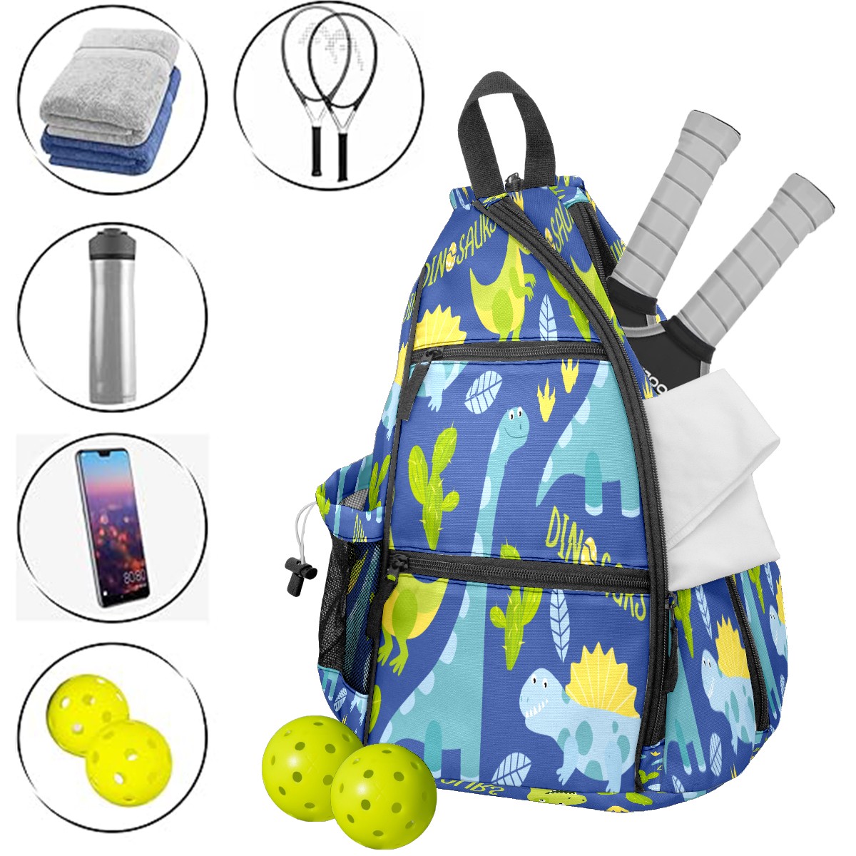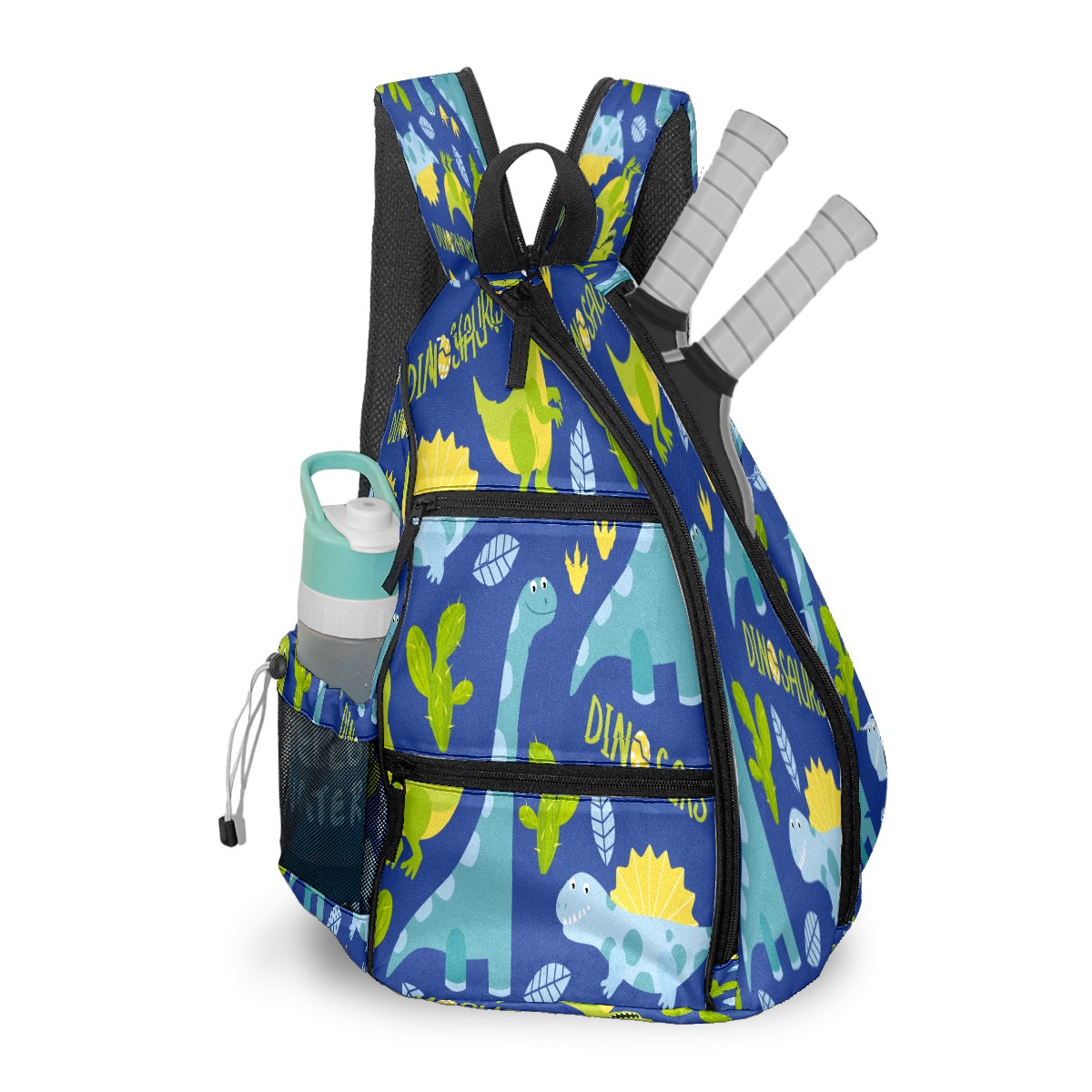Multifunctional Pickleball Bag,Large Capacity Sports Pickleball Racket Bag, Water Bottle Holder and Fence Hook,Suitable for Both Men Women -Cute Dinosaur