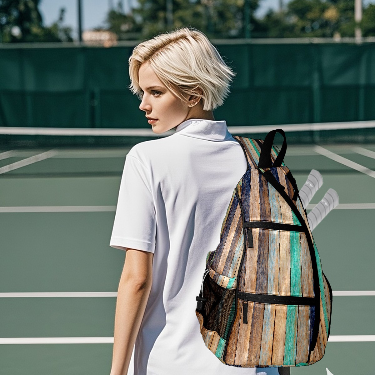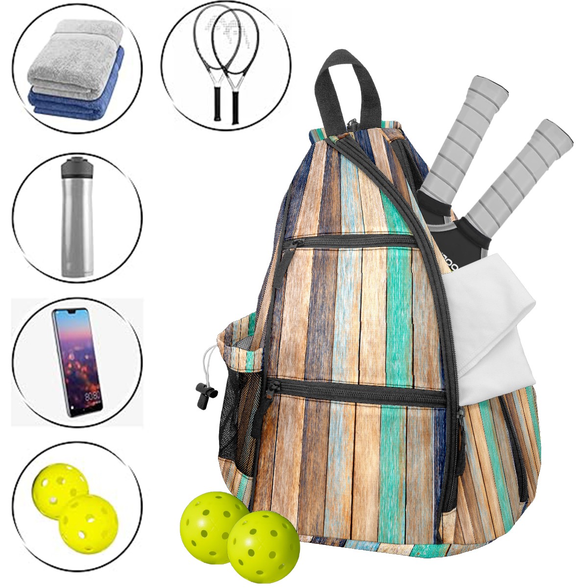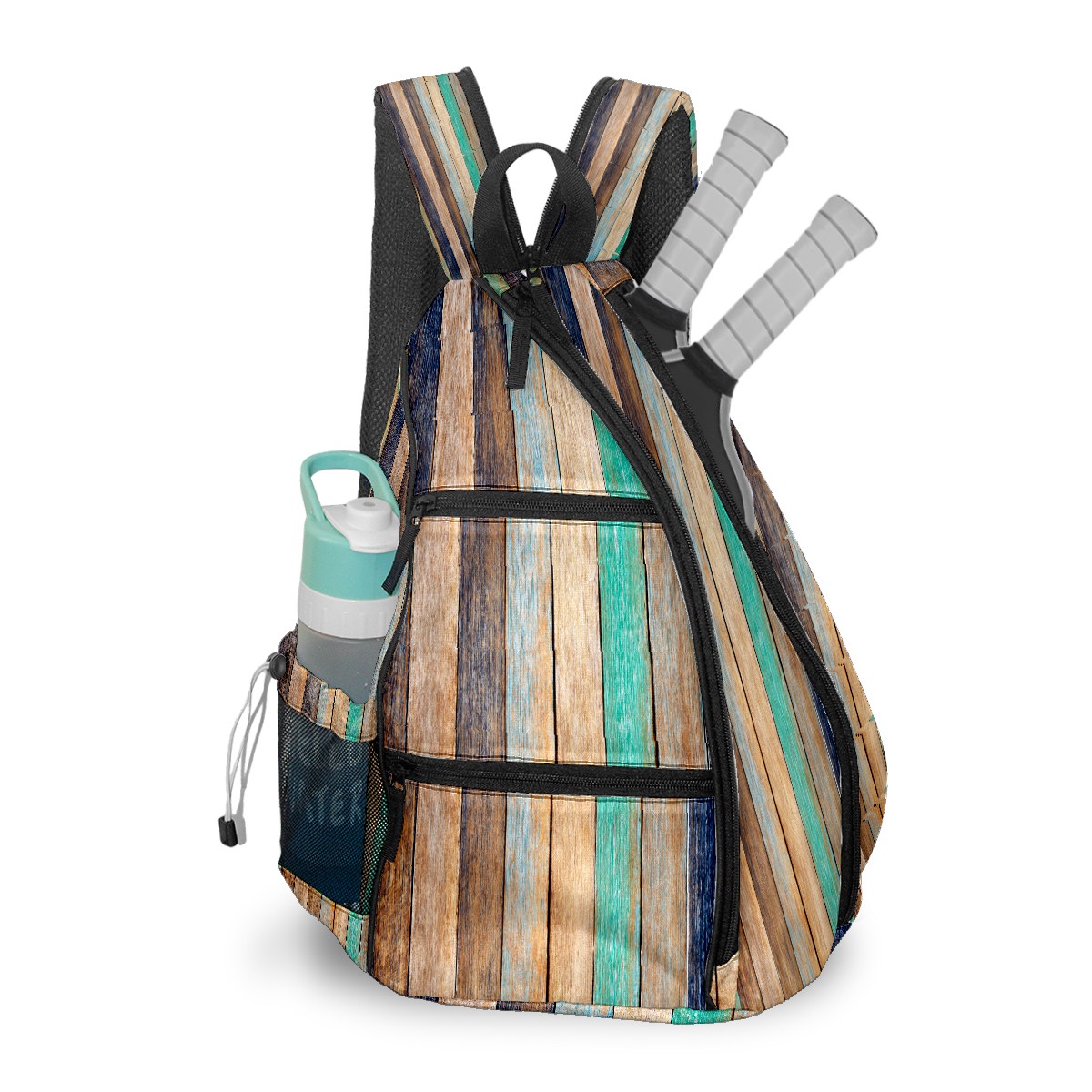Multifunctional Pickleball Bag,Large Capacity Sports Pickleball Racket Bag, Water Bottle Holder and Fence Hook,Suitable for Both Men Women -Colorful Wooden