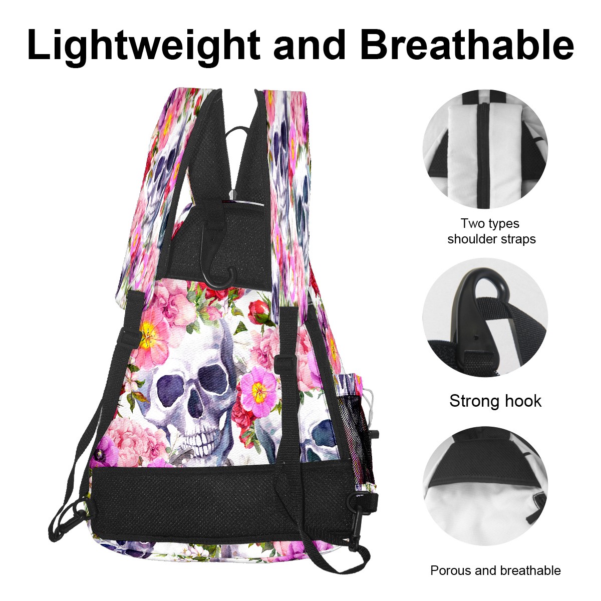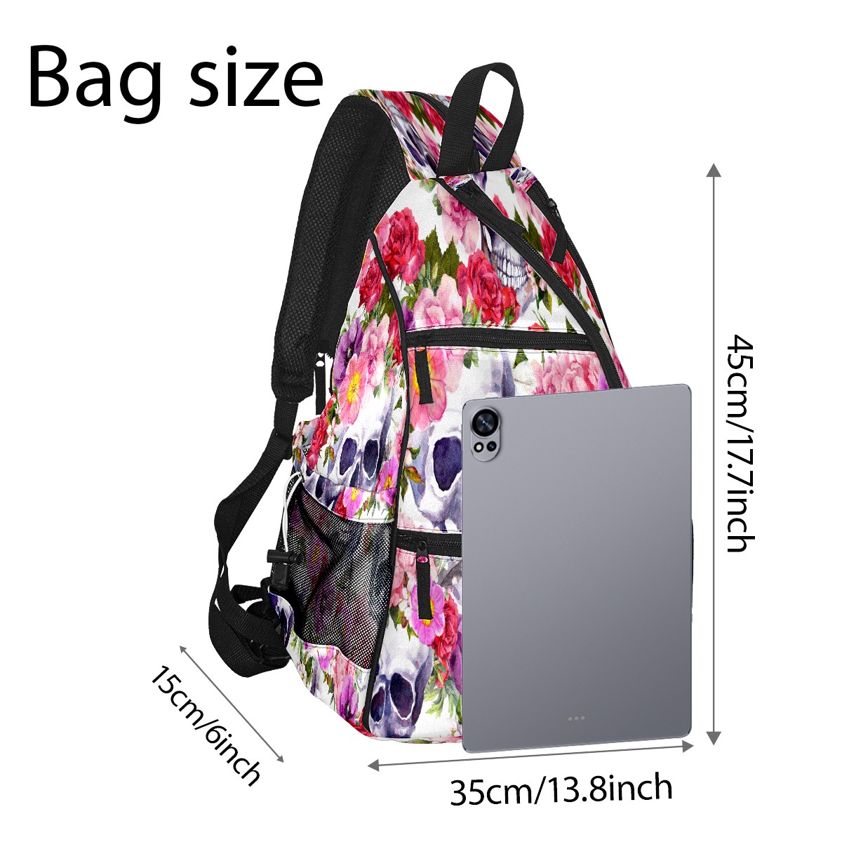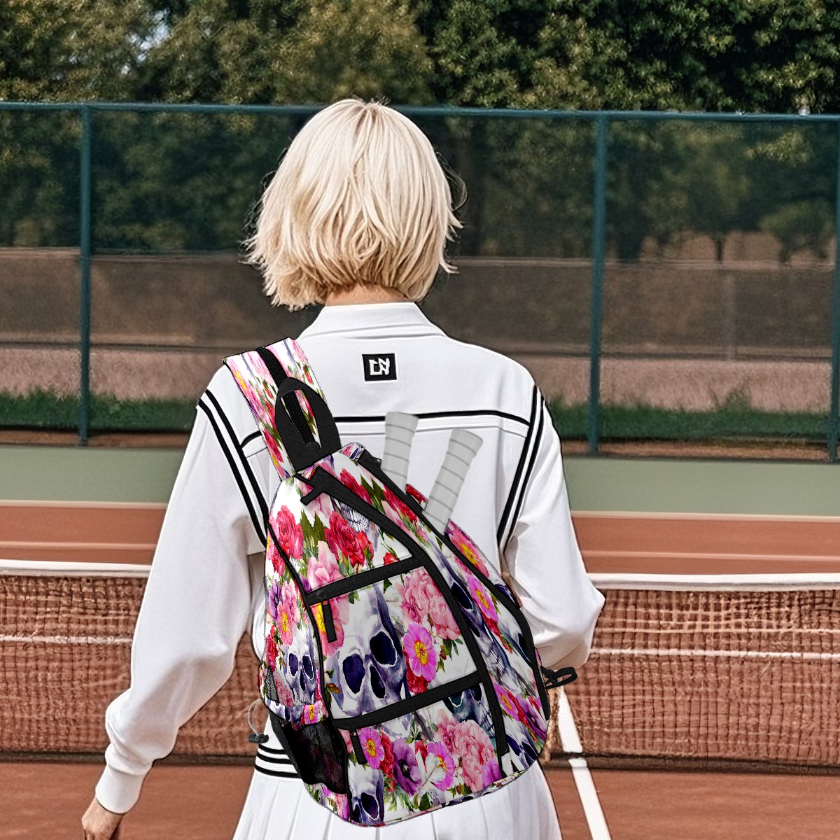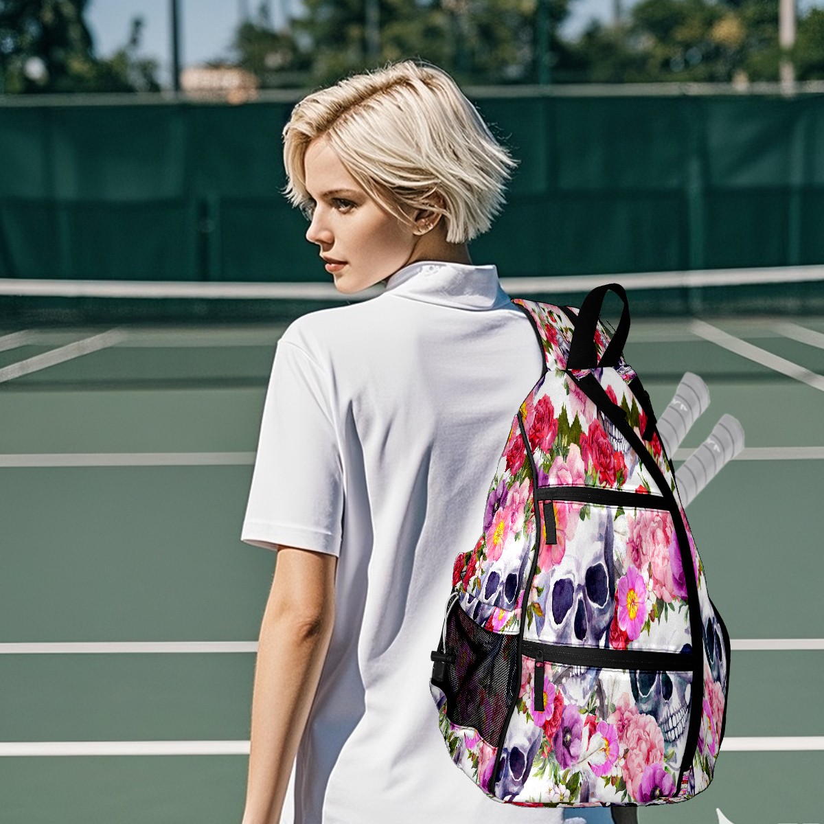 Multifunctional Pickleball Bag,Large Capacity Sports Pickleball Racket Bag, Water Bottle Holder and Fence Hook,Suitable for Both Men Women -Colorful Flowers And Skull Pattern
