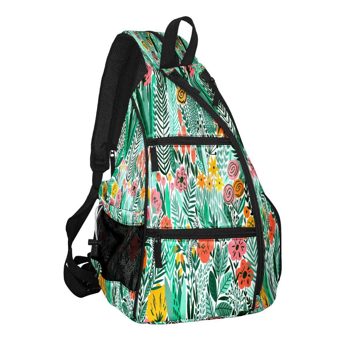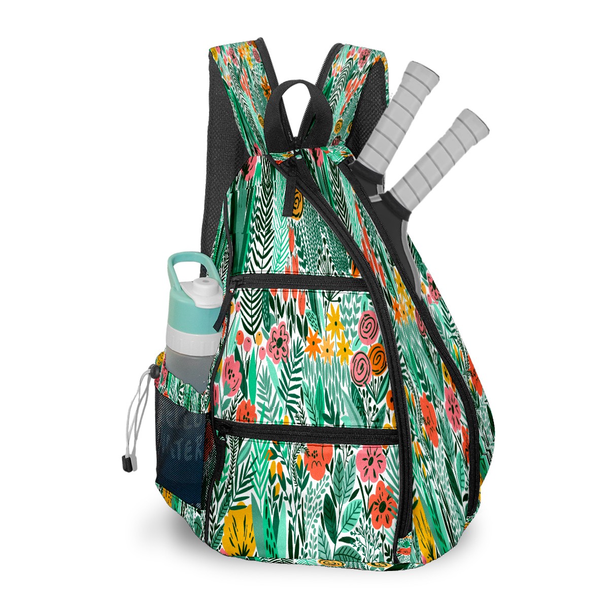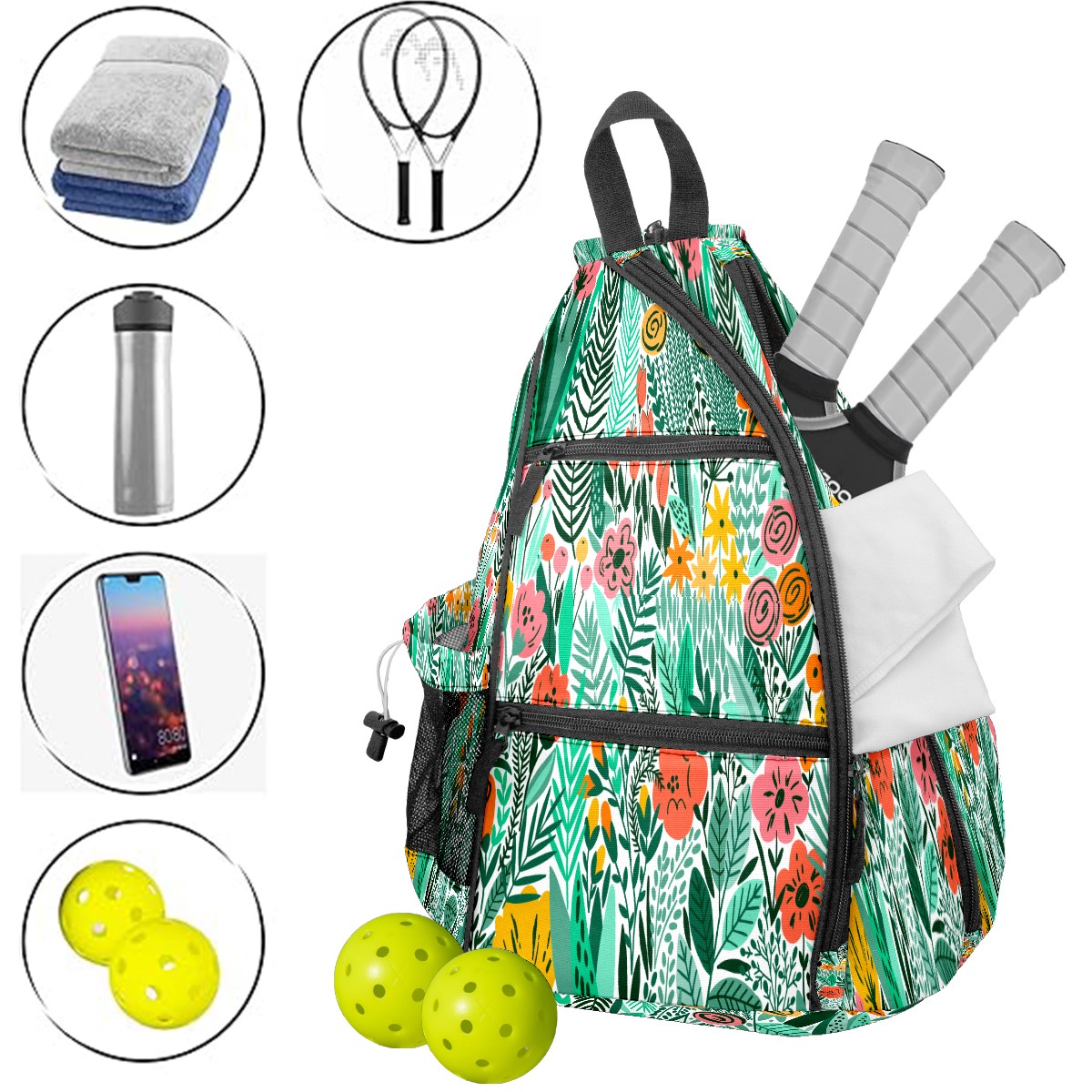 Multifunctional Pickleball Bag,Large Capacity Sports Pickleball Racket Bag, Water Bottle Holder and Fence Hook,Suitable for Both Men Women -Colrful Hand Drawn Plant