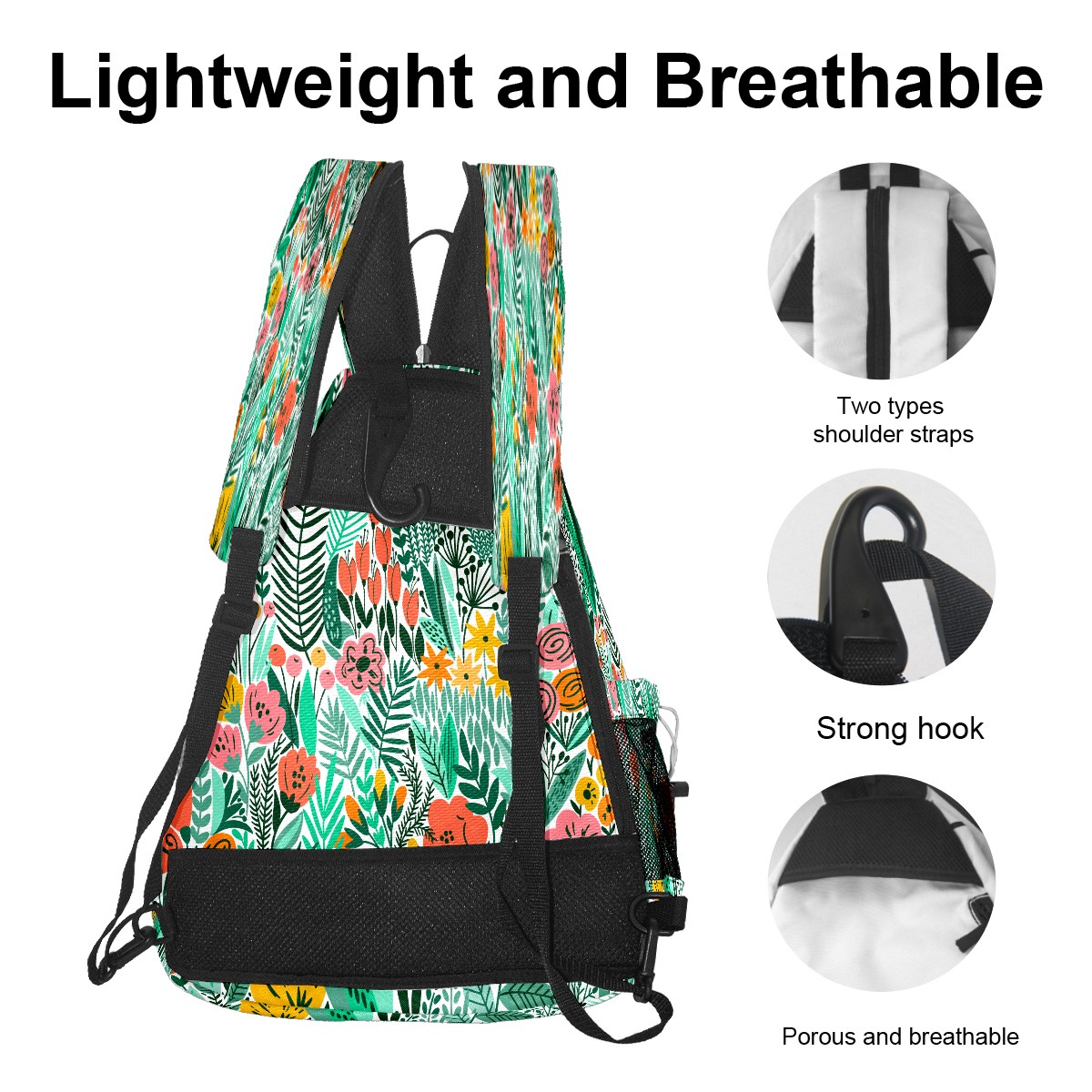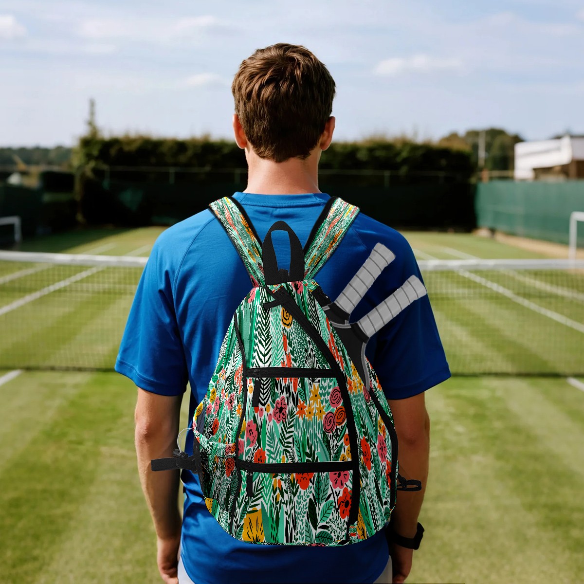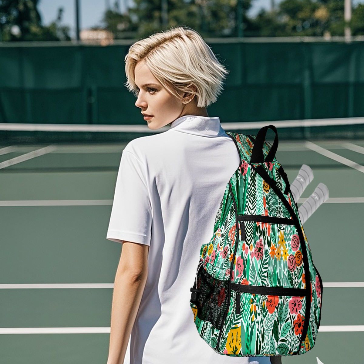 Multifunctional Pickleball Bag,Large Capacity Sports Pickleball Racket Bag, Water Bottle Holder and Fence Hook,Suitable for Both Men Women -Colrful Hand Drawn Plant