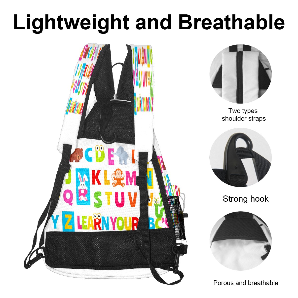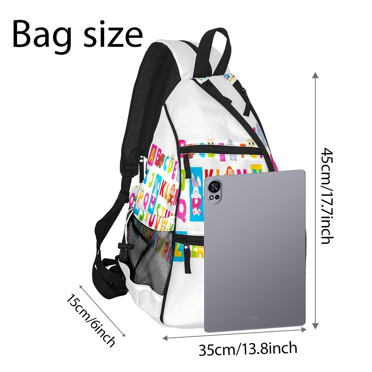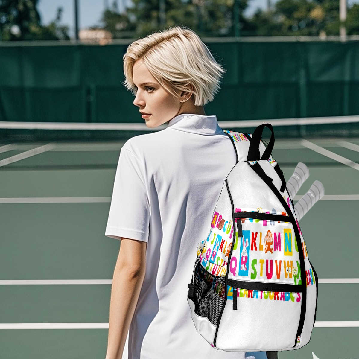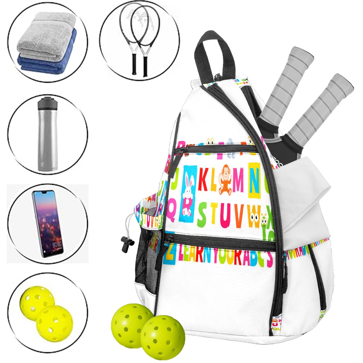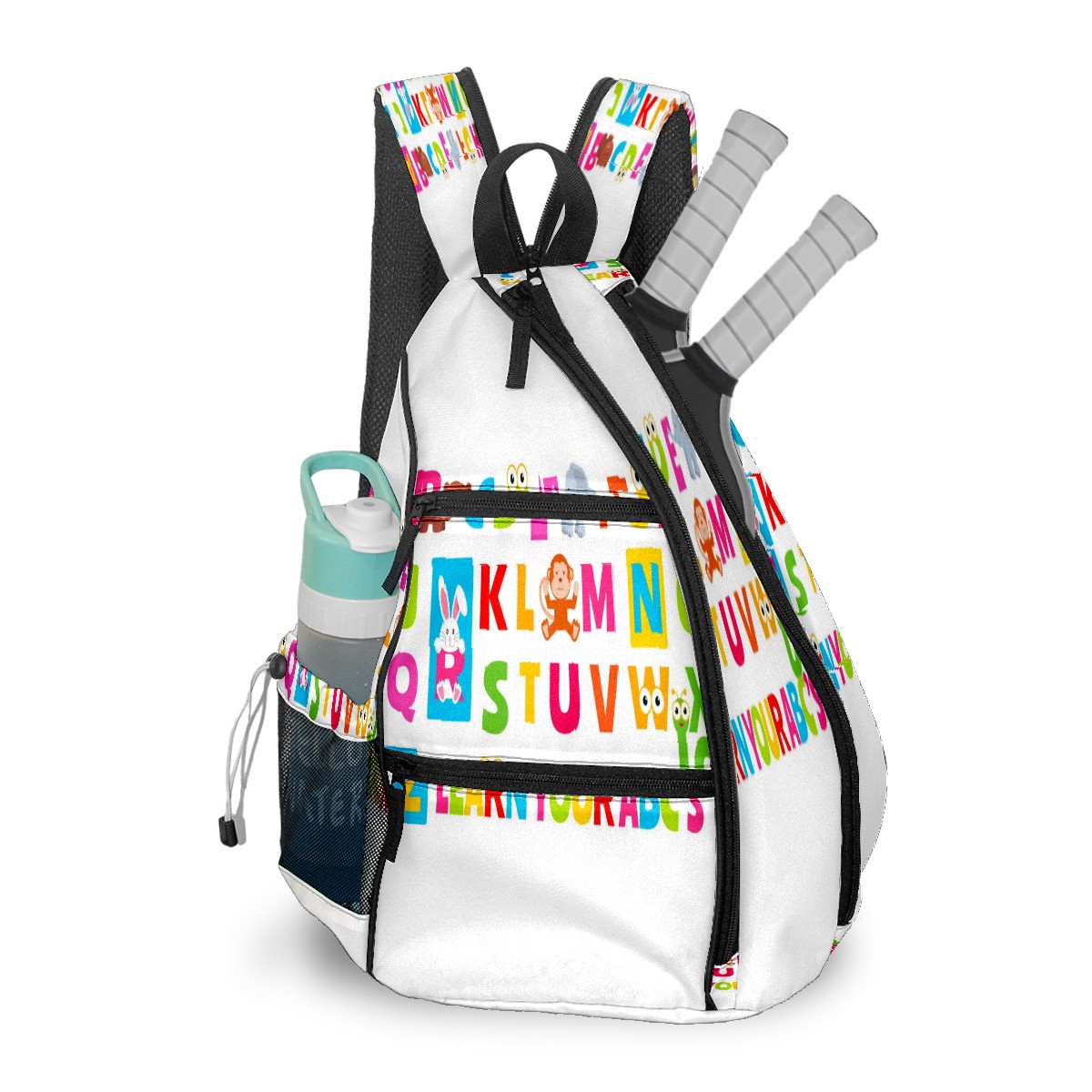 Multifunctional Pickleball Bag,Large Capacity Sports Pickleball Racket Bag, Water Bottle Holder and Fence Hook,Suitable for Both Men Women -Cute Animal Alphabet