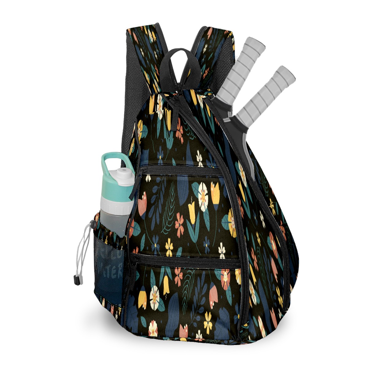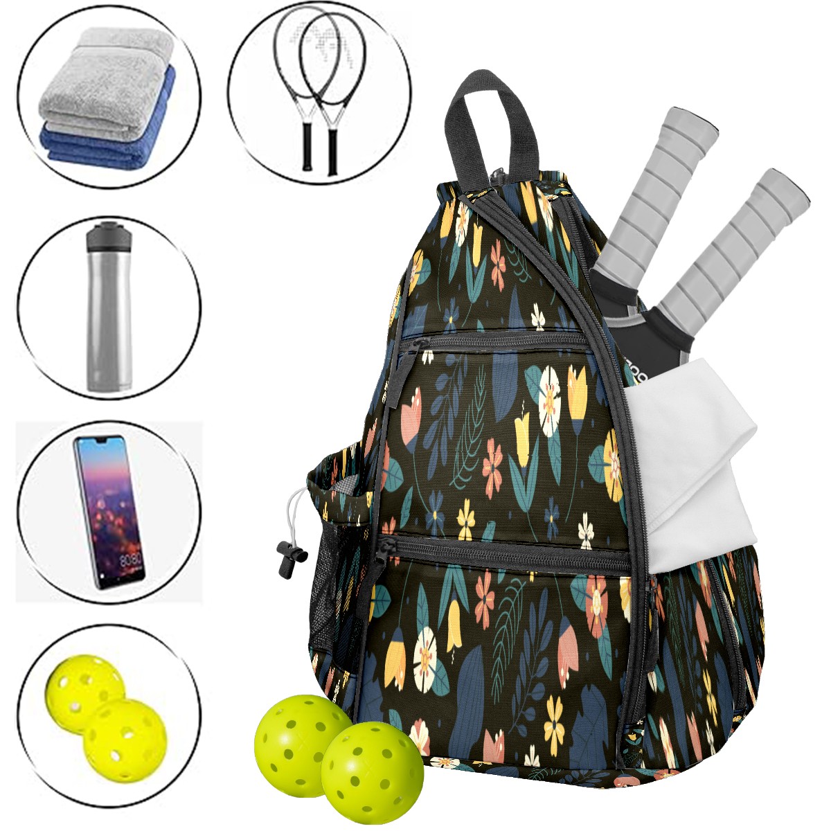 Multifunctional Pickleball Bag,Large Capacity Sports Pickleball Racket Bag, Water Bottle Holder and Fence Hook,Suitable for Both Men Women -Colorful Floral Print