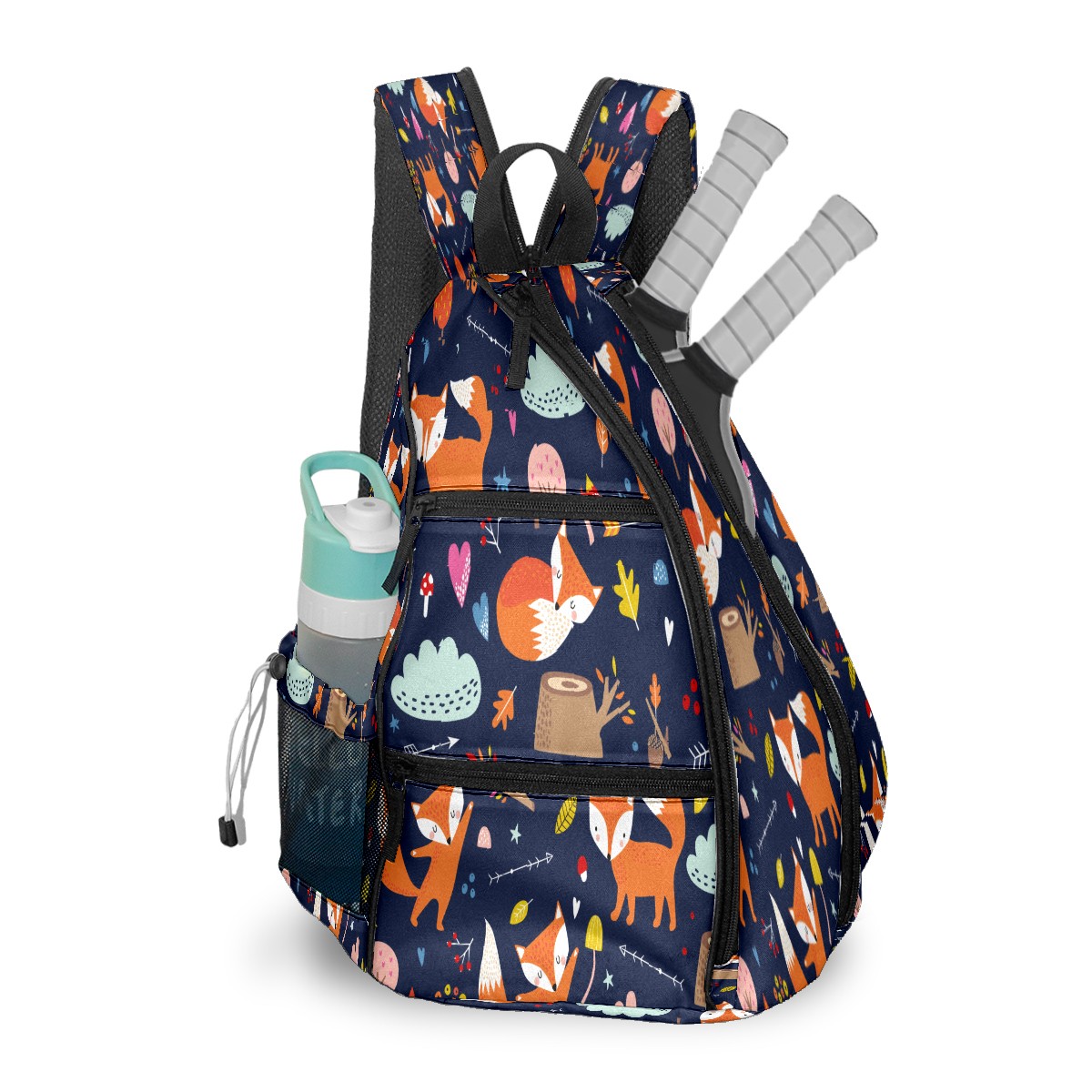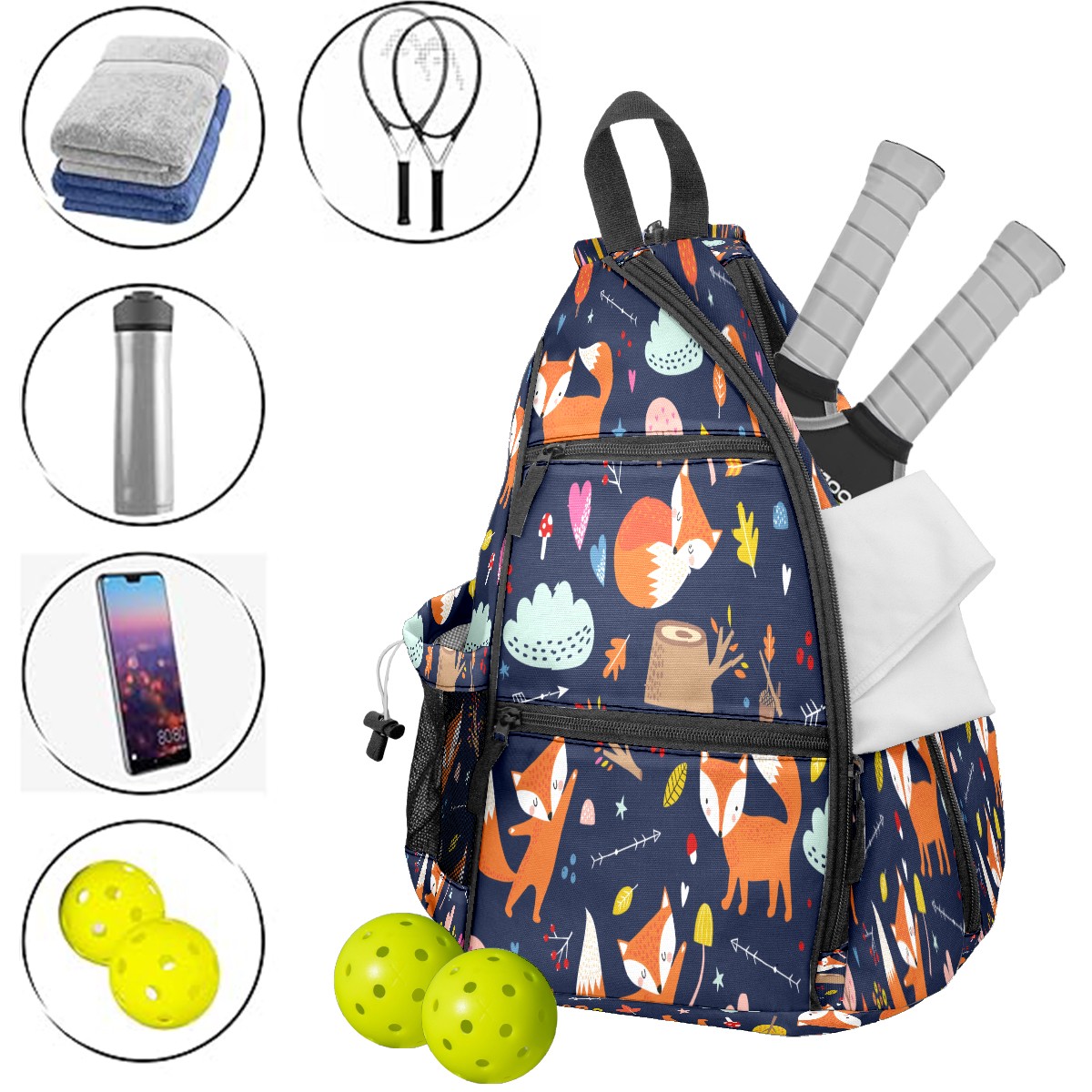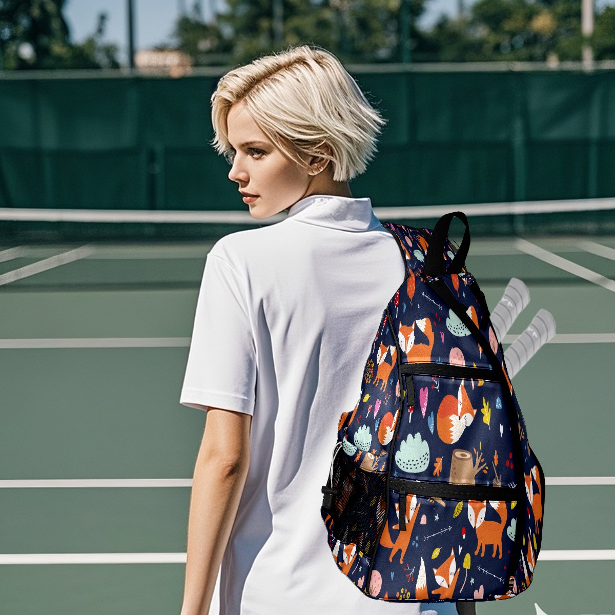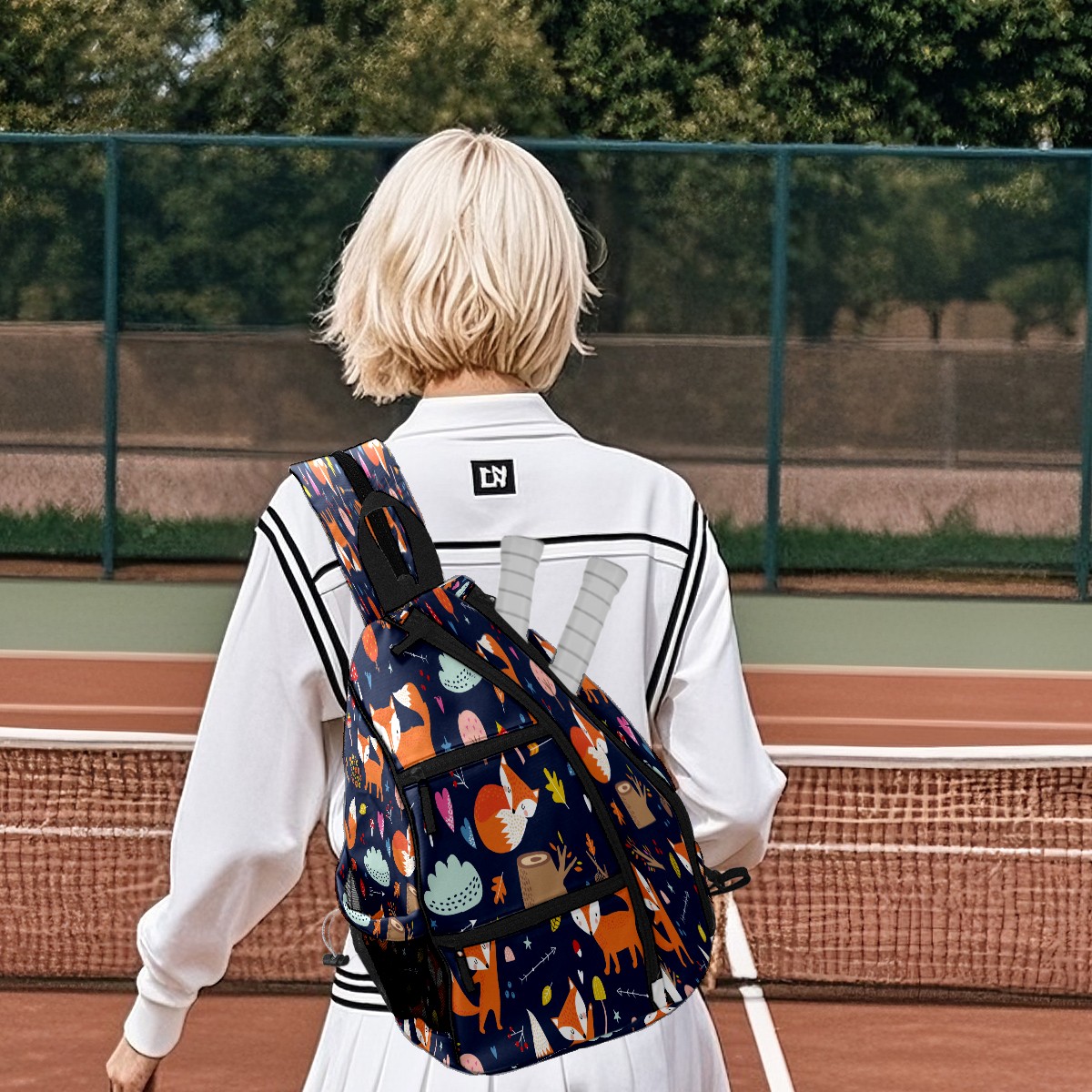 Multifunctional Pickleball Bag,Large Capacity Sports Pickleball Racket Bag, Water Bottle Holder and Fence Hook,Suitable for Both Men Women -Cartoon Fox Pattern