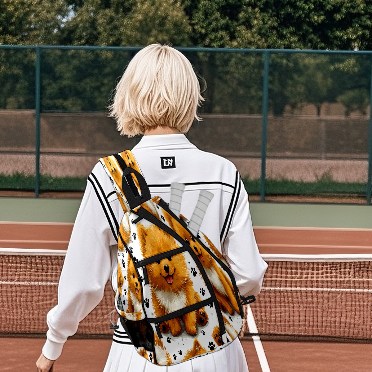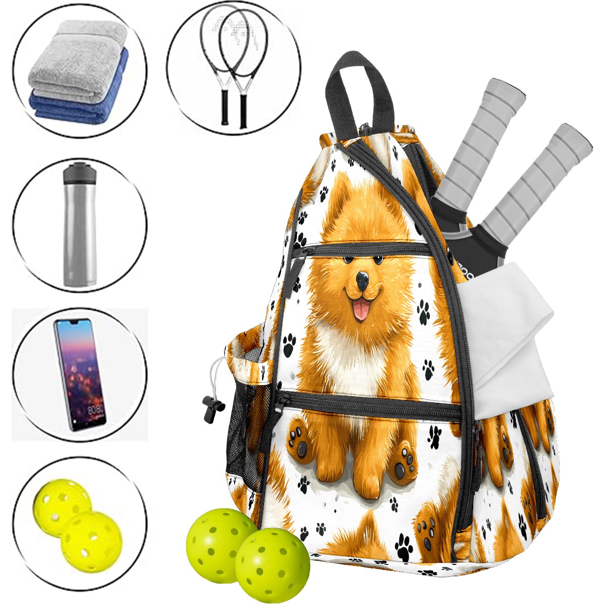 Multifunctional Pickleball Bag,Large Capacity Sports Pickleball Racket Bag, Water Bottle Holder and Fence Hook,Suitable for Both Men Women -Pomeranian Paw Orange (1)