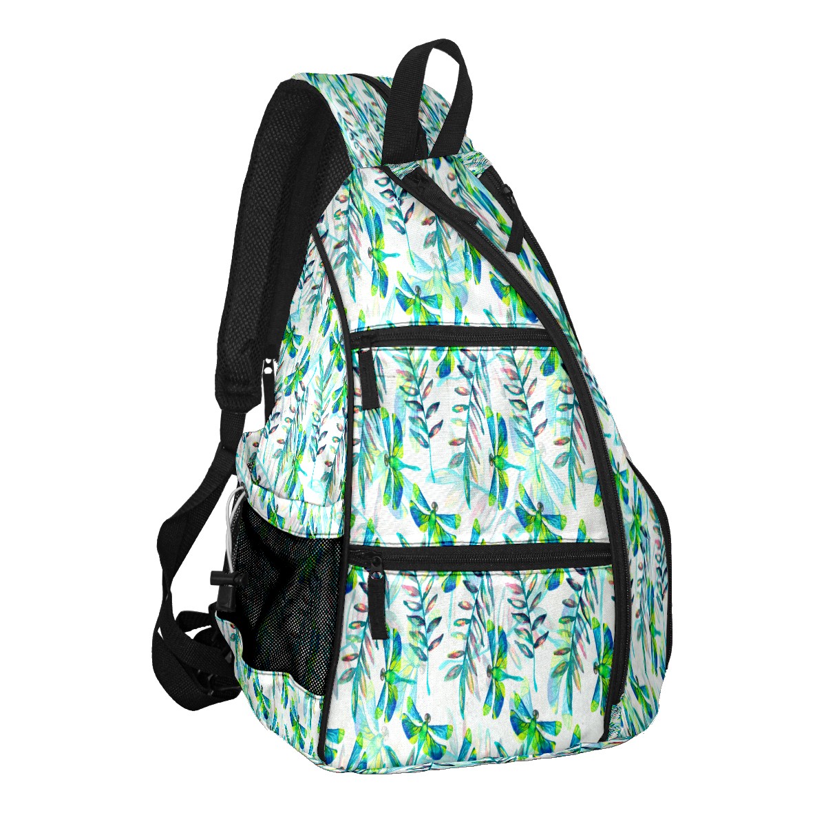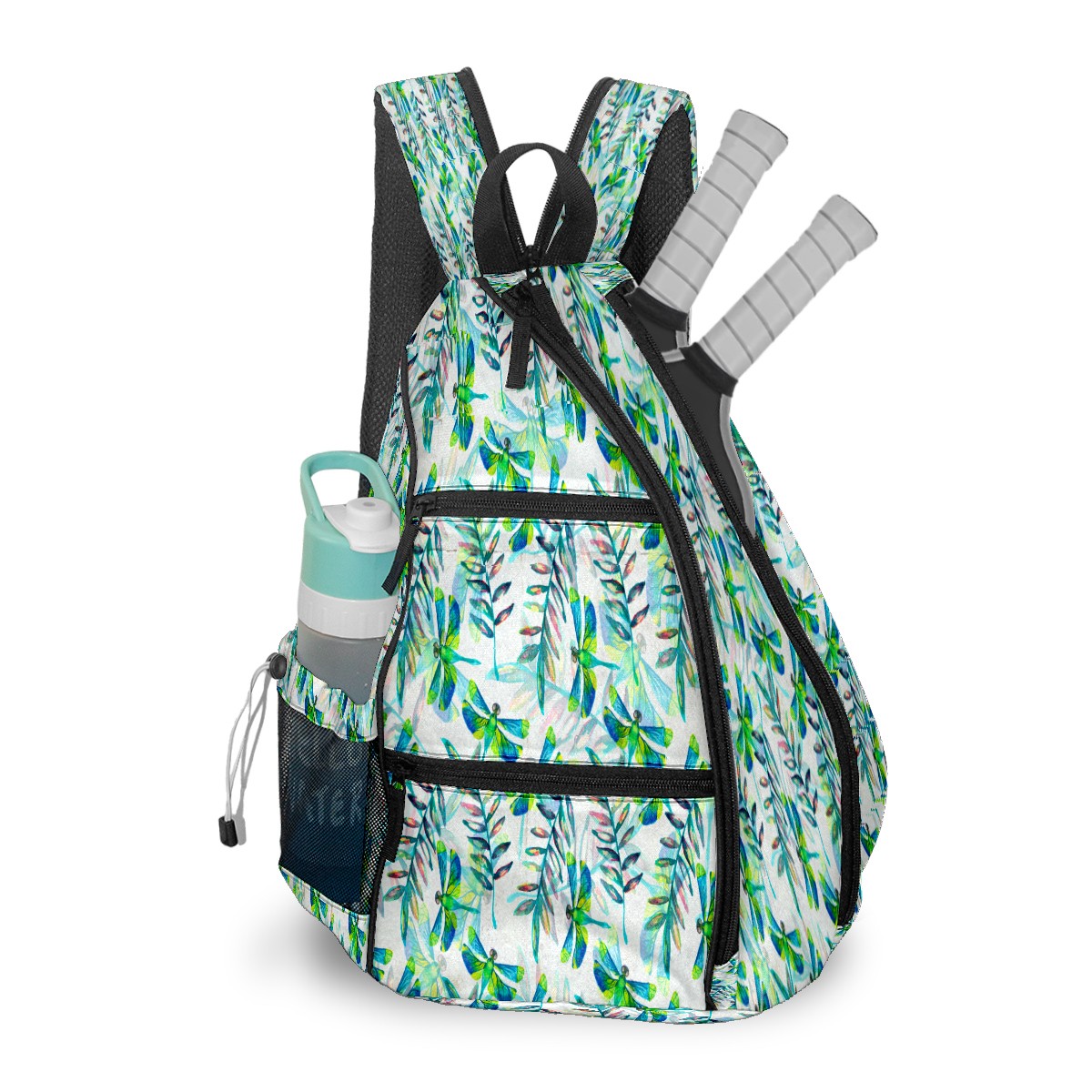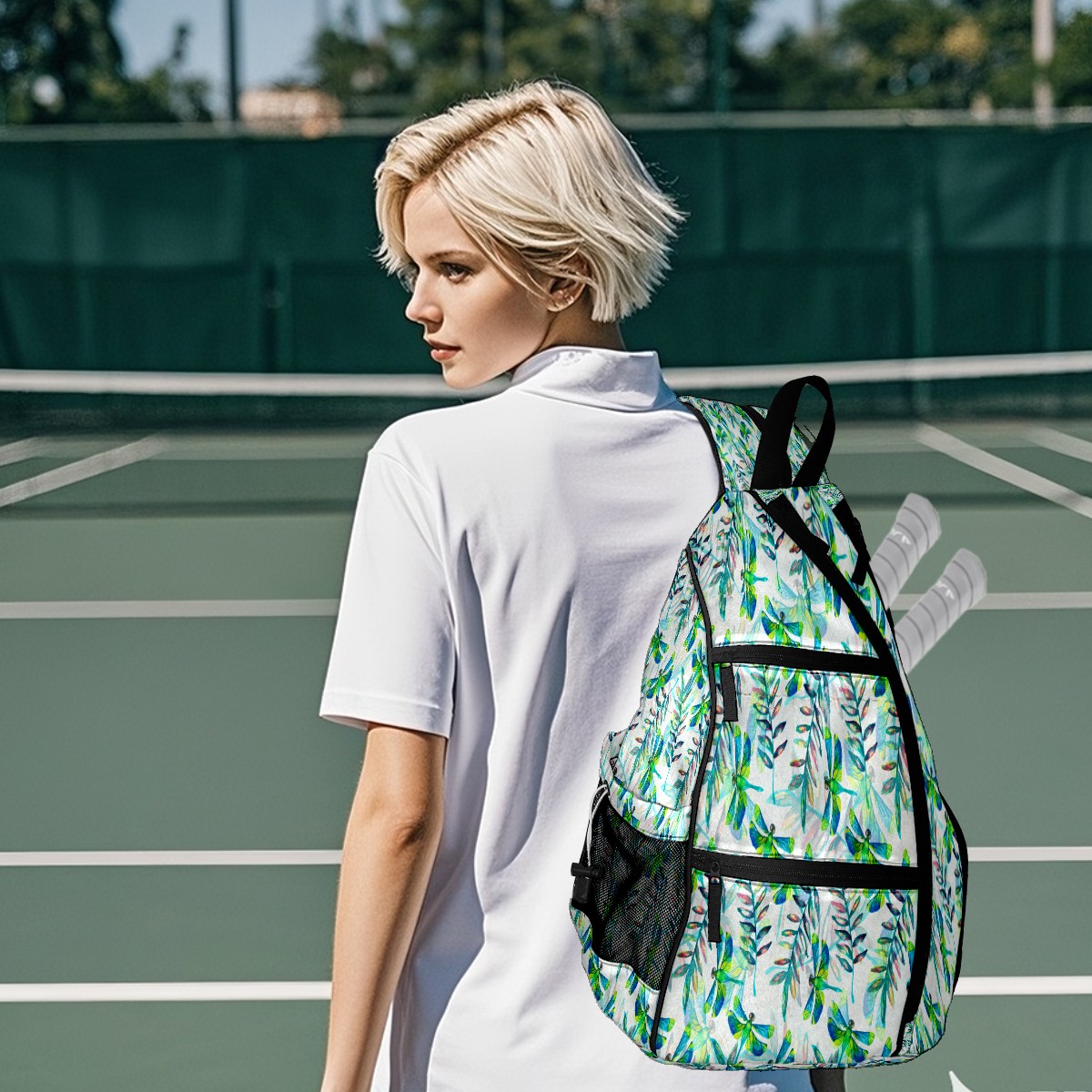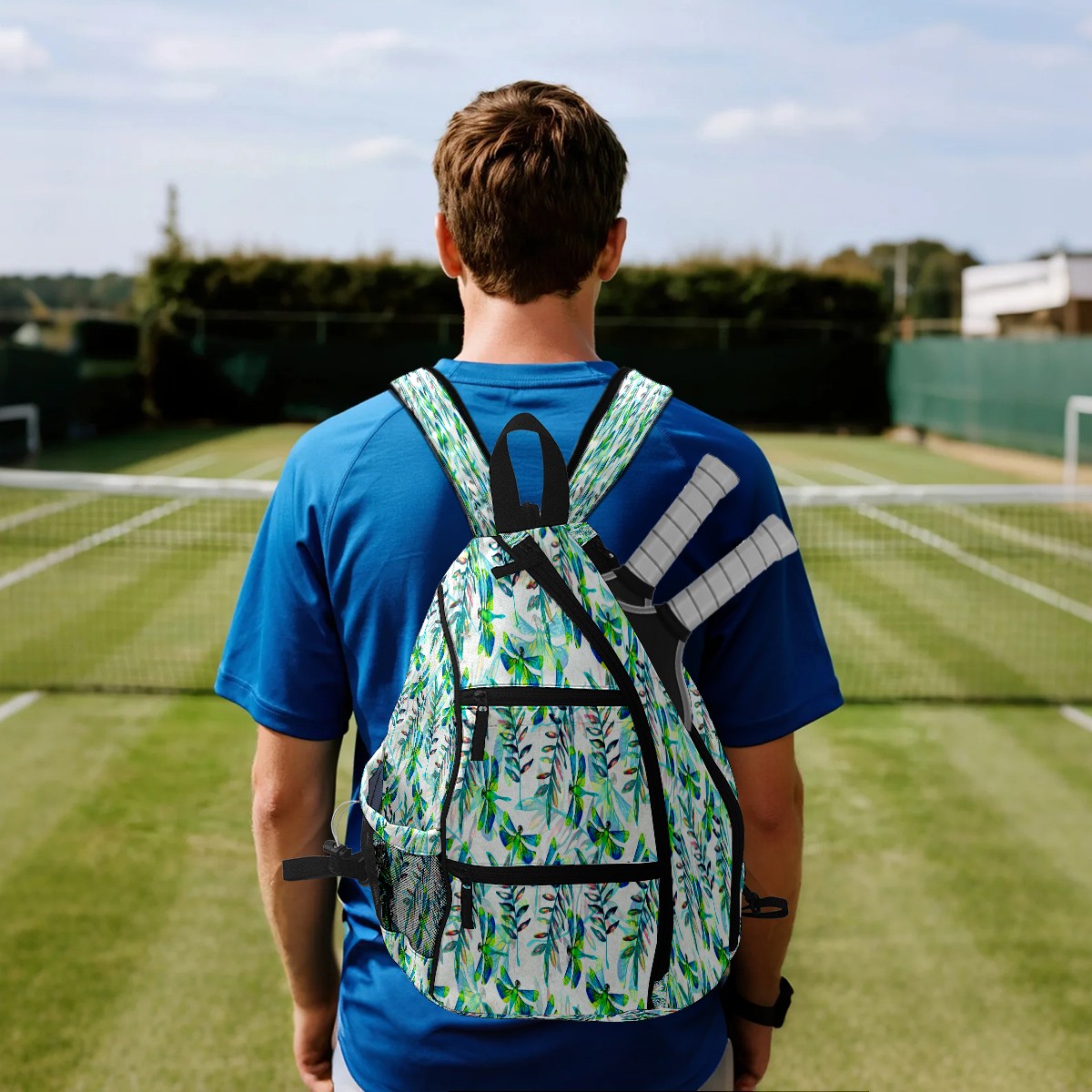 Multifunctional Pickleball Bag,Large Capacity Sports Pickleball Racket Bag, Water Bottle Holder and Fence Hook,Suitable for Both Men Women -Dragonfly Tropical Leaves