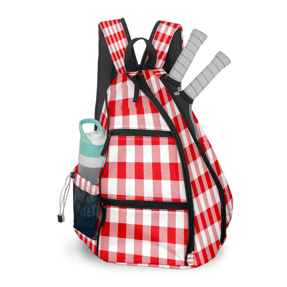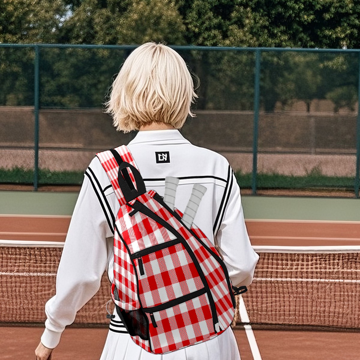 Multifunctional Pickleball Bag,Large Capacity Sports Pickleball Racket Bag, Water Bottle Holder and Fence Hook,Suitable for Both Men Women -Red And White