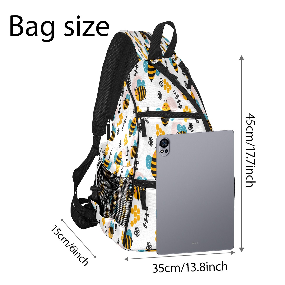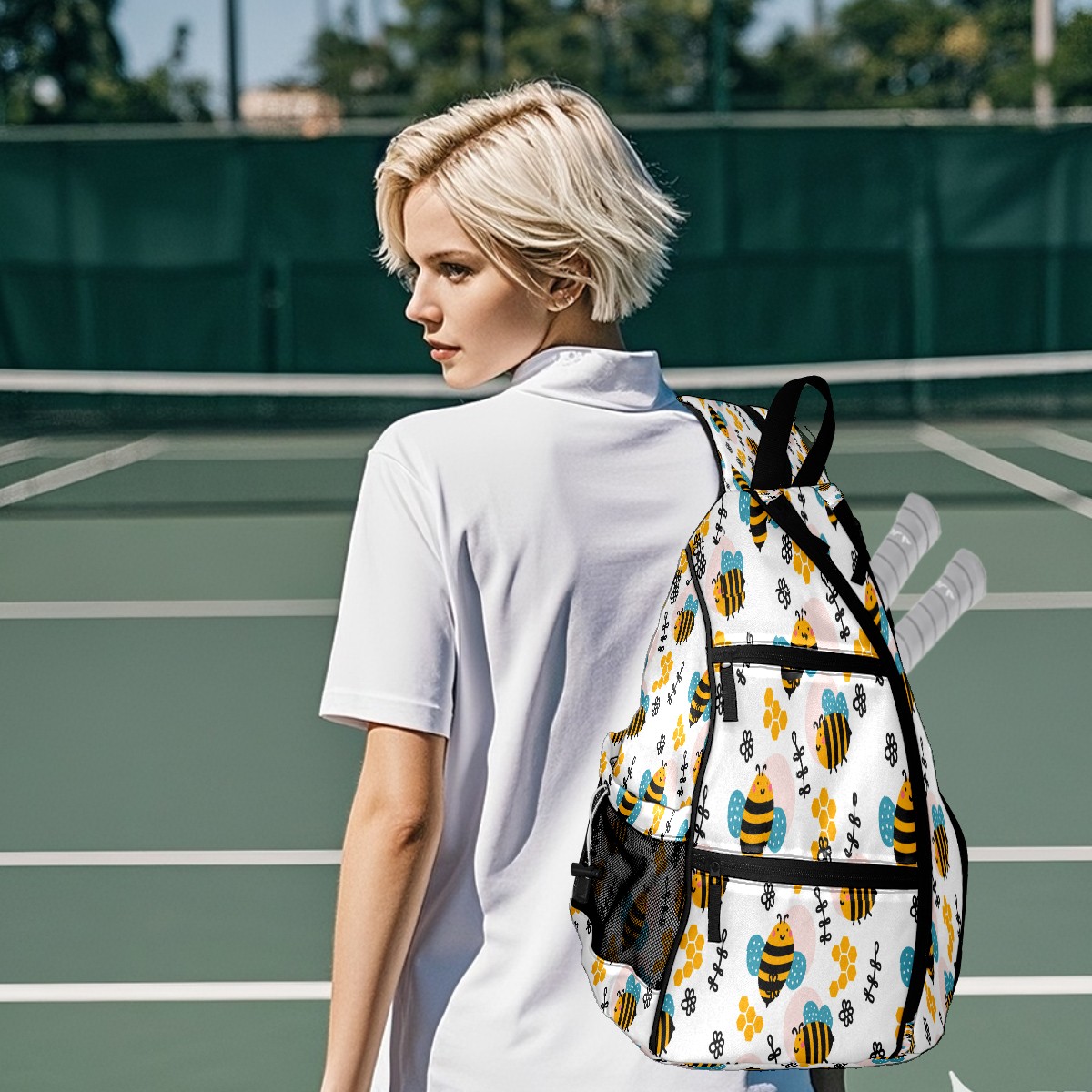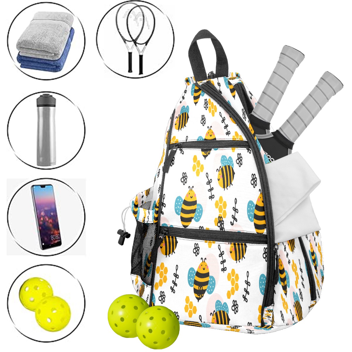 Multifunctional Pickleball Bag,Large Capacity Sports Pickleball Racket Bag, Water Bottle Holder and Fence Hook,Suitable for Both Men Women -Bees Pattern