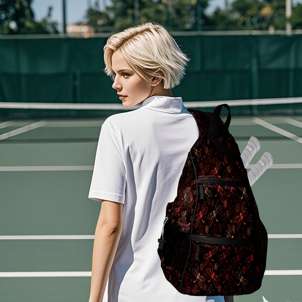 Multifunctional Pickleball Bag,Large Capacity Sports Pickleball Racket Bag, Water Bottle Holder and Fence Hook,Suitable for Both Men Women -Dragonfly With Brown Red