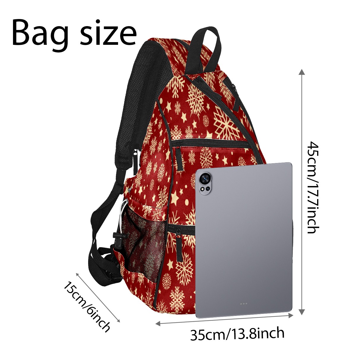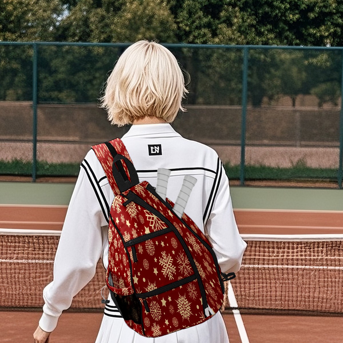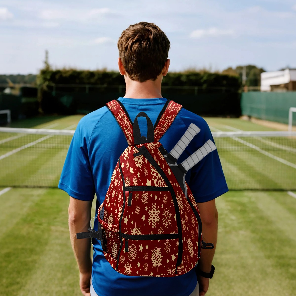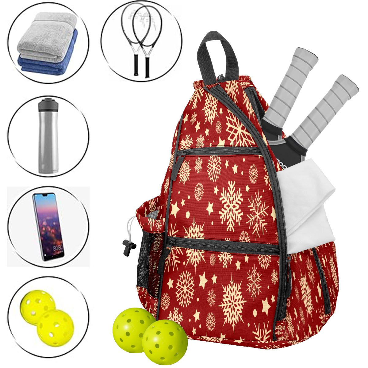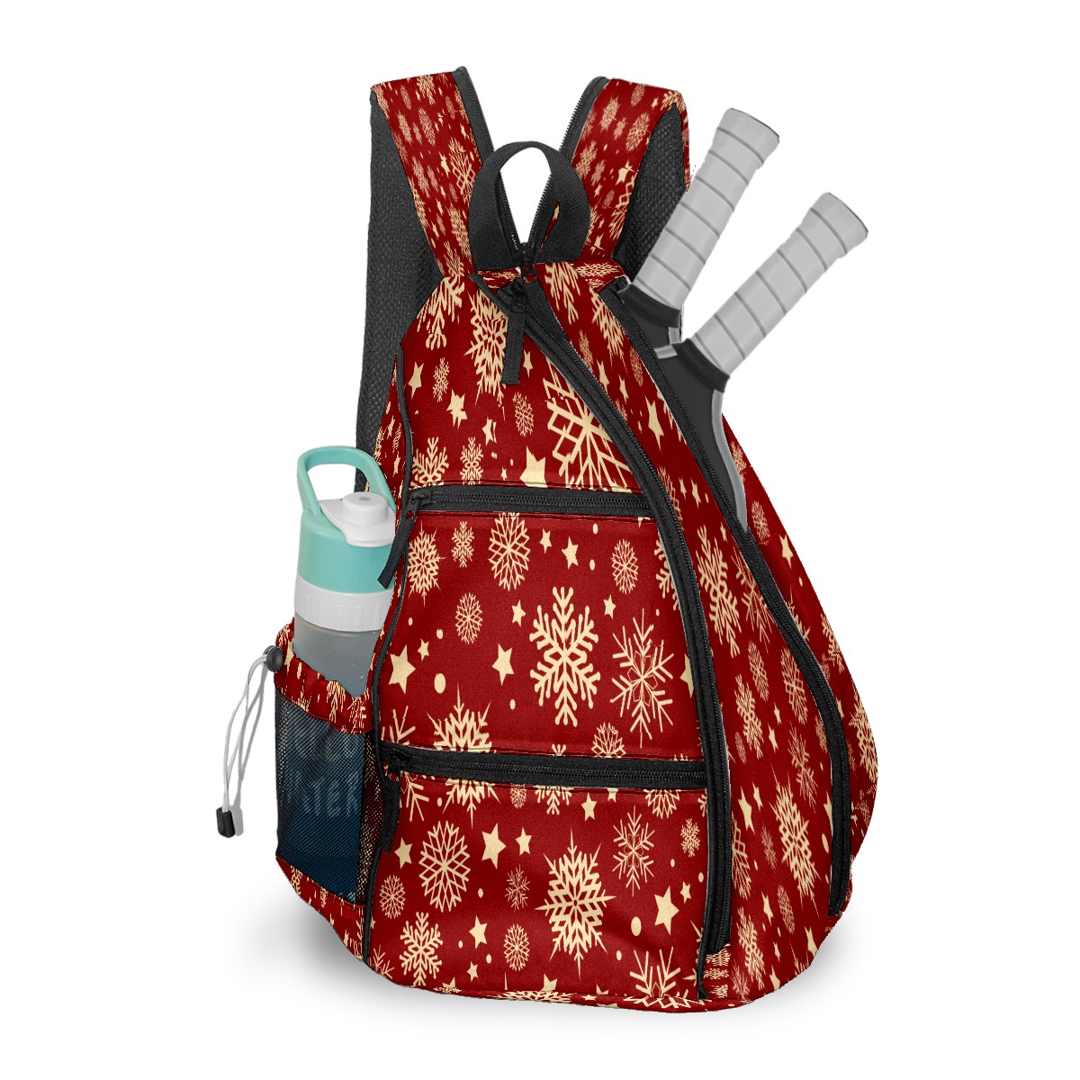 Multifunctional Pickleball Bag,Large Capacity Sports Pickleball Racket Bag, Water Bottle Holder and Fence Hook,Suitable for Both Men Women -Christmas Snowflake