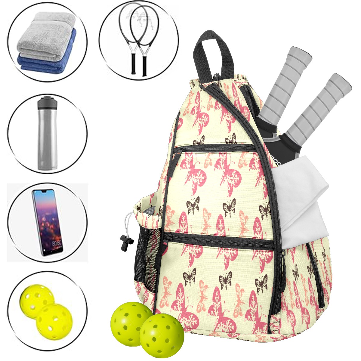 Multifunctional Pickleball Bag,Large Capacity Sports Pickleball Racket Bag, Water Bottle Holder and Fence Hook,Suitable for Both Men Women -Butterfly Pattern