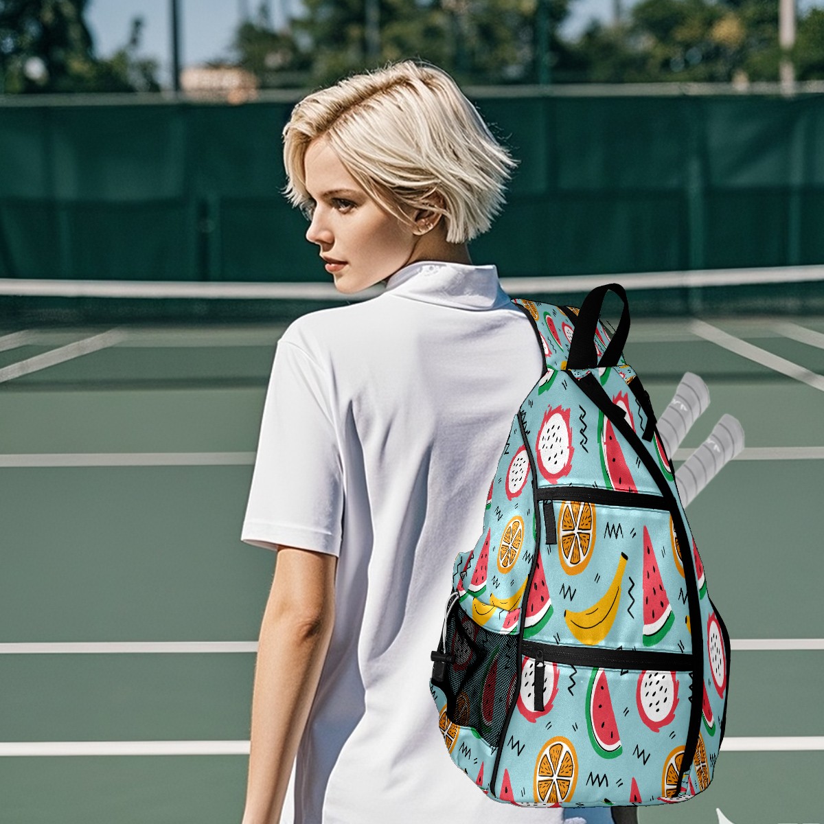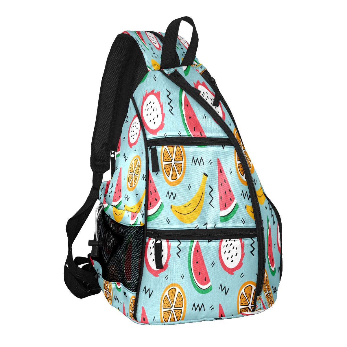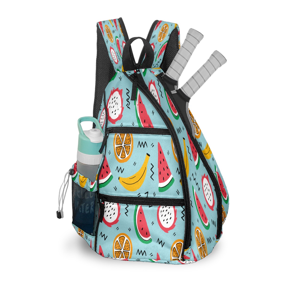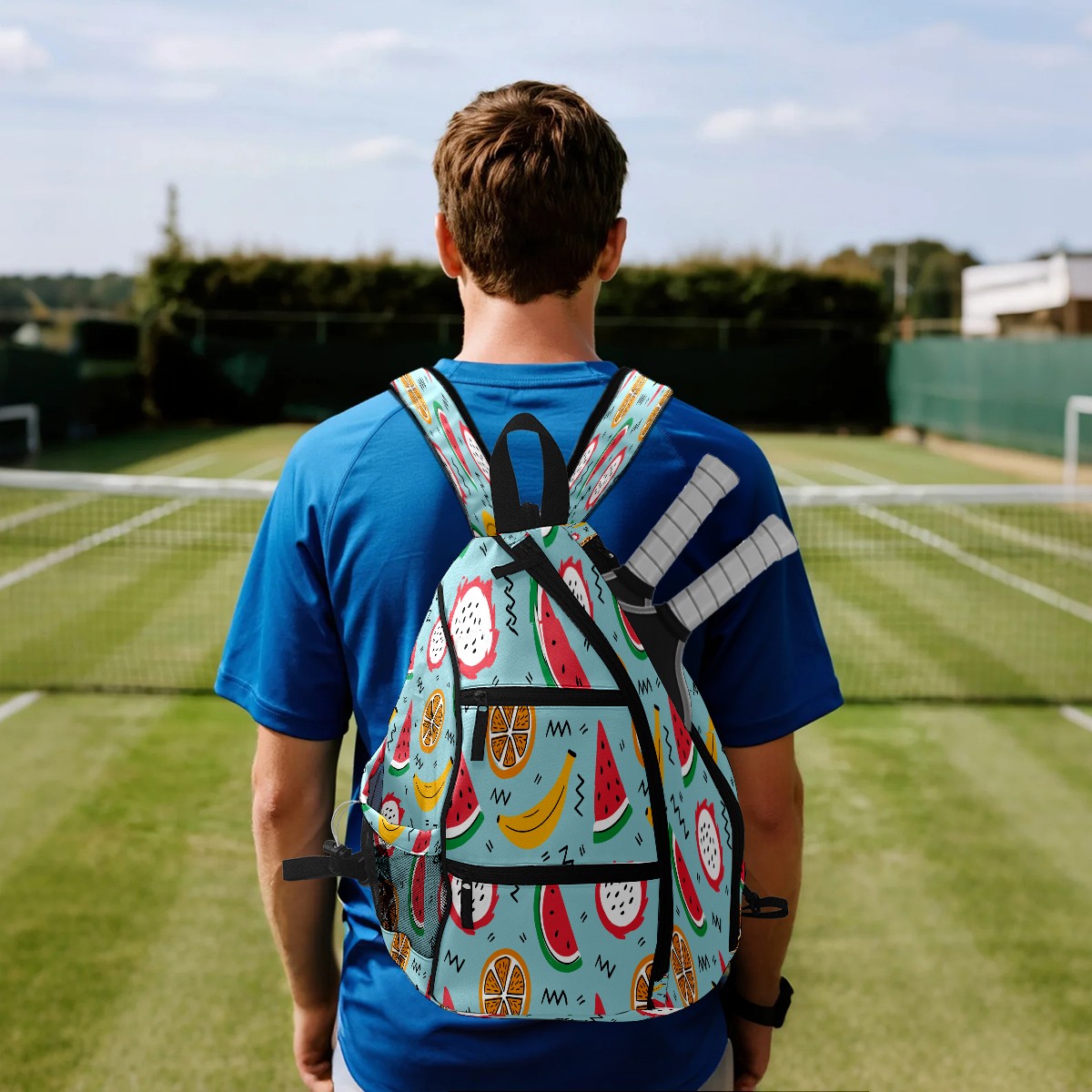 Multifunctional Pickleball Bag,Large Capacity Sports Pickleball Racket Bag, Water Bottle Holder and Fence Hook,Suitable for Both Men Women -Tropical Dragon Fruit Banana