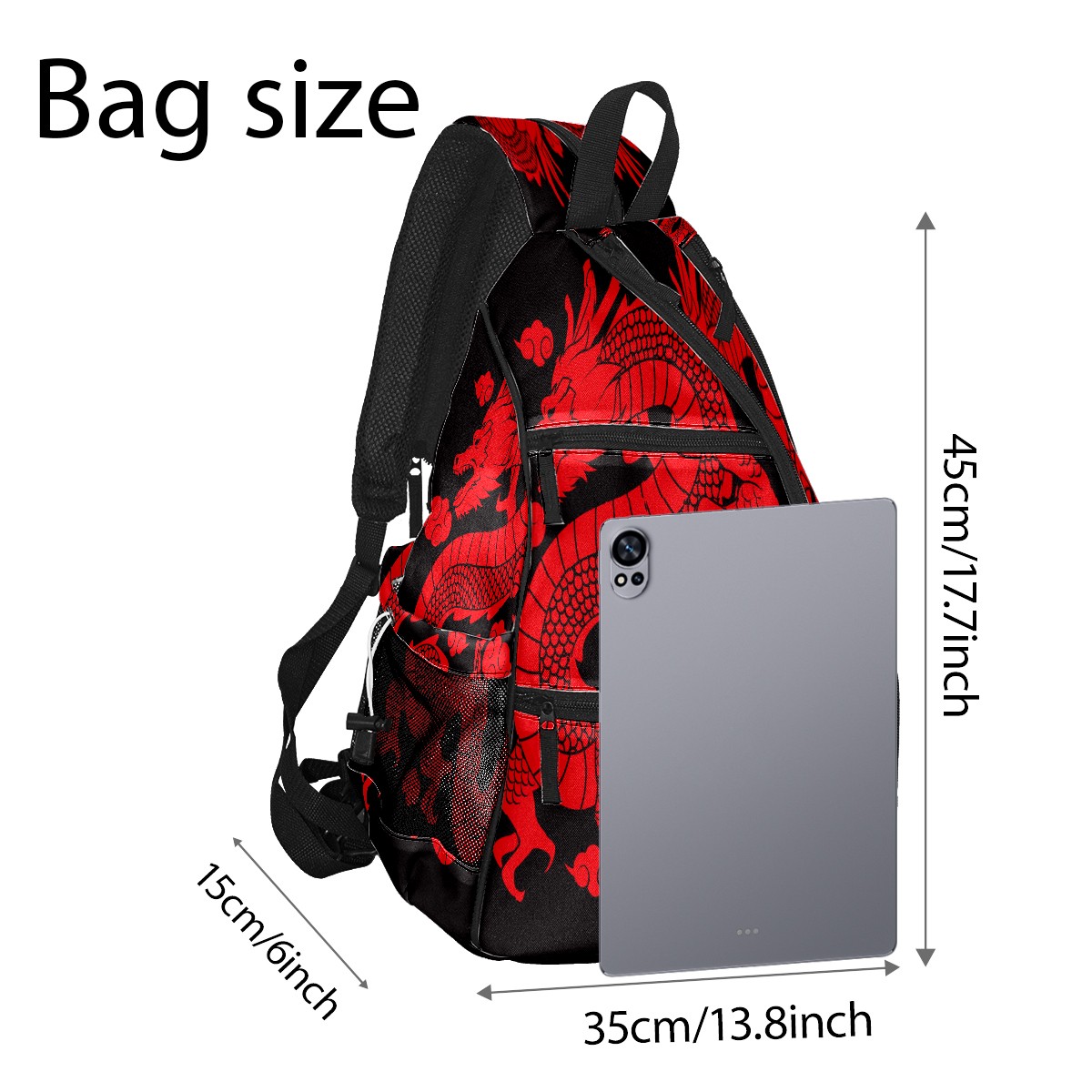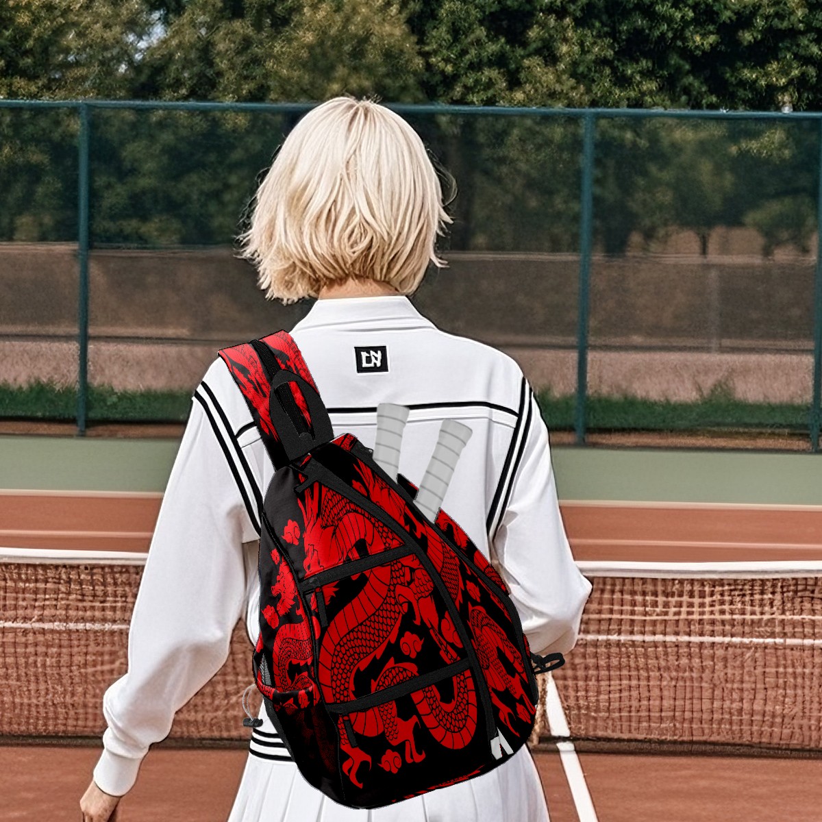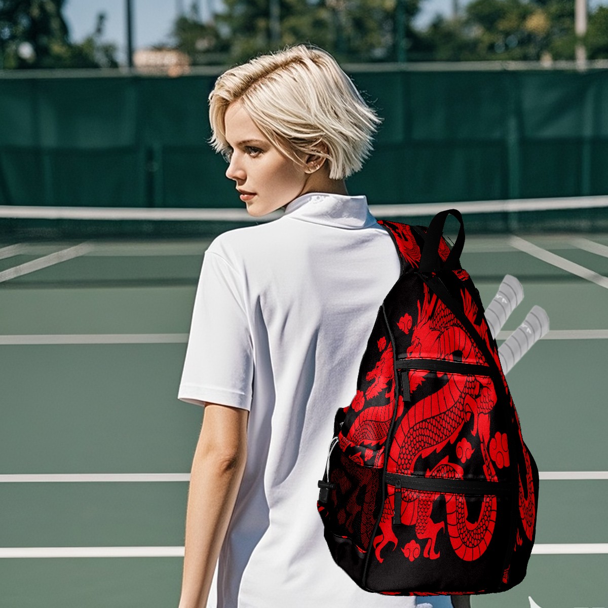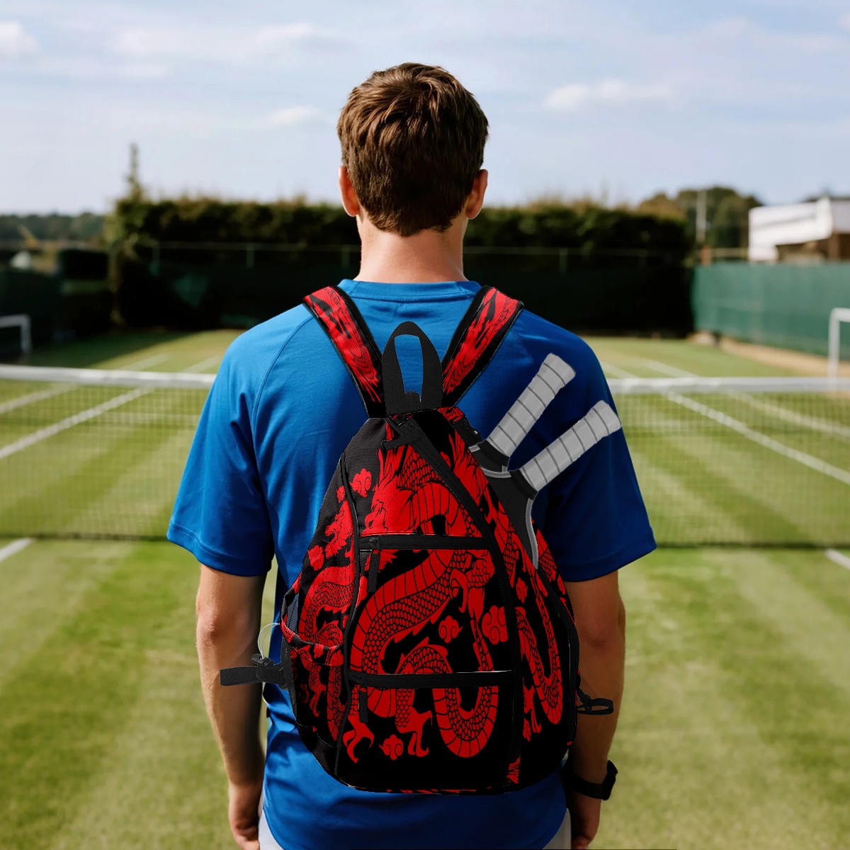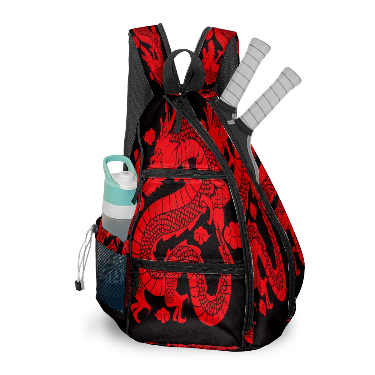 Multifunctional Pickleball Bag,Large Capacity Sports Pickleball Racket Bag, Water Bottle Holder and Fence Hook,Suitable for Both Men Women -Traditional Chinese Dragon Design
