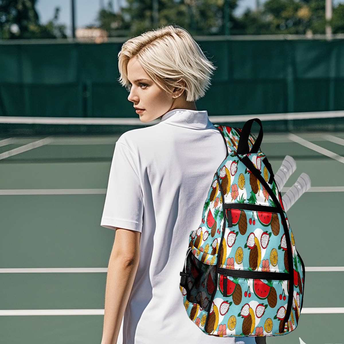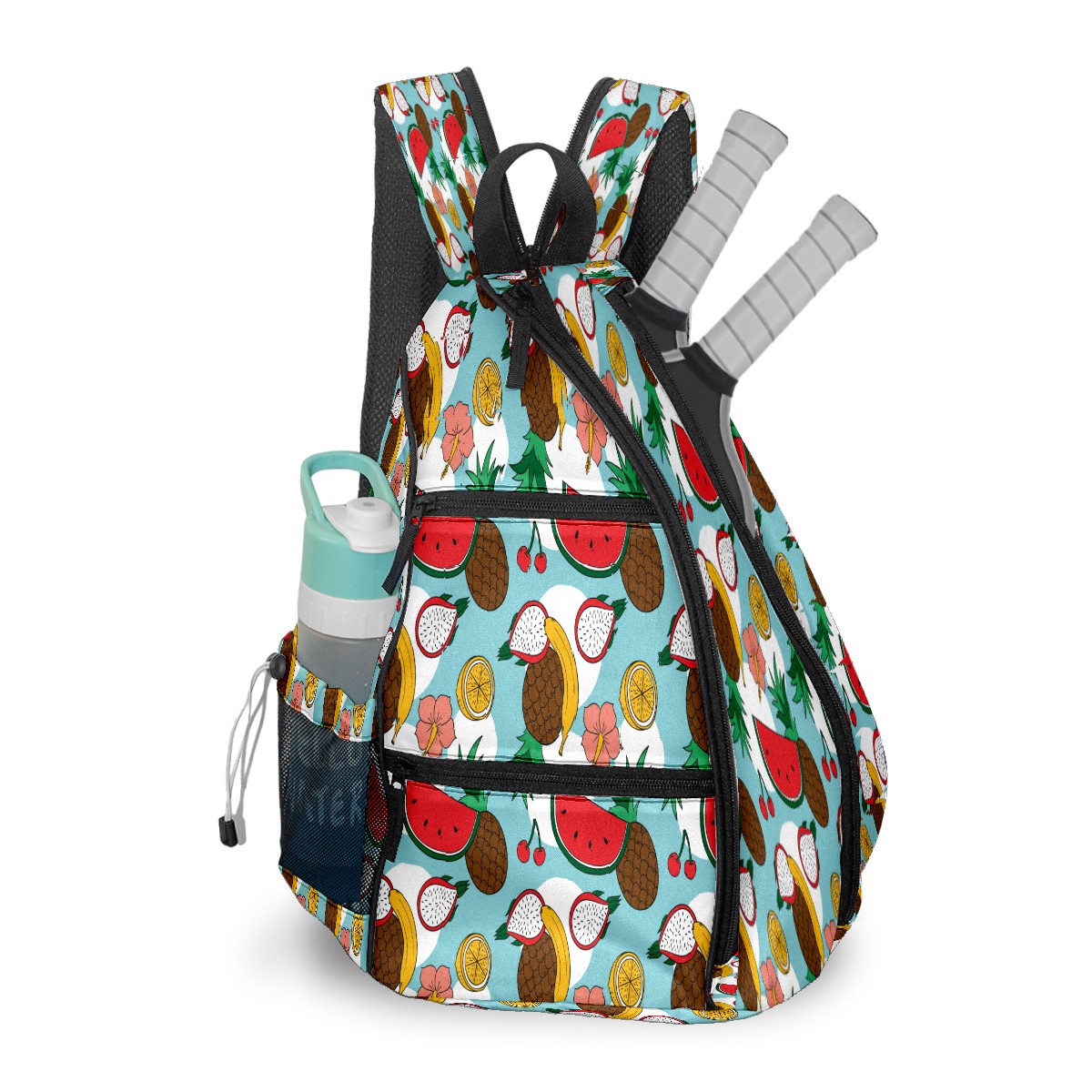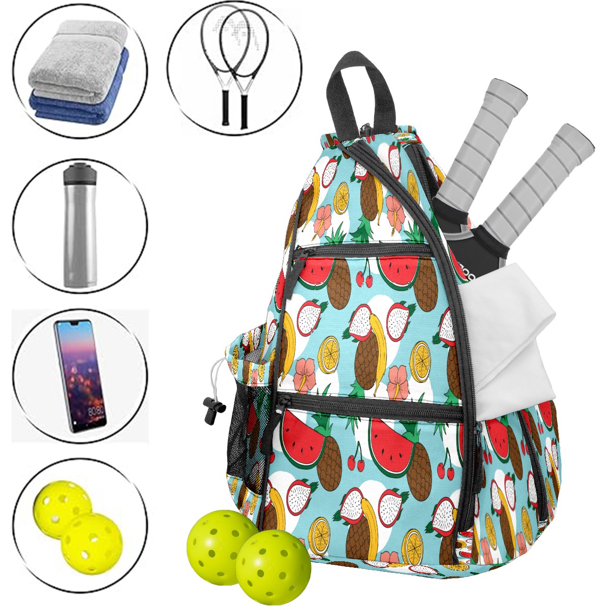 Multifunctional Pickleball Bag,Large Capacity Sports Pickleball Racket Bag, Water Bottle Holder and Fence Hook,Suitable for Both Men Women -Tropical Fruit
