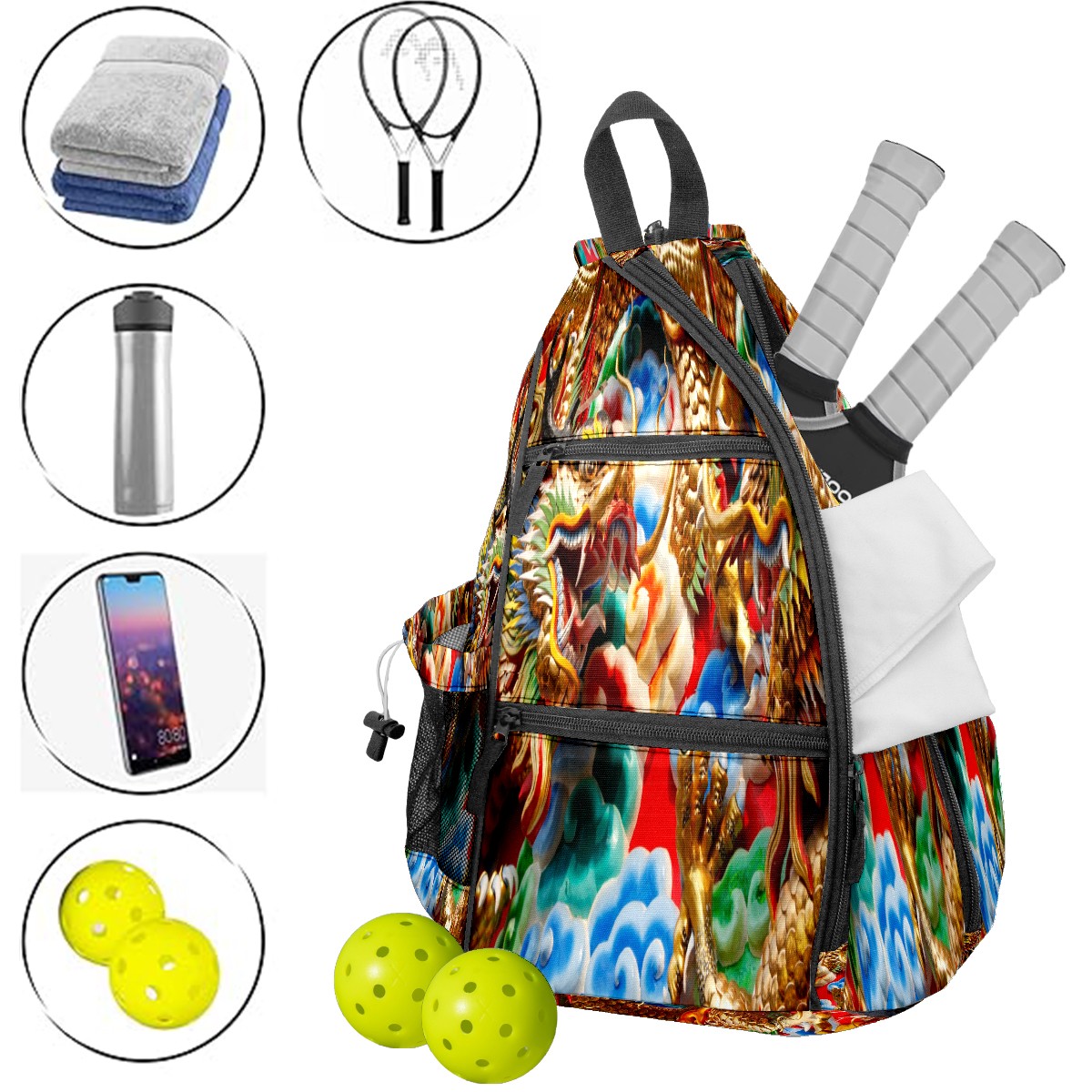 Multifunctional Pickleball Bag,Large Capacity Sports Pickleball Racket Bag, Water Bottle Holder and Fence Hook,Suitable for Both Men Women -Dragon Asia Palace Building
