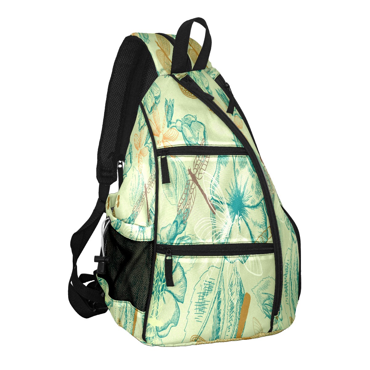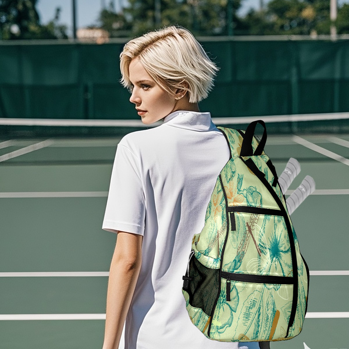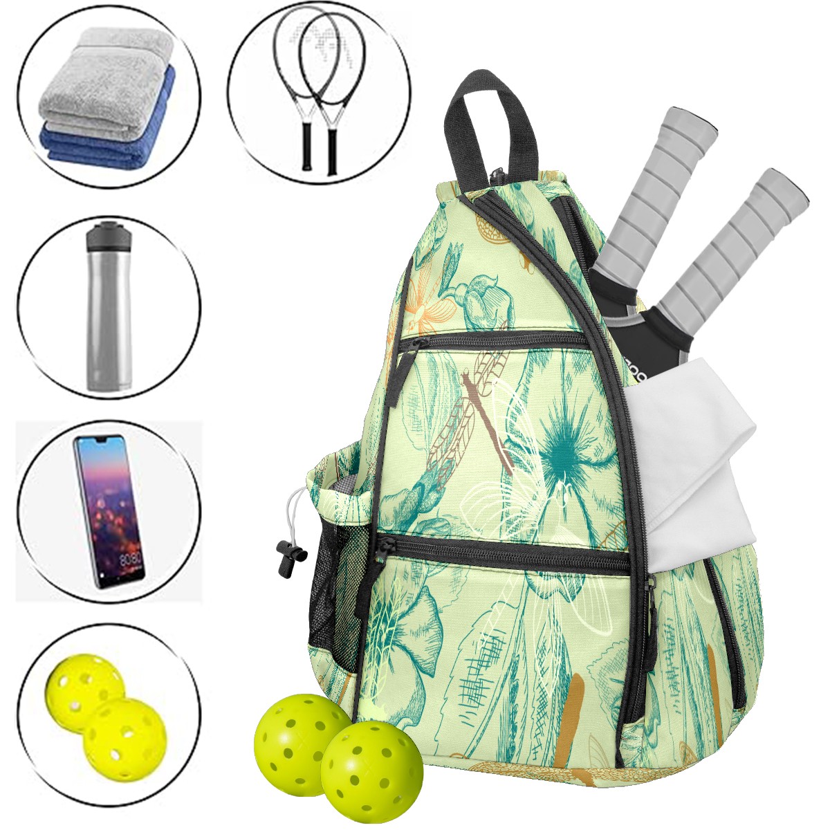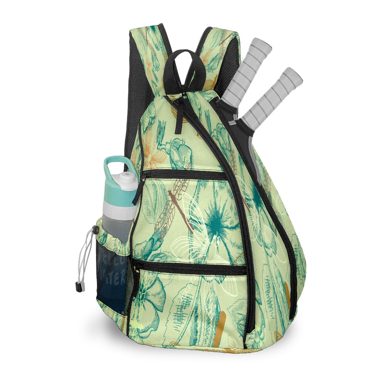 Multifunctional Pickleball Bag,Large Capacity Sports Pickleball Racket Bag, Water Bottle Holder and Fence Hook,Suitable for Both Men Women -Nature Flowers Dragonfly