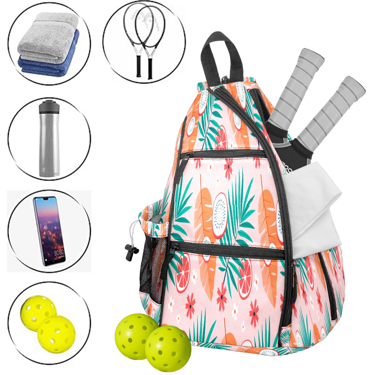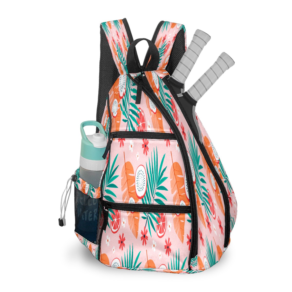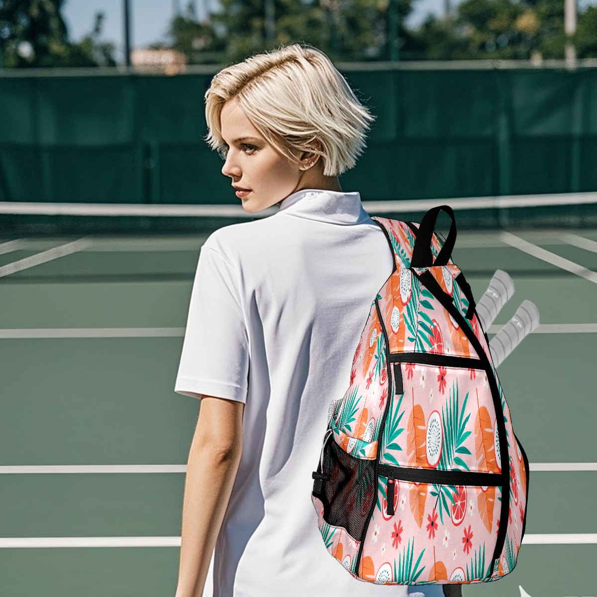 Multifunctional Pickleball Bag,Large Capacity Sports Pickleball Racket Bag, Water Bottle Holder and Fence Hook,Suitable for Both Men Women -Summer Tropical Leaves