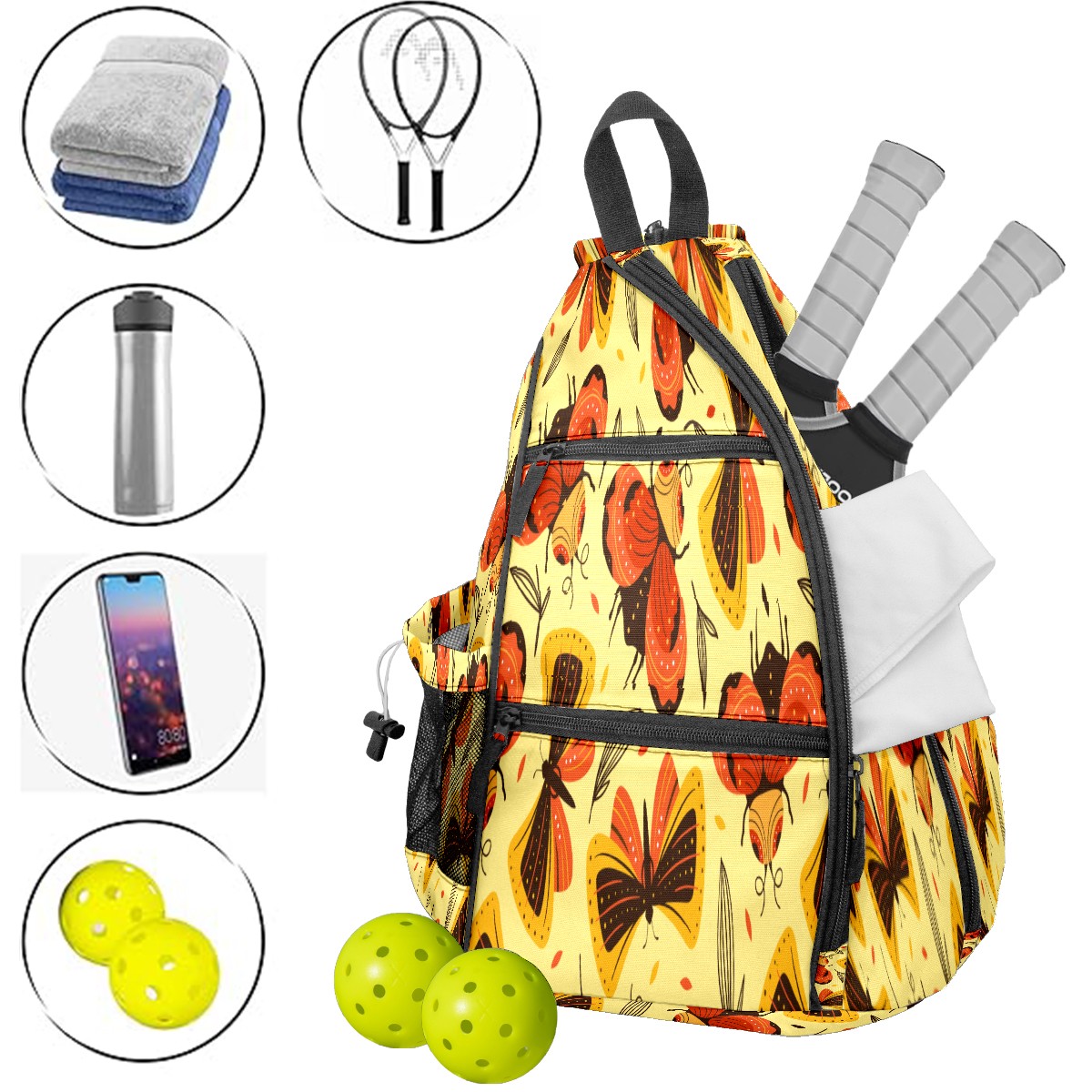 Multifunctional Pickleball Bag,Large Capacity Sports Pickleball Racket Bag, Water Bottle Holder and Fence Hook,Suitable for Both Men Women -Insects Flowers