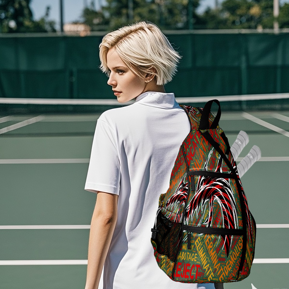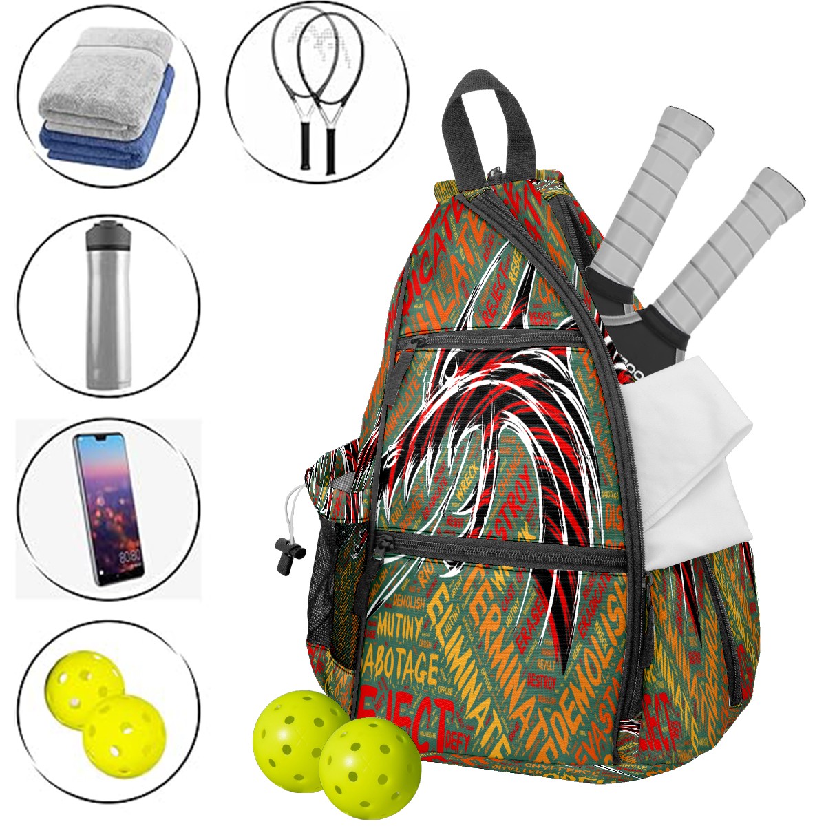 Multifunctional Pickleball Bag,Large Capacity Sports Pickleball Racket Bag, Water Bottle Holder and Fence Hook,Suitable for Both Men Women -Dragon