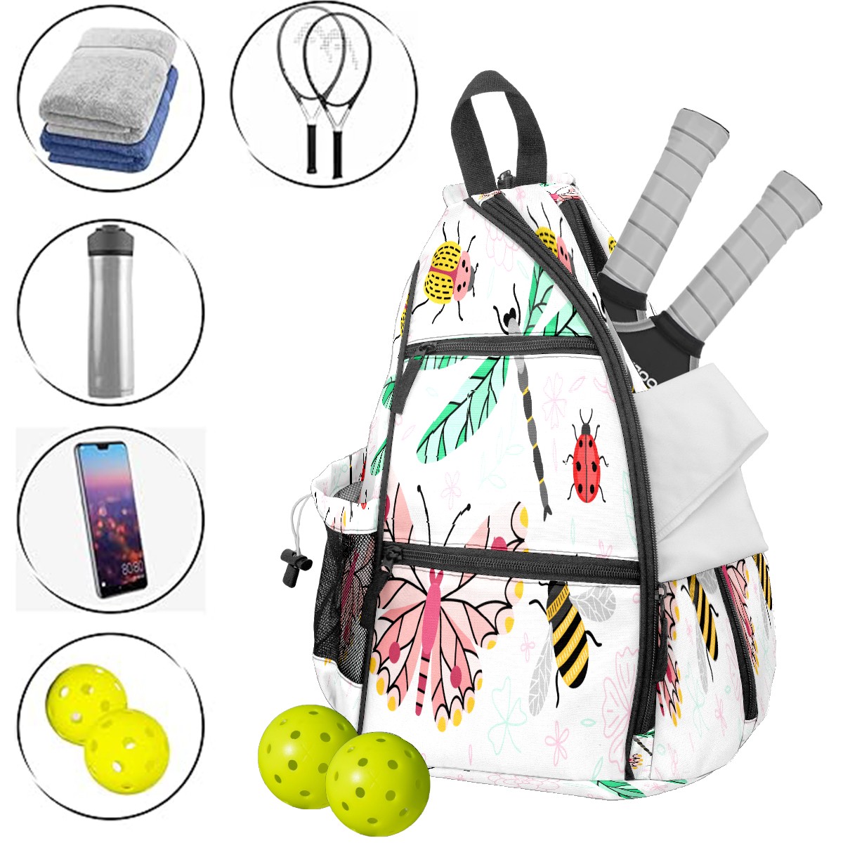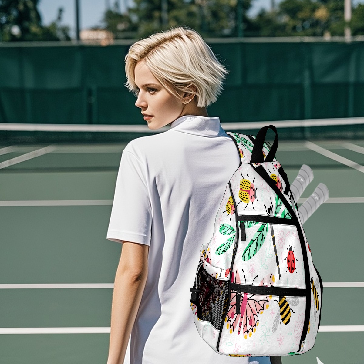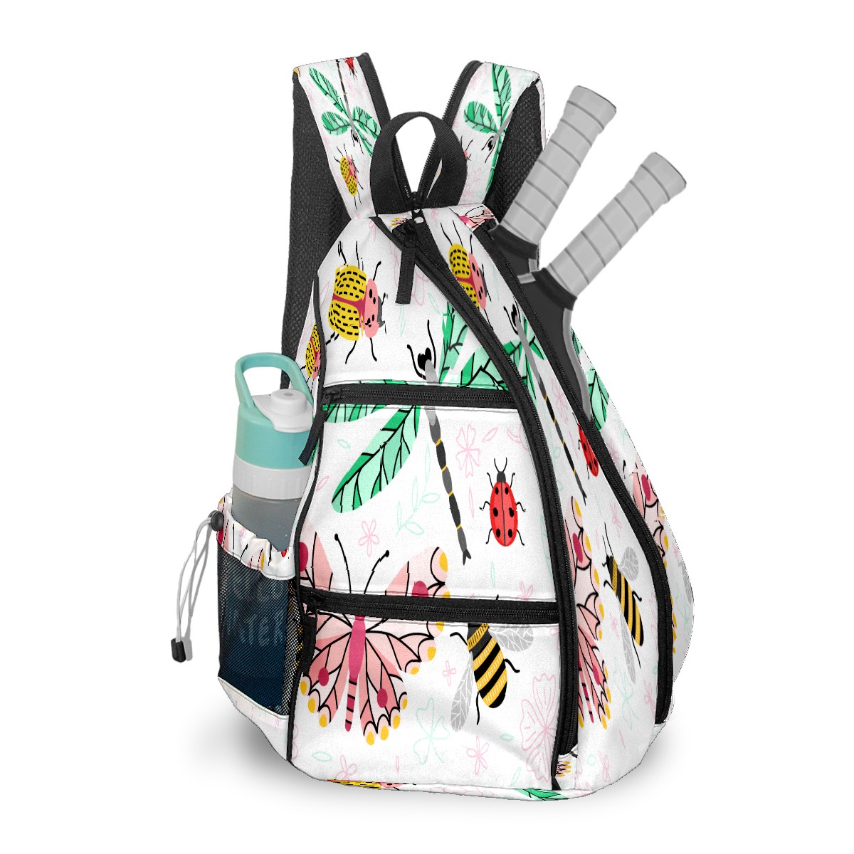 Multifunctional Pickleball Bag,Large Capacity Sports Pickleball Racket Bag, Water Bottle Holder and Fence Hook,Suitable for Both Men Women -Insect Collection