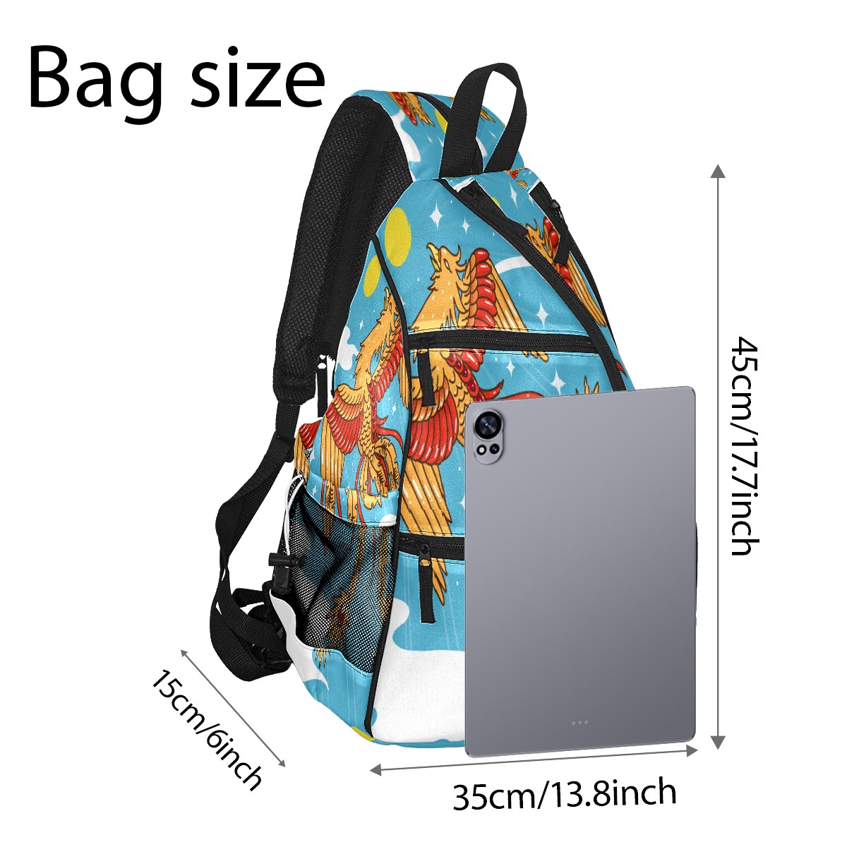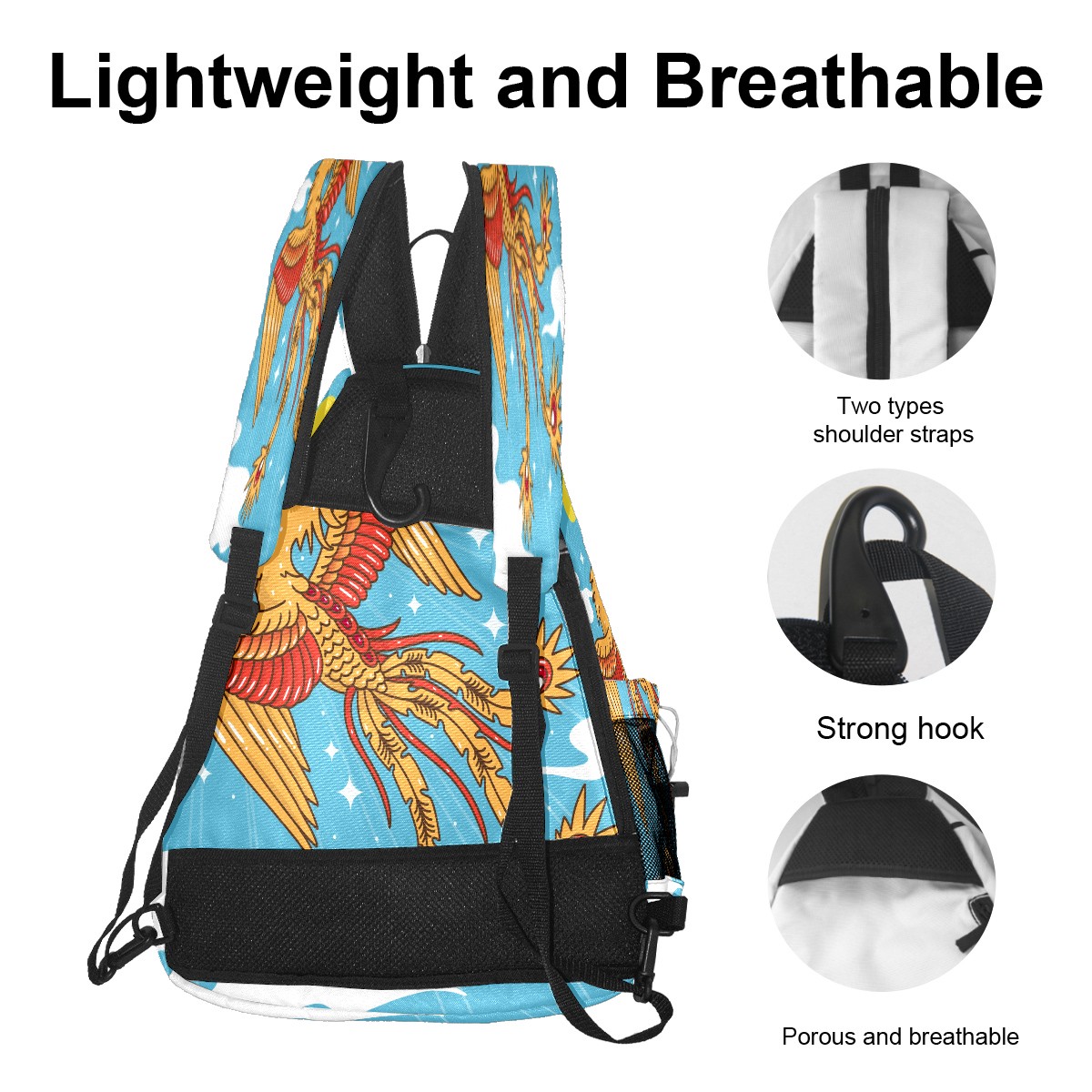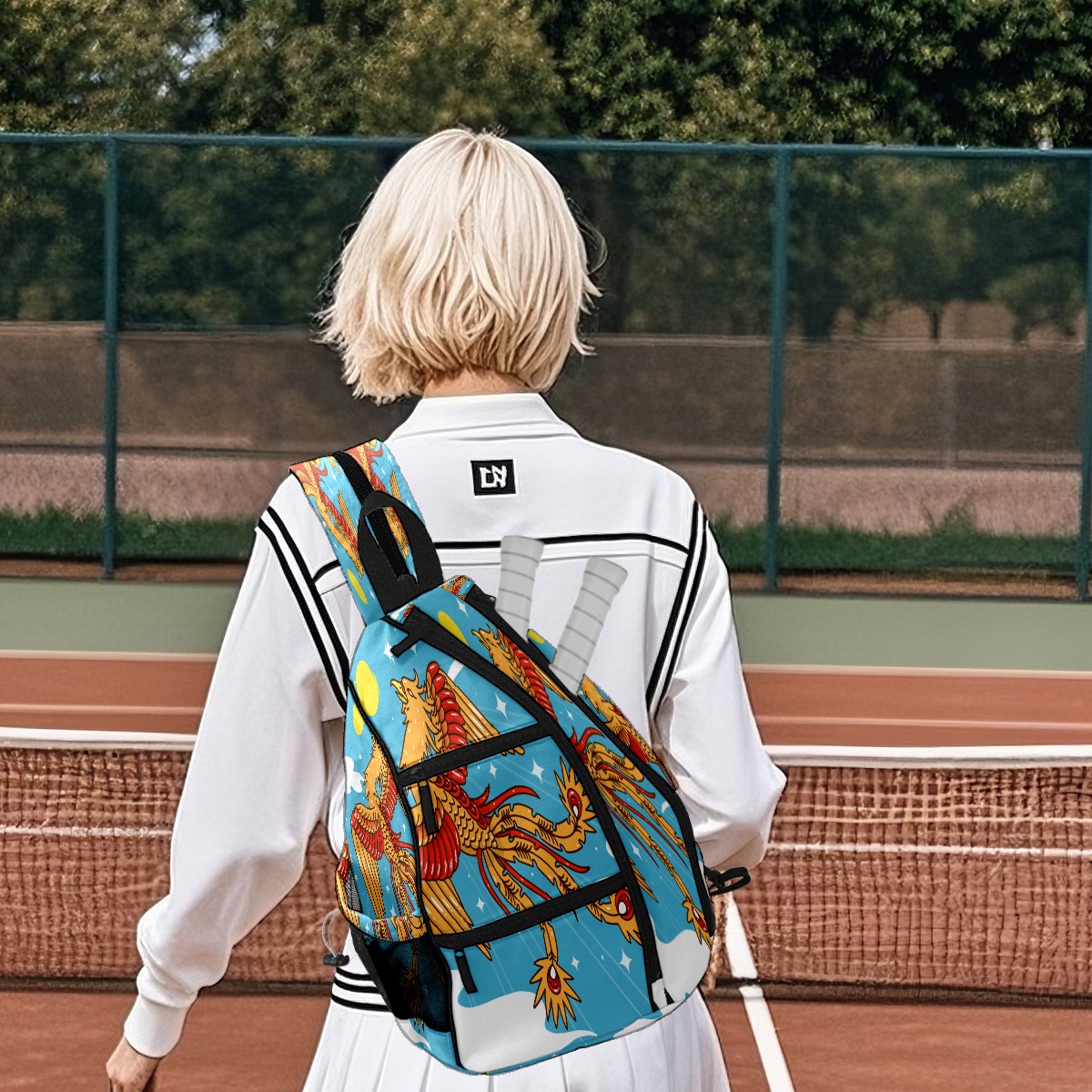 Multifunctional Pickleball Bag,Large Capacity Sports Pickleball Racket Bag, Water Bottle Holder and Fence Hook,Suitable for Both Men Women -Hand Drawn Phoenix Sky Sun