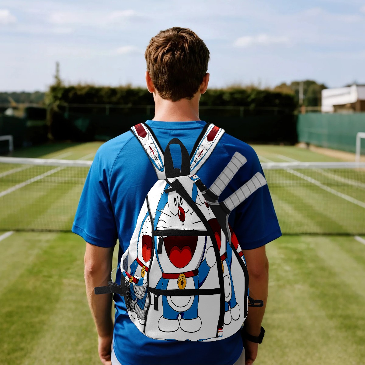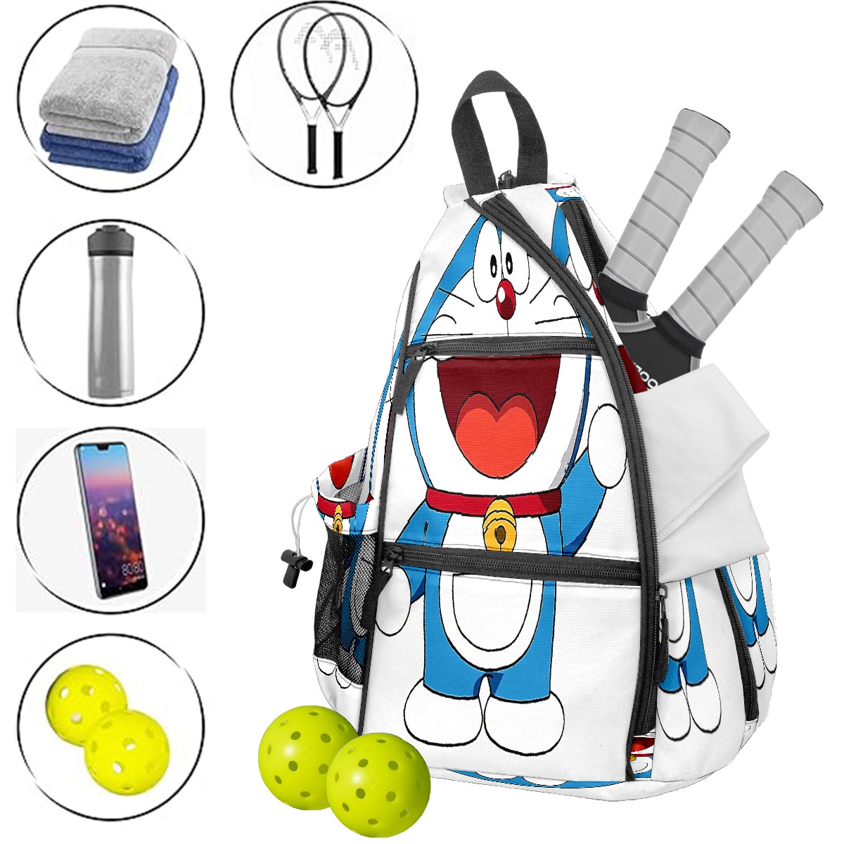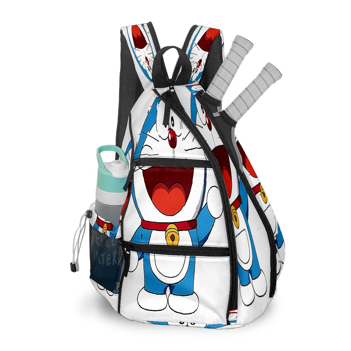 Multifunctional Pickleball Bag,Large Capacity Sports Pickleball Racket Bag, Water Bottle Holder and Fence Hook,Suitable for Both Men Women -Doraemon Cat