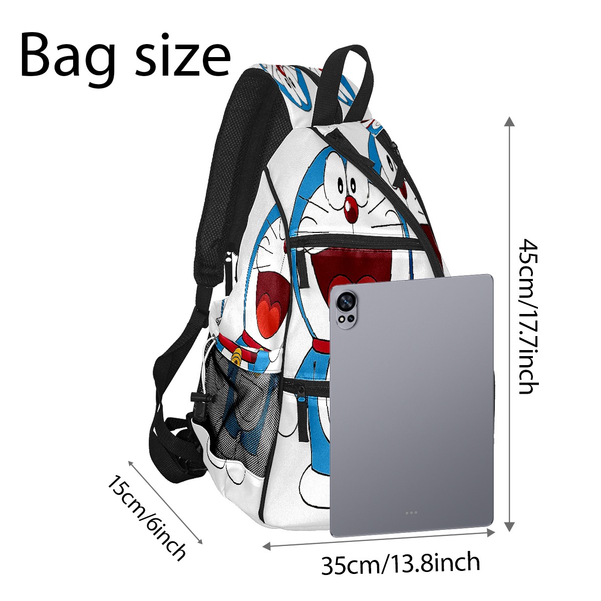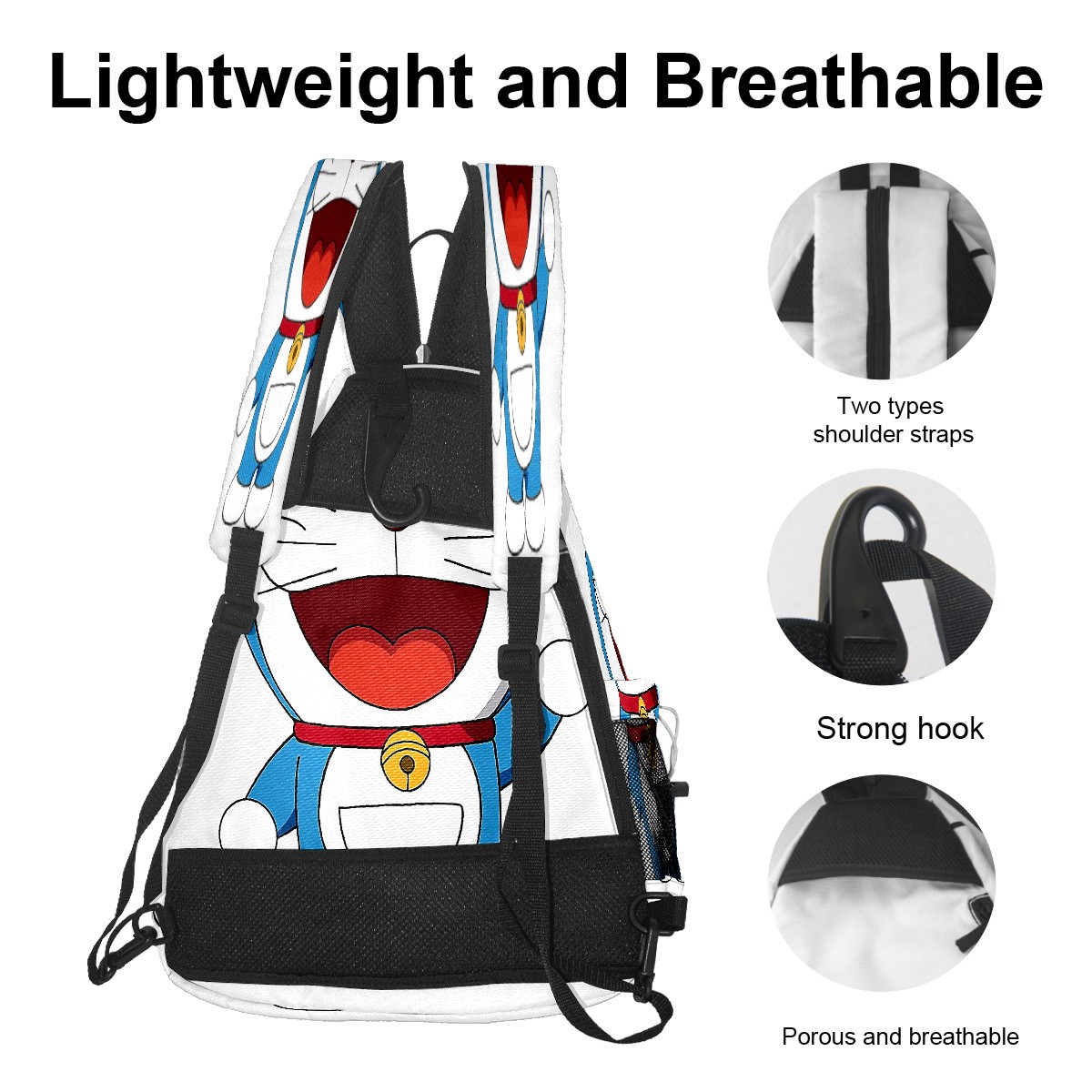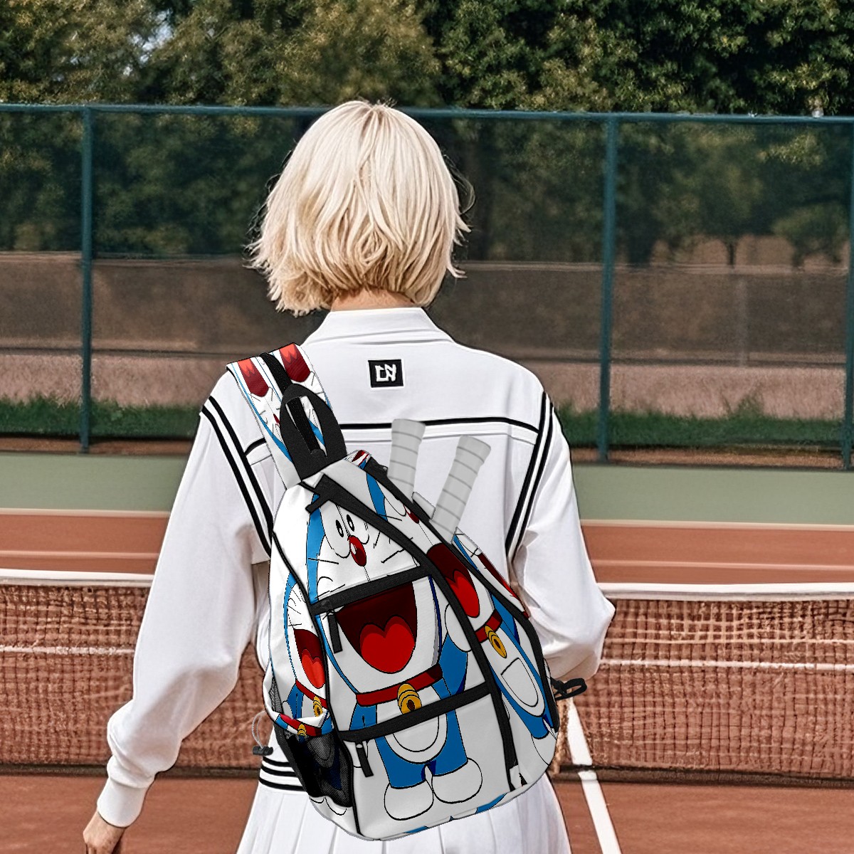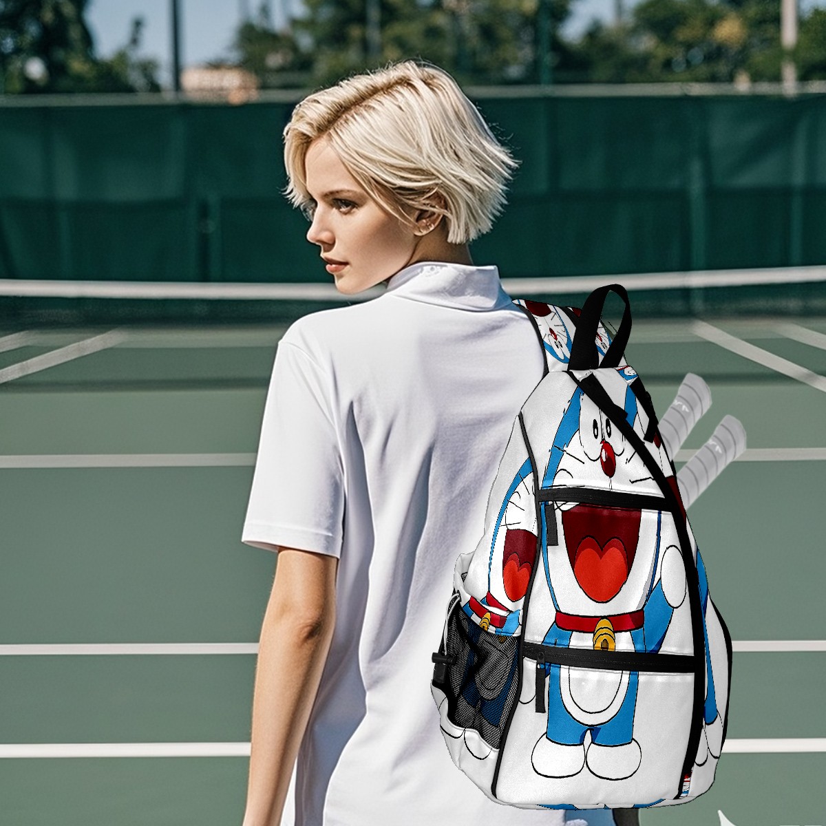 Multifunctional Pickleball Bag,Large Capacity Sports Pickleball Racket Bag, Water Bottle Holder and Fence Hook,Suitable for Both Men Women -Doraemon Cat