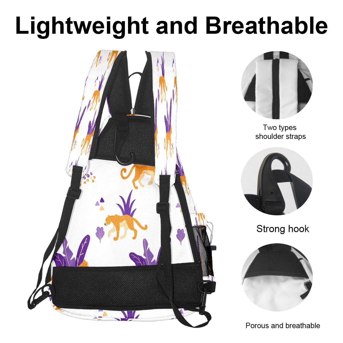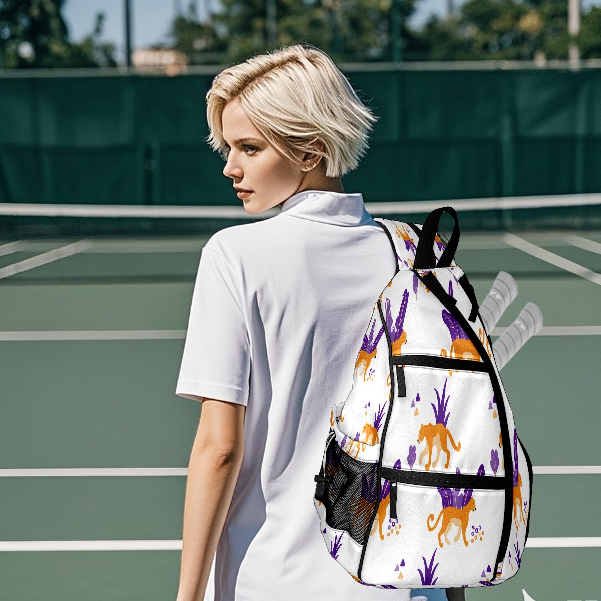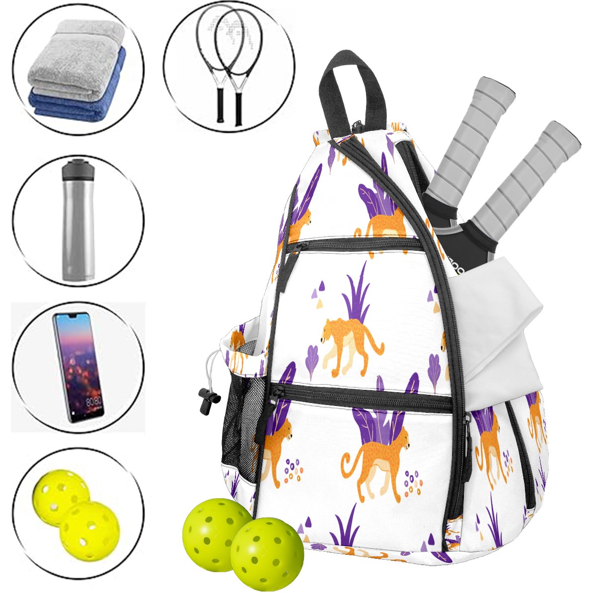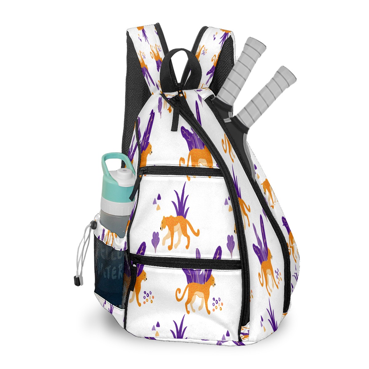 Multifunctional Pickleball Bag,Large Capacity Sports Pickleball Racket Bag, Water Bottle Holder and Fence Hook,Suitable for Both Men Women -Wild Jaguar Cats